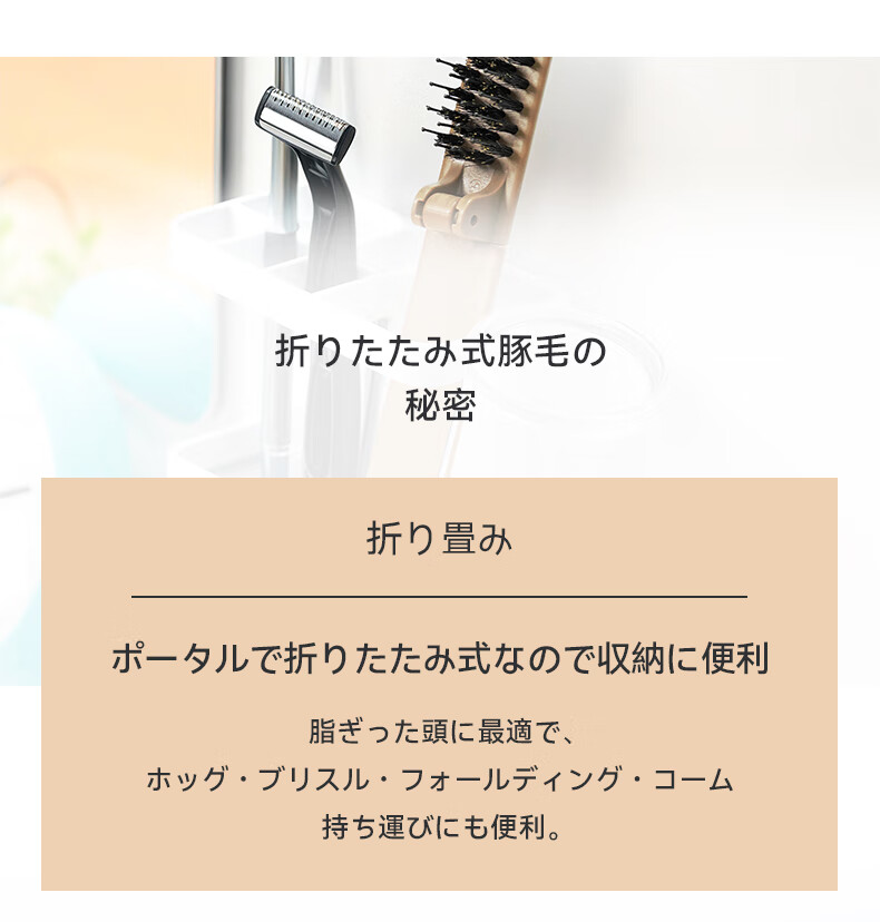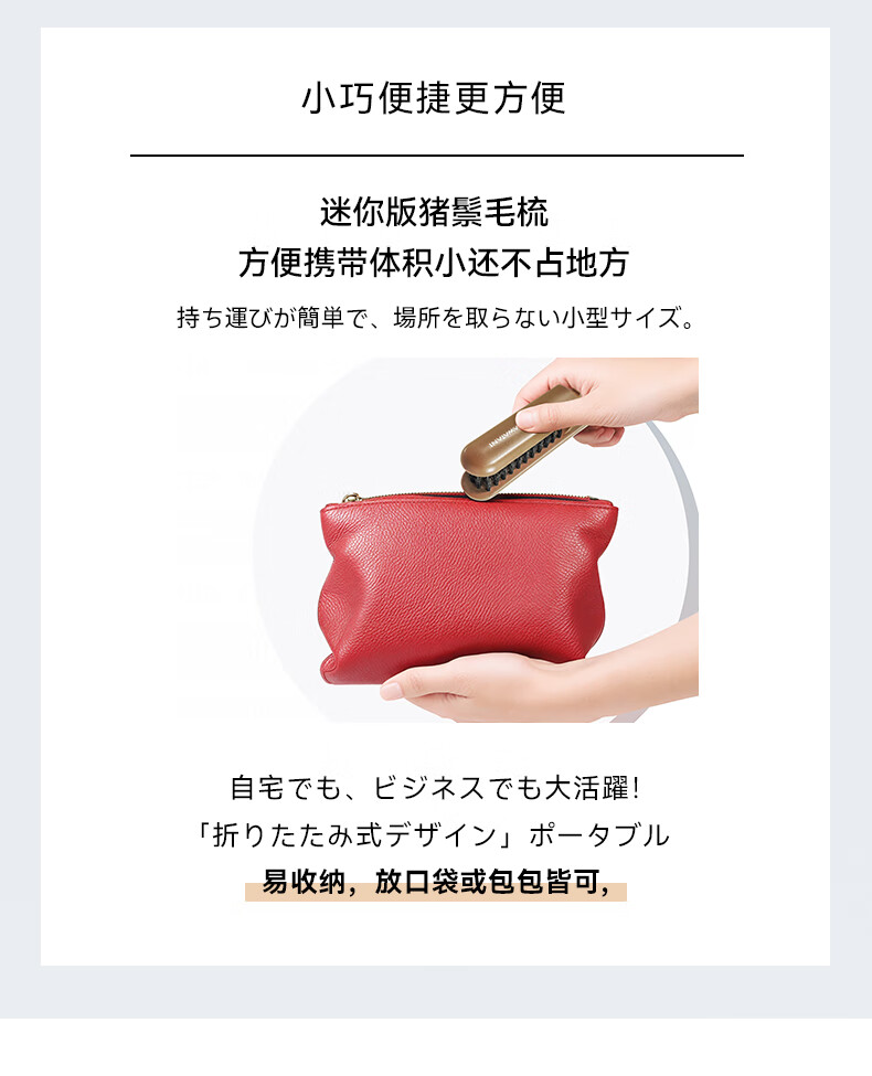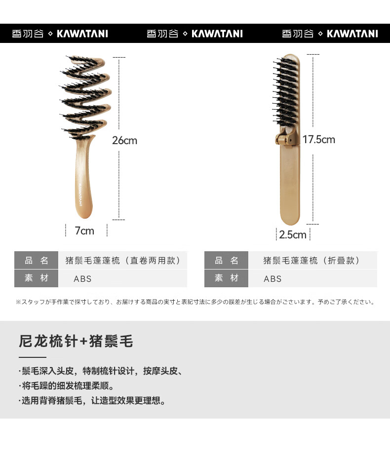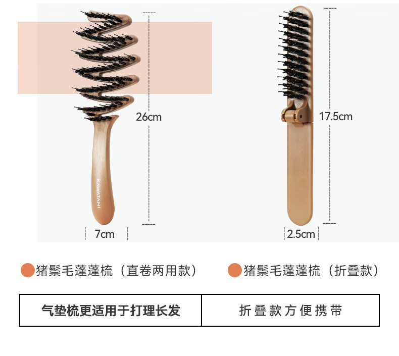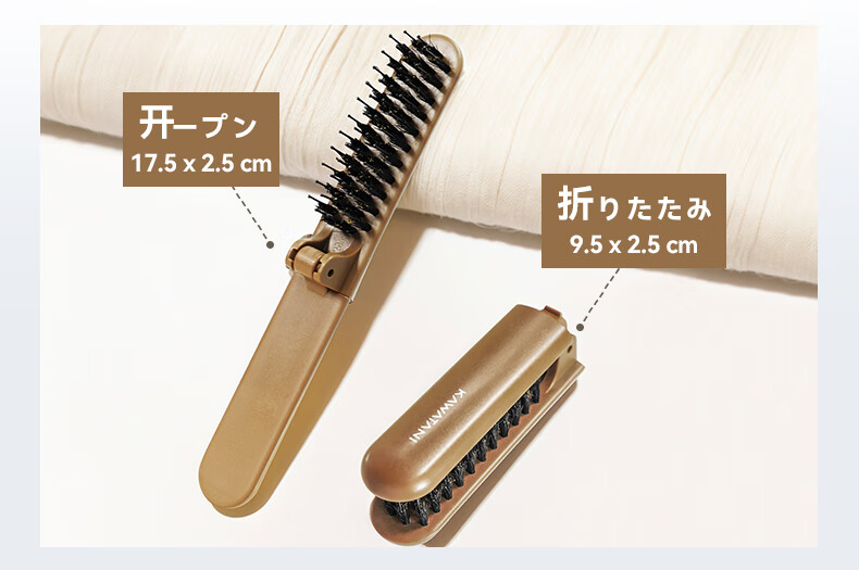 【6F】日本kawatani香羽谷猪鬃毛护发梳蓬松神器按摩头部顺发排骨梳子 携带折叠款