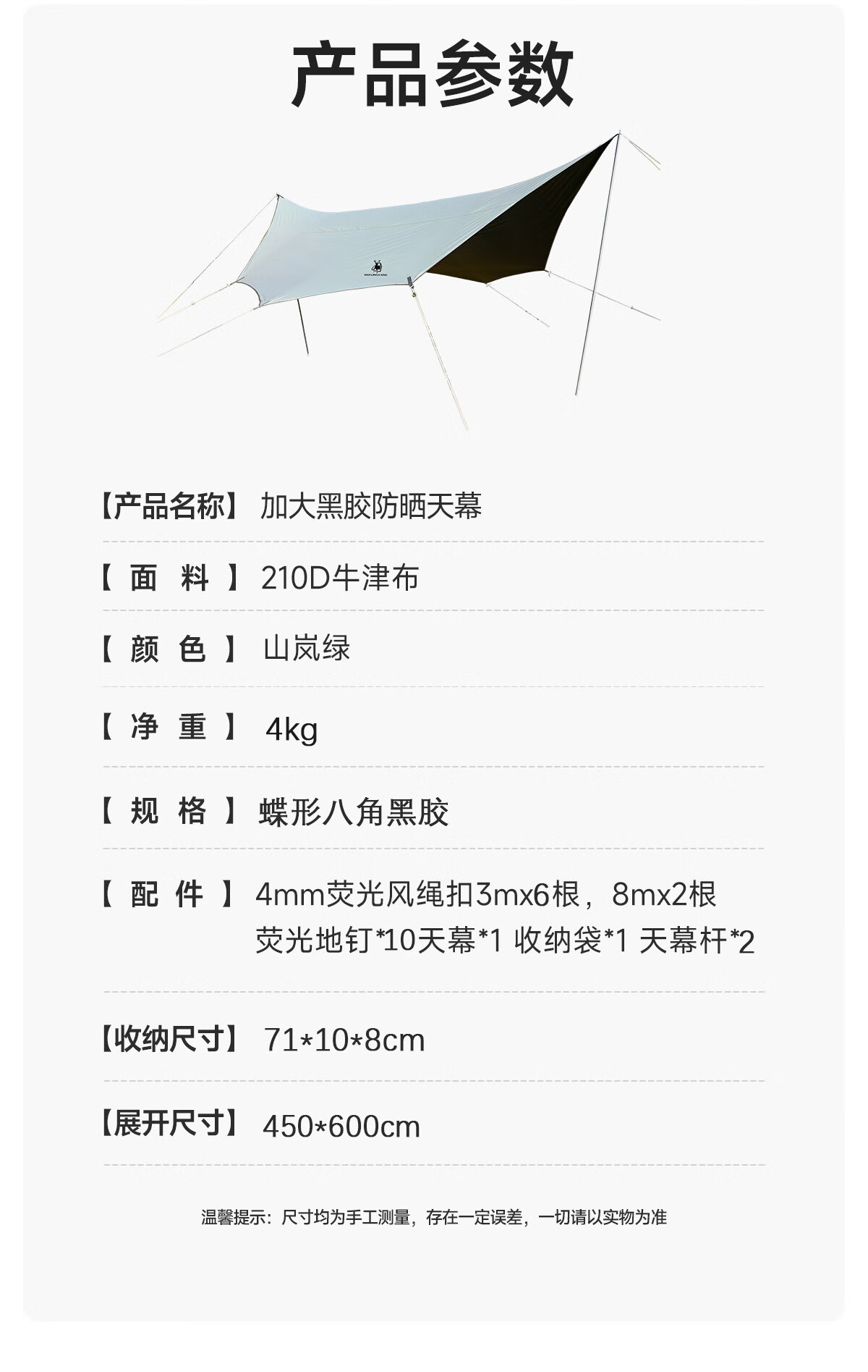 徽羚羊 云凌 八角天幕 黑胶 4.5*6M 绿色
