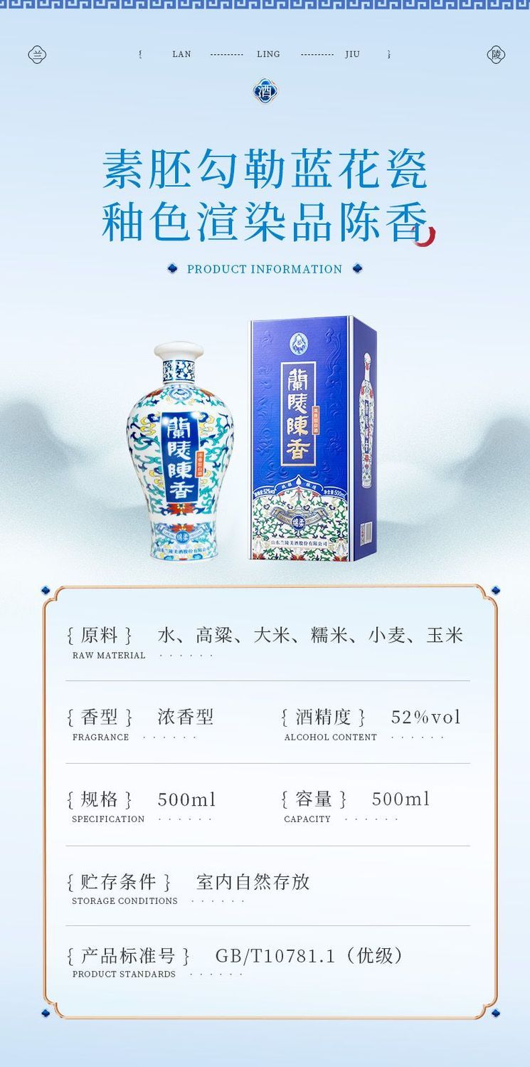 兰陵陈香蓝瓷陈香52度500mL*6浓香型白酒纯粮 自饮送礼