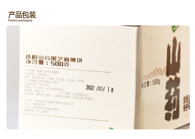 *自营*焦作垆土铁棍山药黑芝麻薄饼一斤装 | 山药含量≥60%烘烤类糕点黑芝麻。