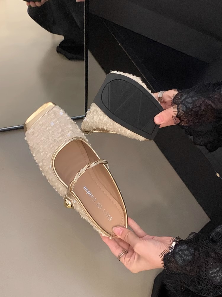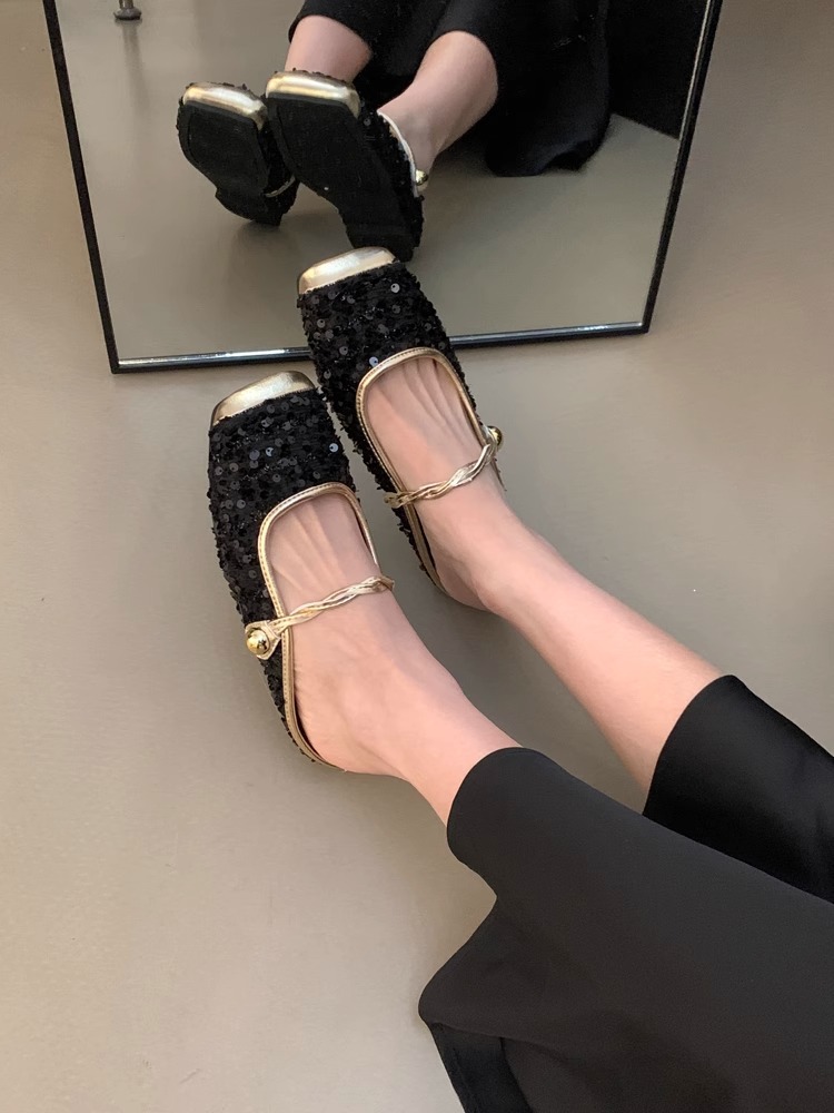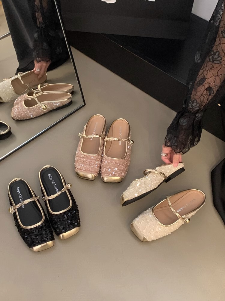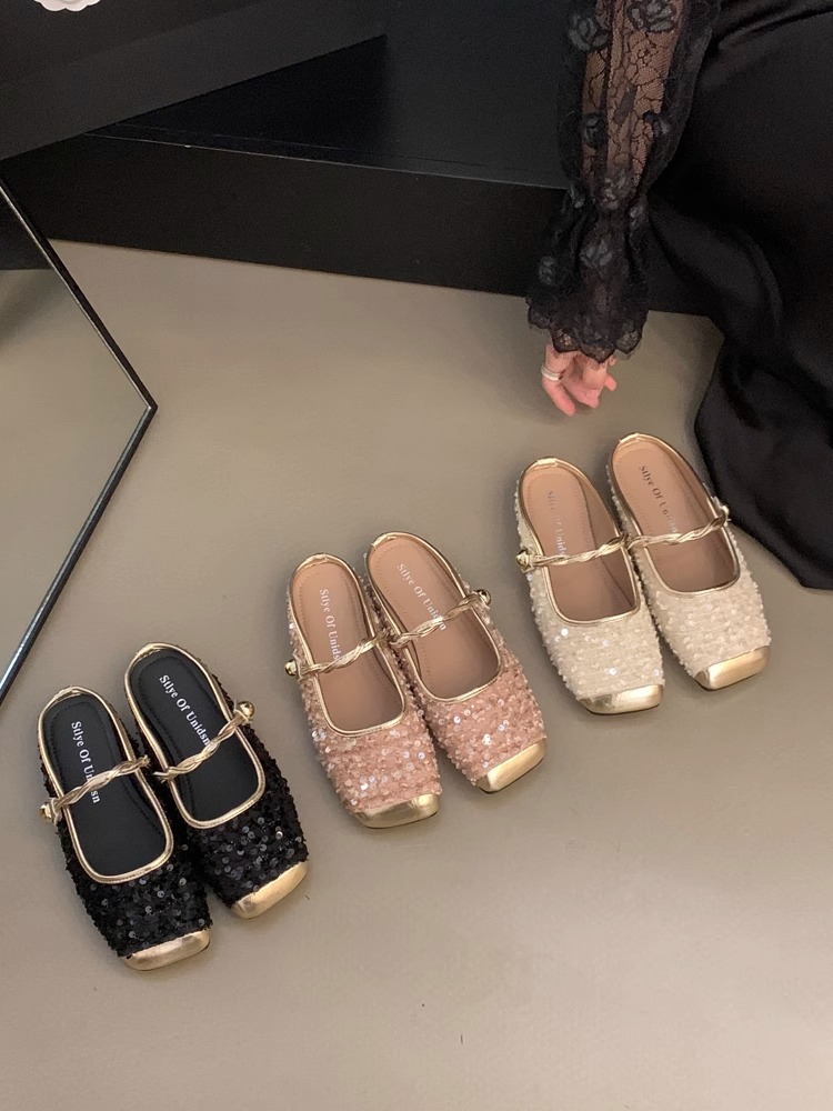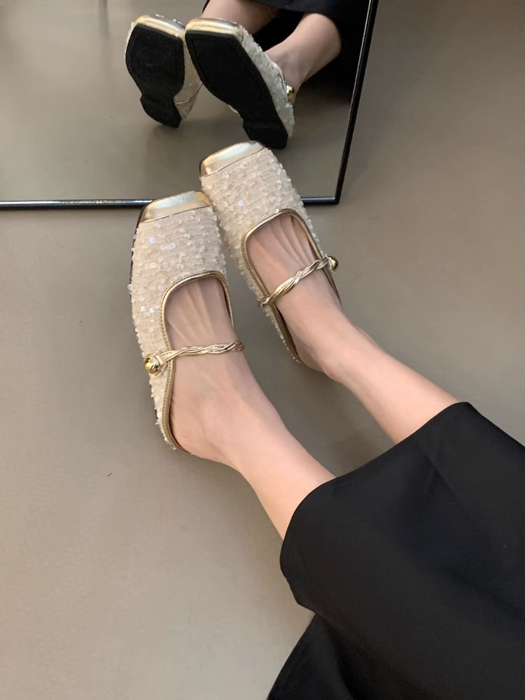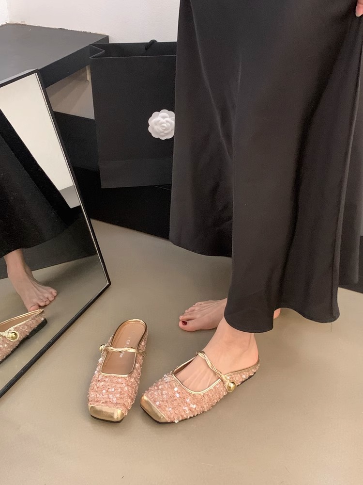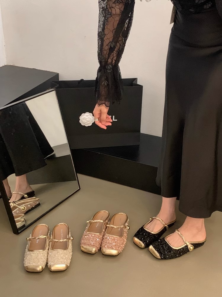 【新款小香风法式亮片包头半拖鞋】夏季新款气质玛丽珍半拖鞋,温柔包头半拖鞋,小香风气质玛丽珍单鞋女平底鞋QQ