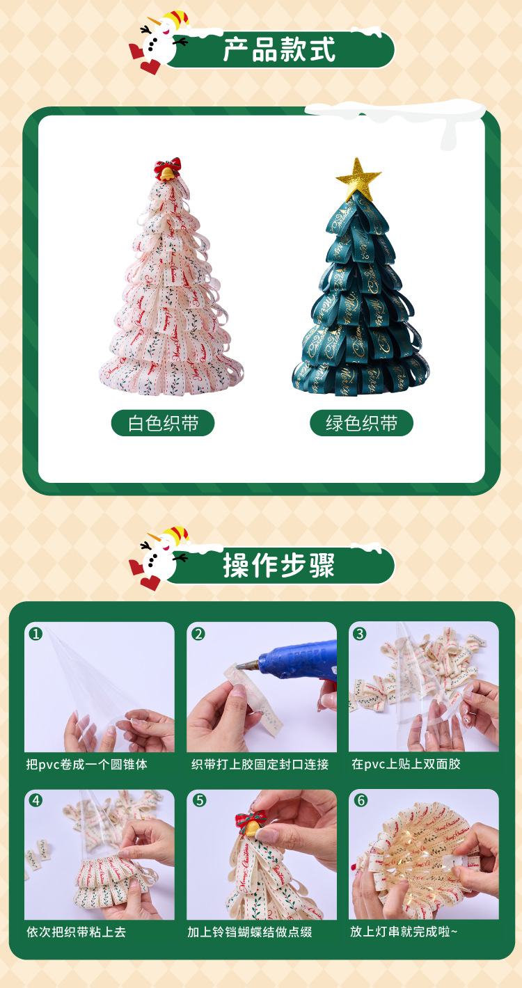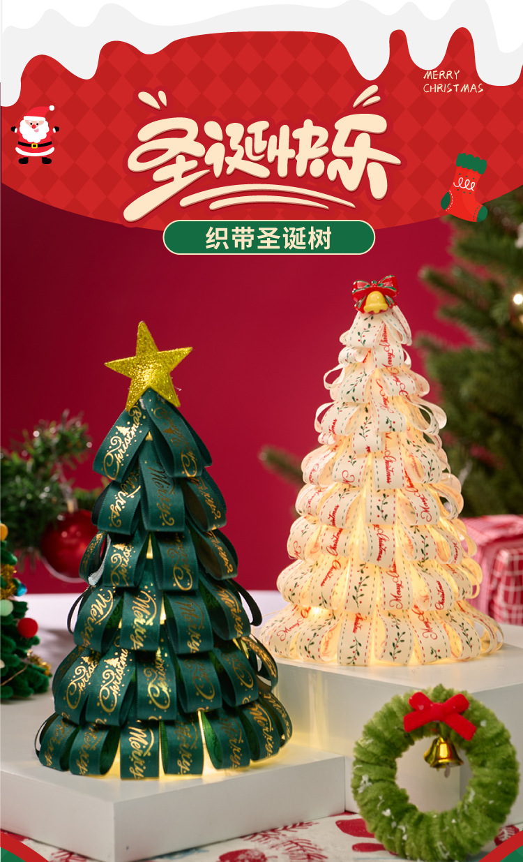 【发光氛围❗️织带圣诞树】氛围感摆件新款白色织带圣诞树,创意设计·装饰超美,diy手工材料包儿童制作幼儿园创意圣诞小礼物QQ新年礼盒年货礼盒