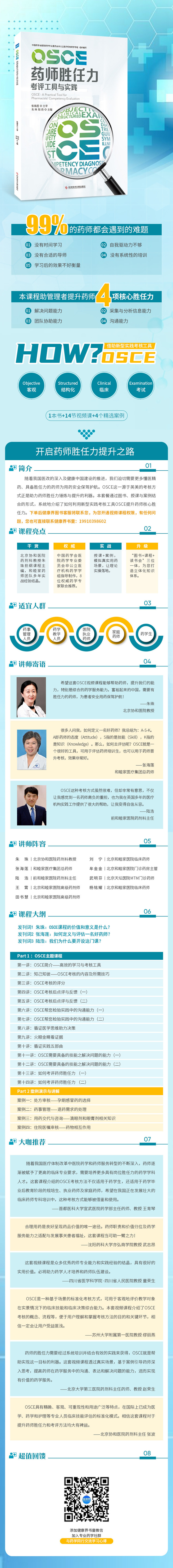 套餐包含《OSCE药师胜任力考评工具与实践》纸质图书1本,以及21课时系列视频课程.