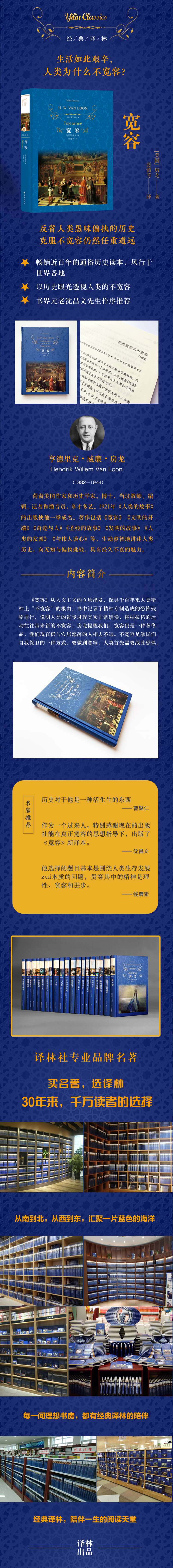 房龙的《宽容》从人文主义的立场出发,探寻千百年来人类精神上“不宽容”的根由。书中记录了精神专制造成的恐怖残酷罪行,说明人类的进步过程其实非常缓慢,摧枯拉朽的运动往往带来新的不宽容。房龙提醒我们,宽容仍是一种奢侈品,我们现在仍与穴居部落的人相去不远。不宽容是暴民们自我保卫的一种方式,要做到宽容,人类首先需要战胜恐惧。
