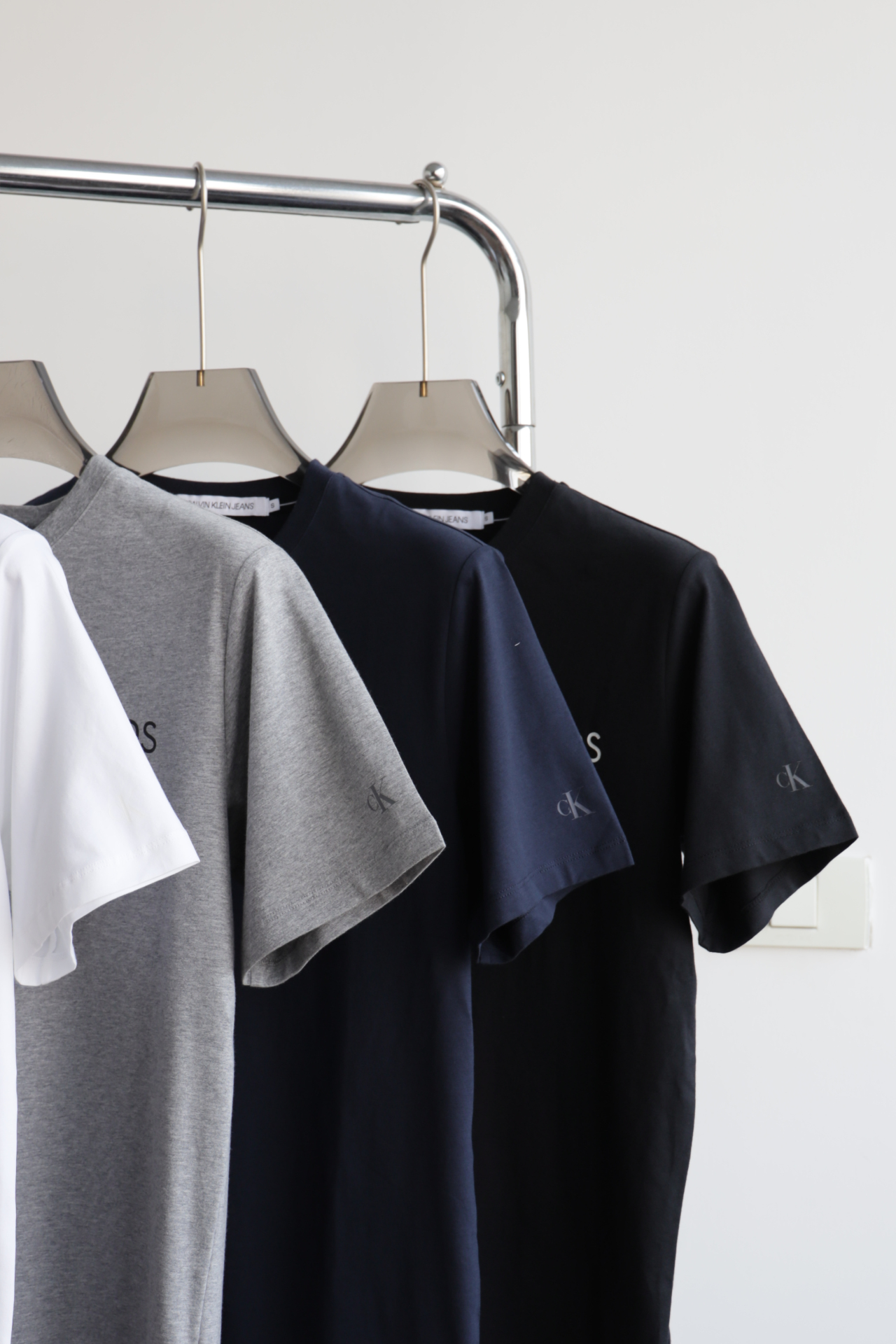 西K元单 弹力pima棉 小字母圆领短袖T恤