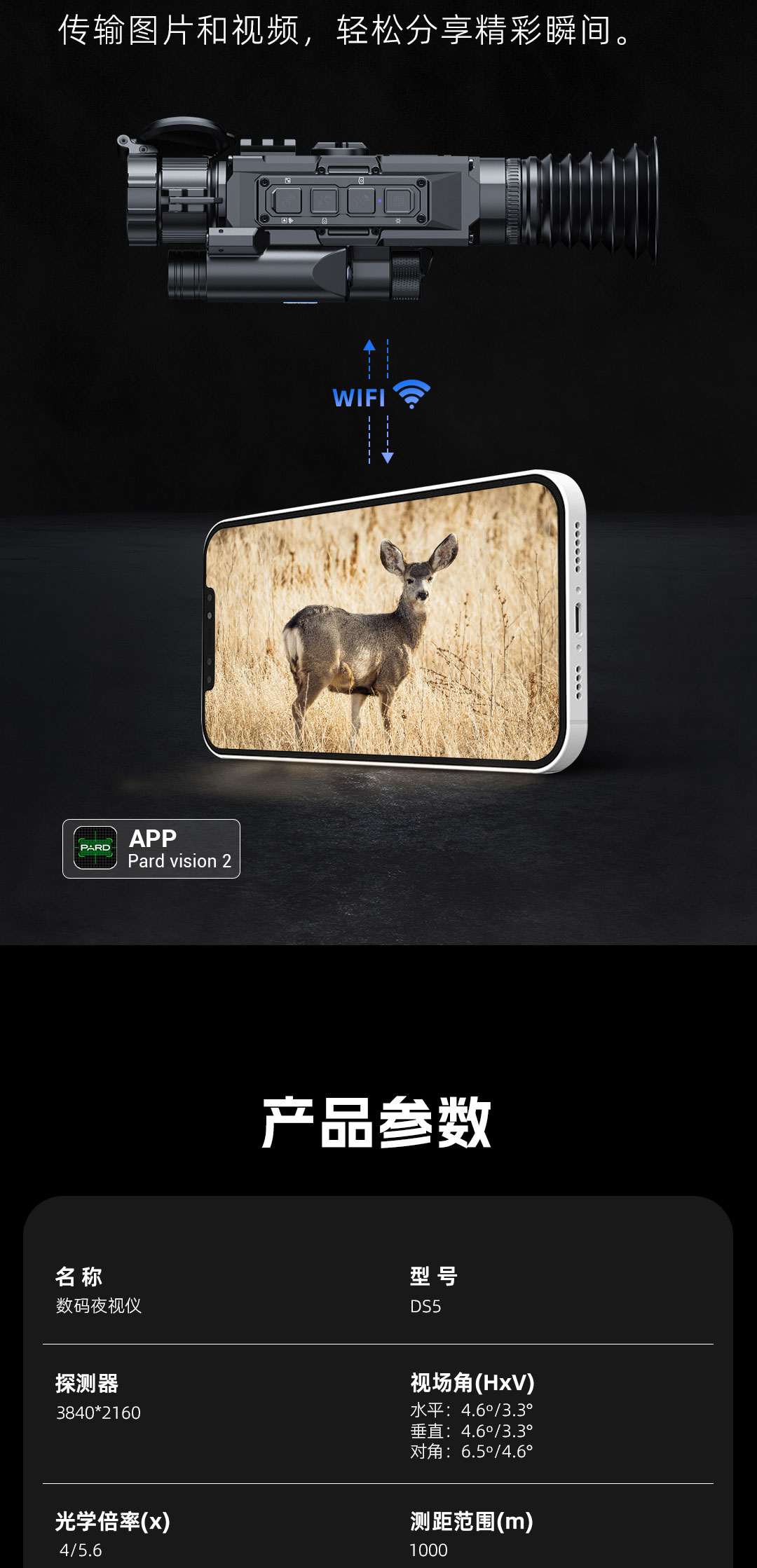 普雷德DS5 4K高清红外夜视仪电子测距自动落点解算