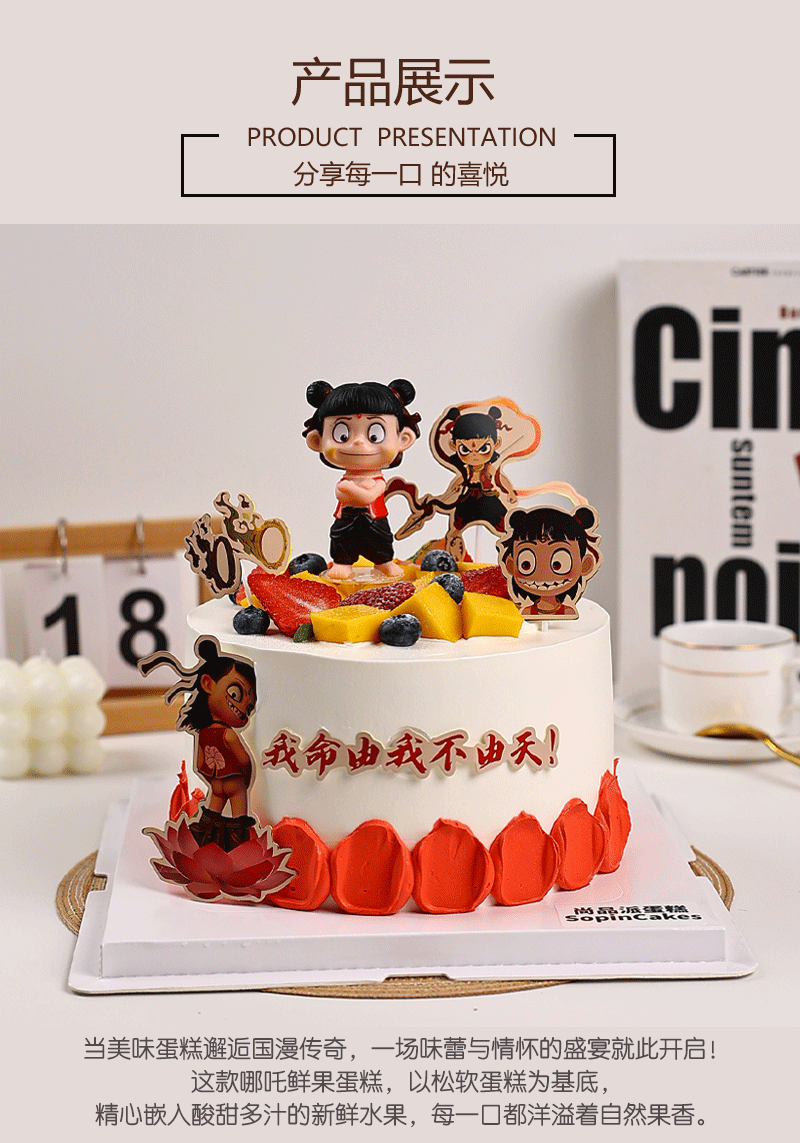 哪吒主题鲜果蛋糕,燃爆你的生日主场【惠州】