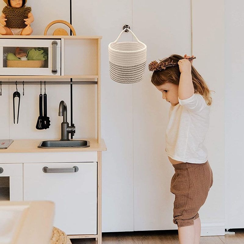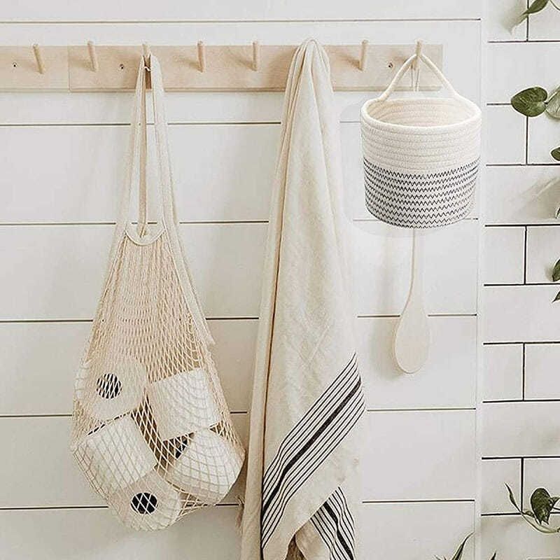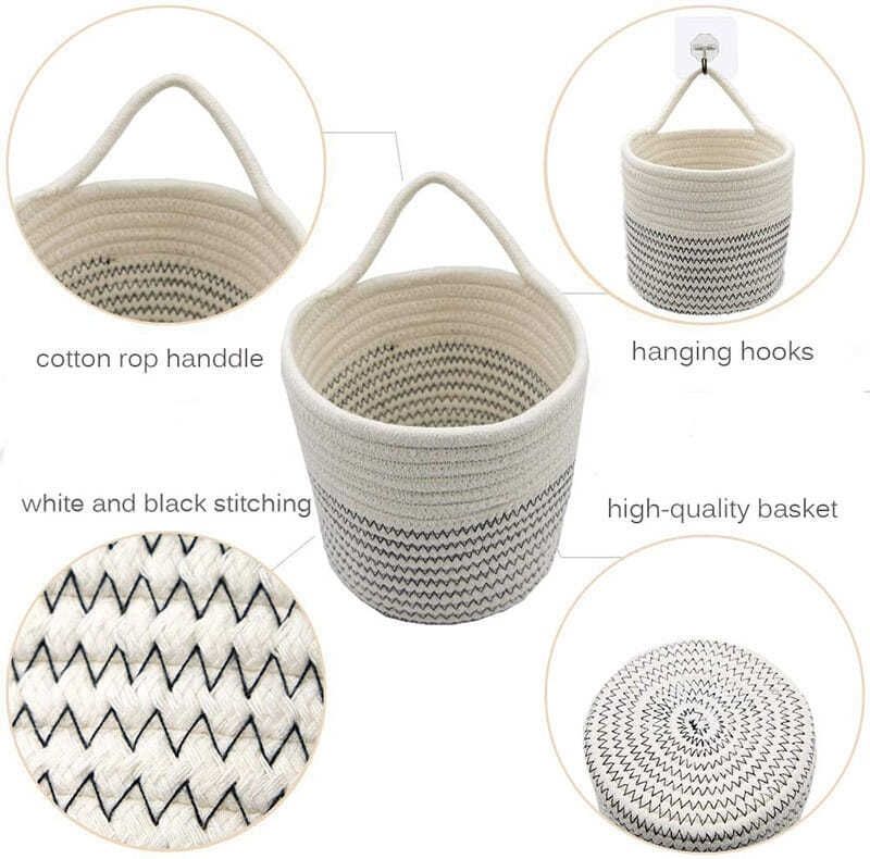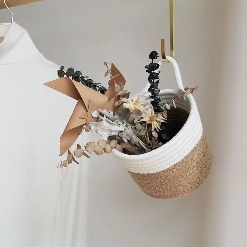 壁挂收纳筐钥匙棉麻玄关收纳篮杂物零食筐花盆编织挂篮吊篮盆栽