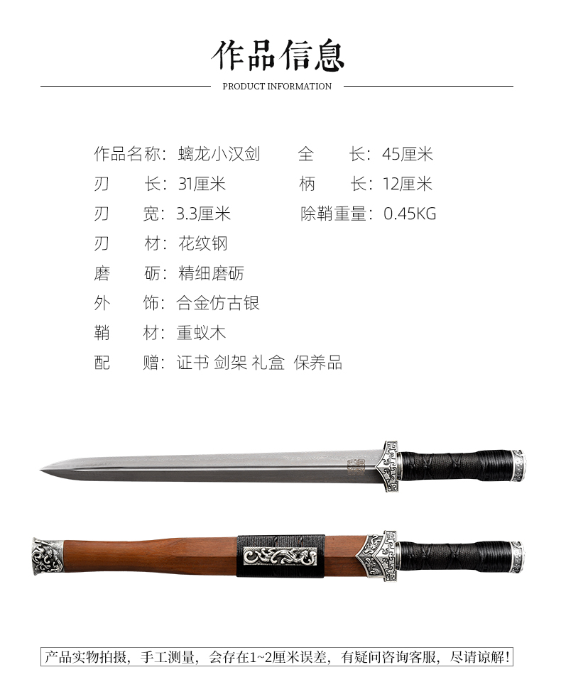 螭龙小短剑 龙泉短剑礼品短剑收藏短剑 龙泉沈广隆宝剑 未开刃