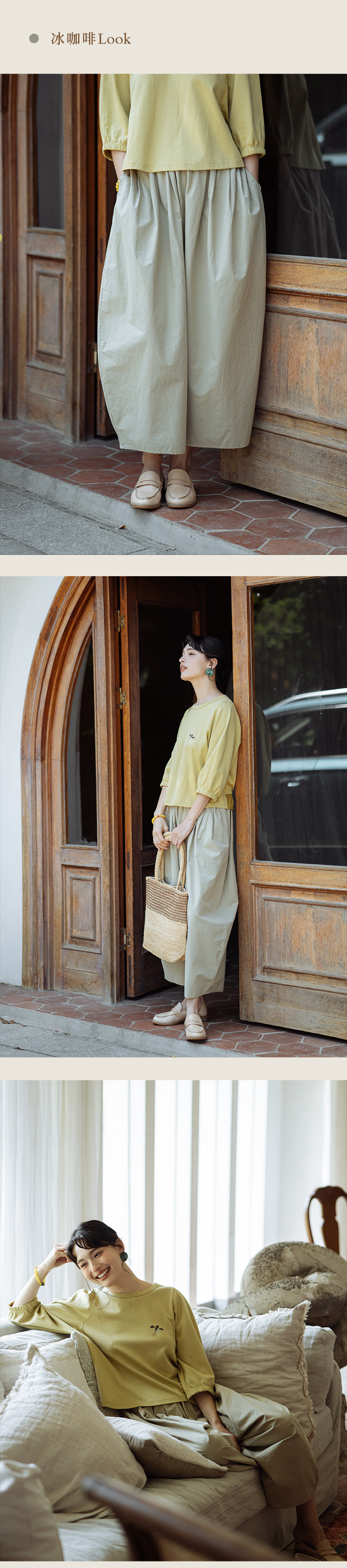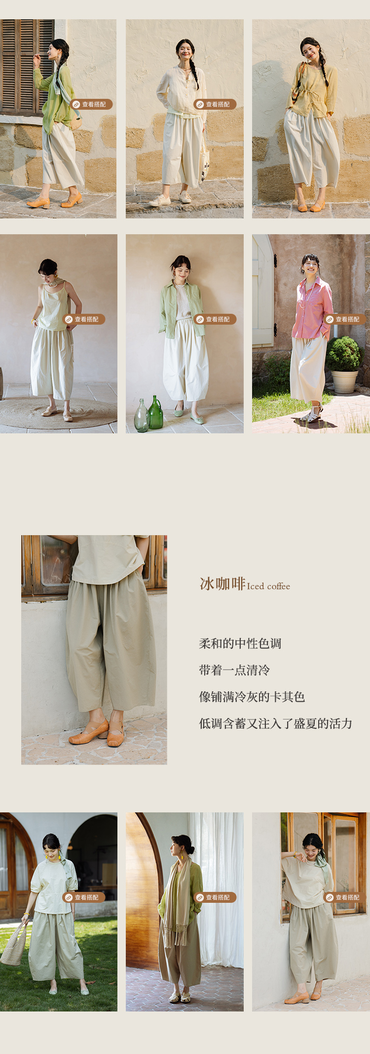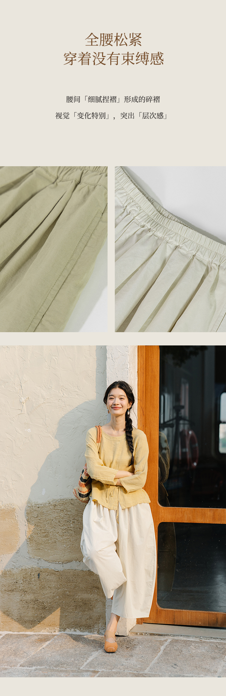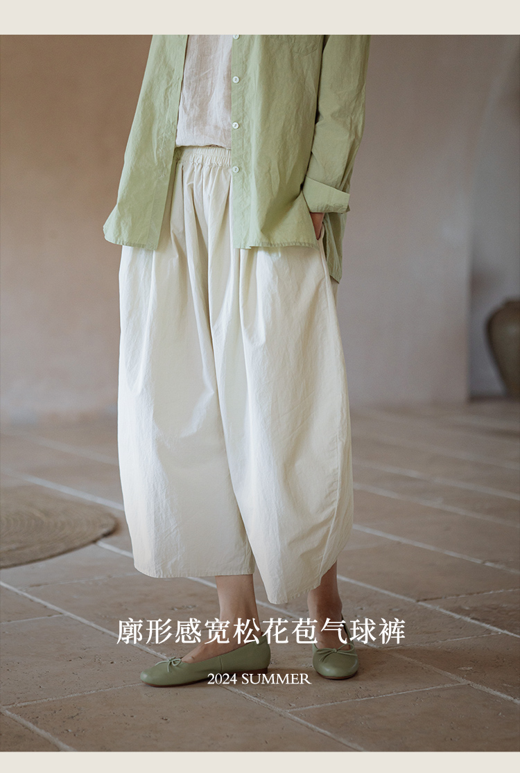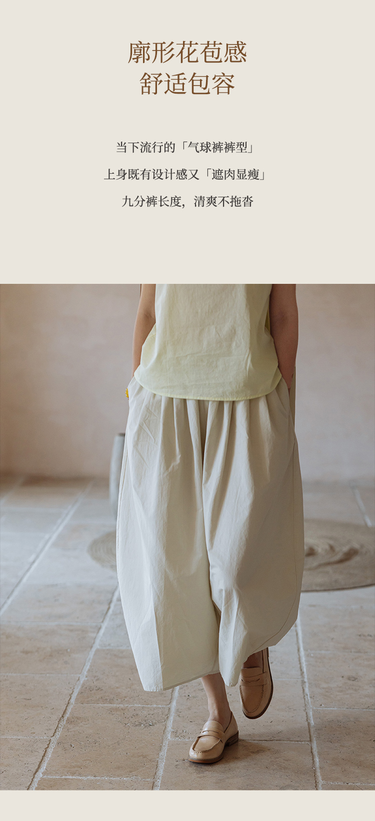 绽放384朵【甜茶系列·冰咖啡】廓形感宽松休闲棉麻花苞气球裤