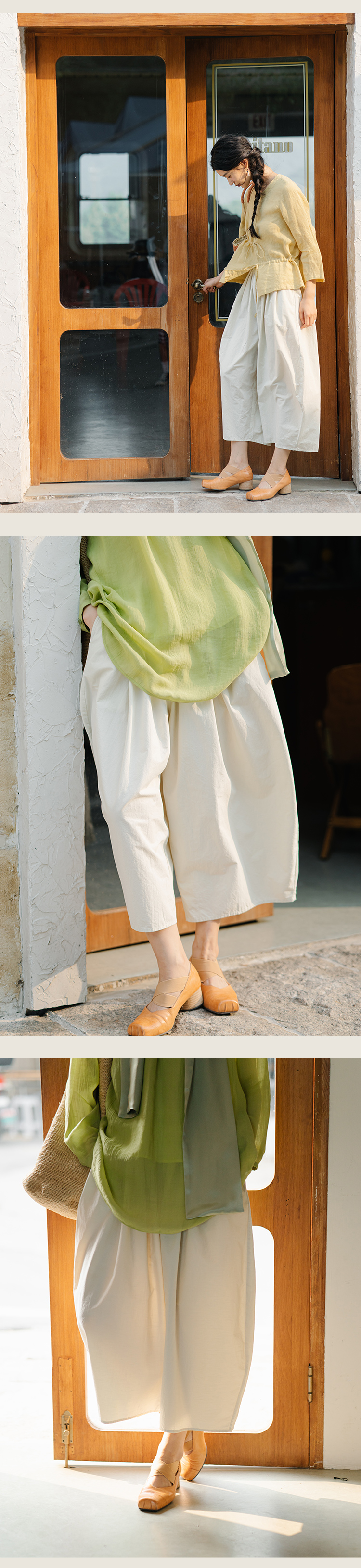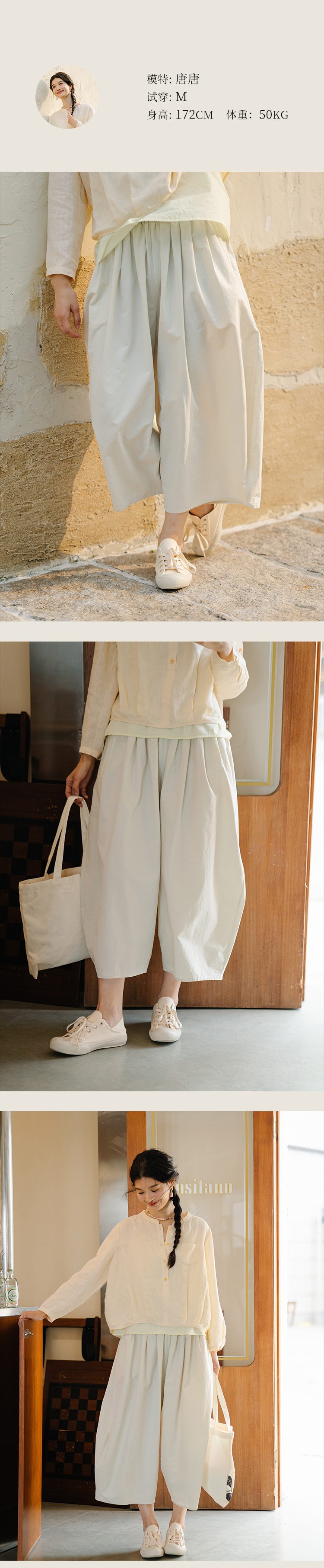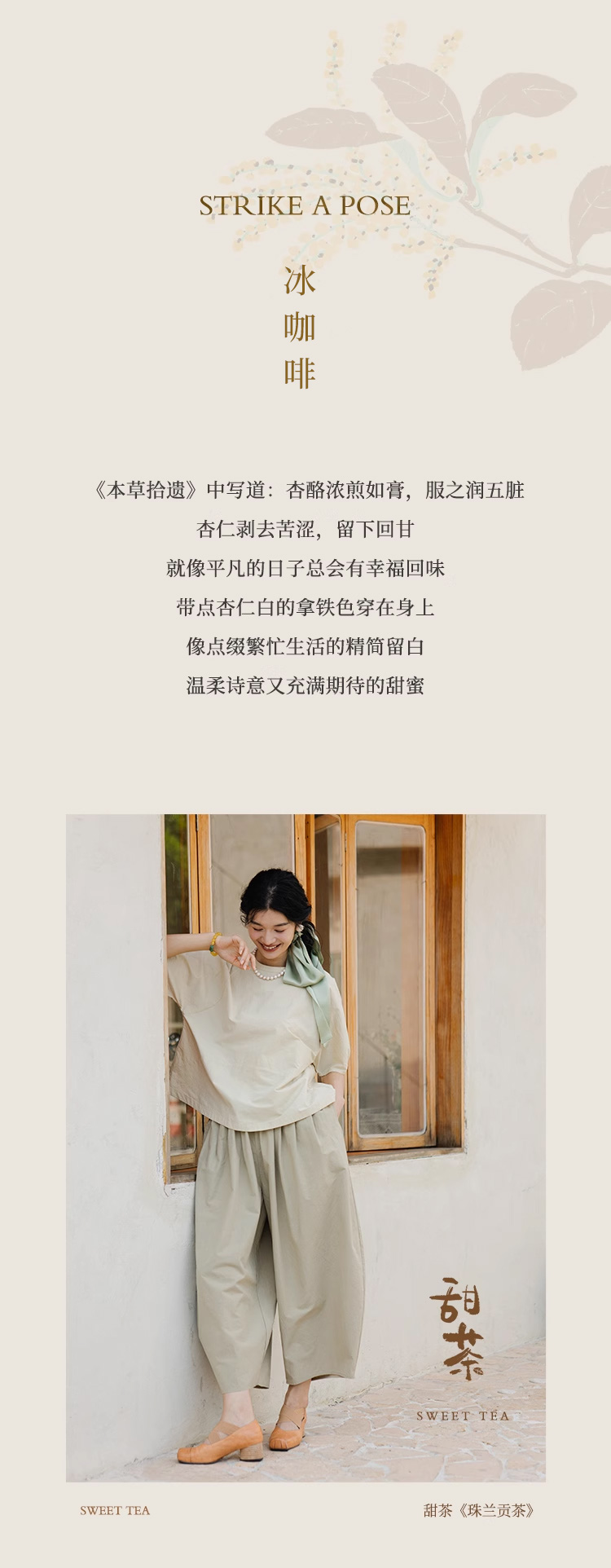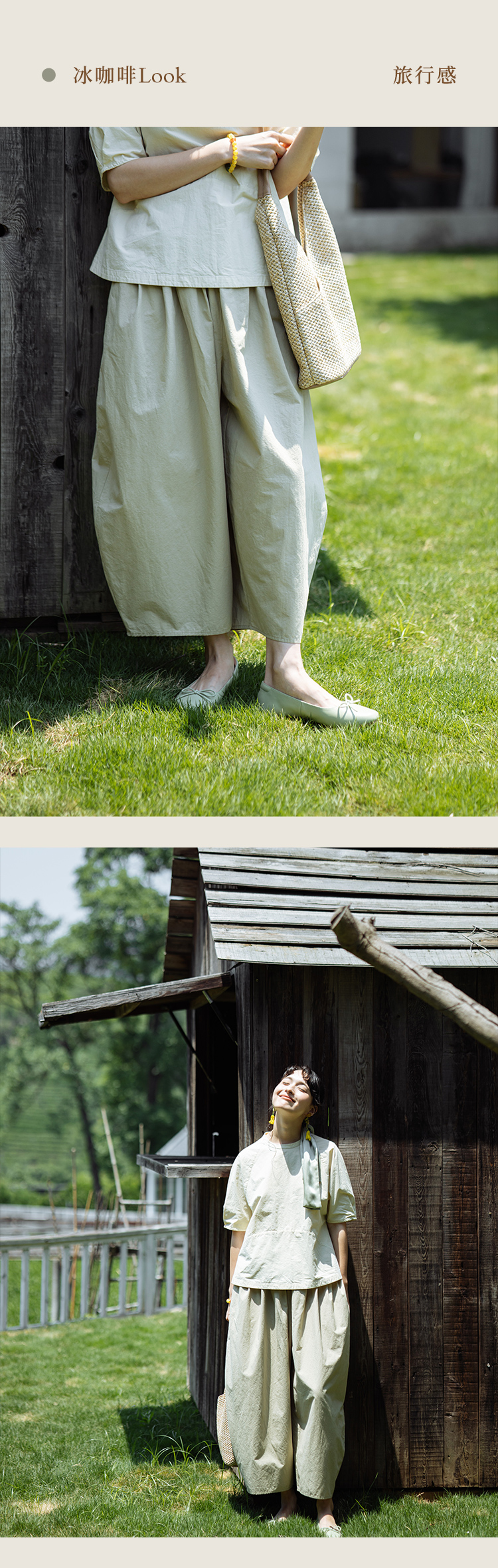 绽放384朵【甜茶系列·冰咖啡】廓形感宽松休闲棉麻花苞气球裤