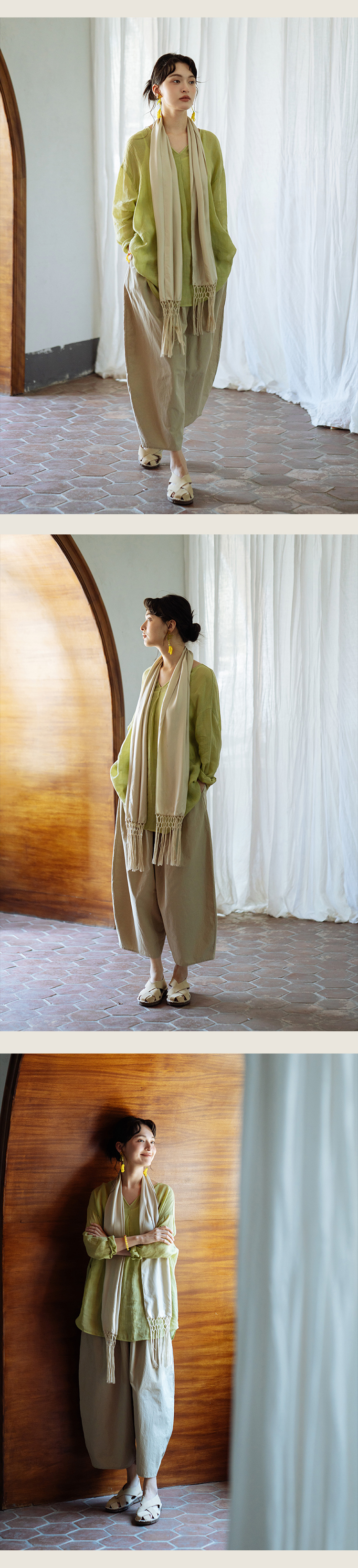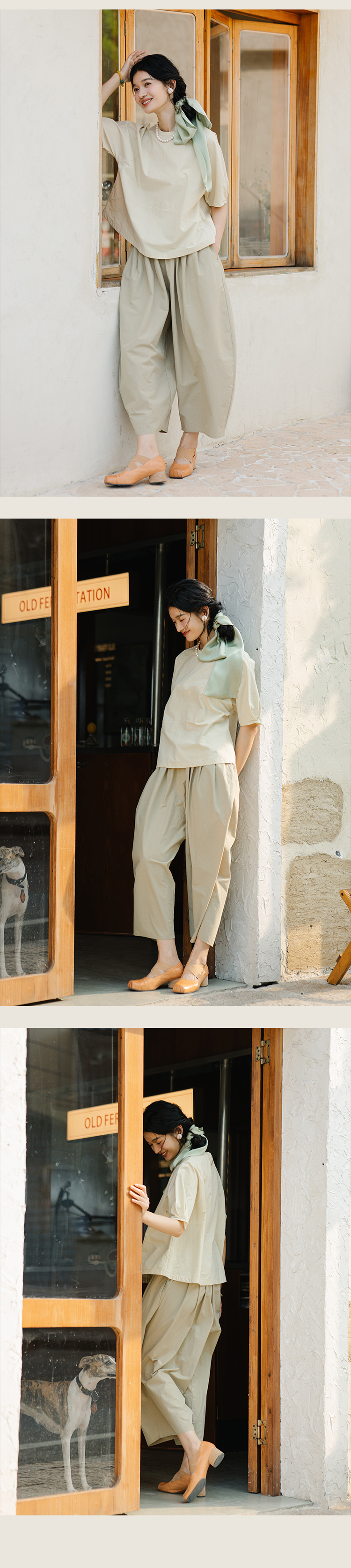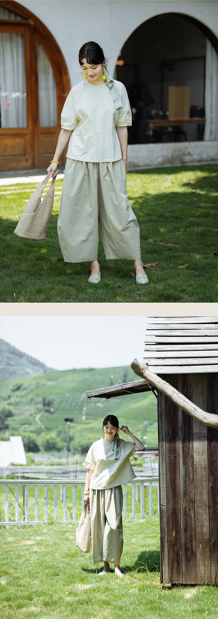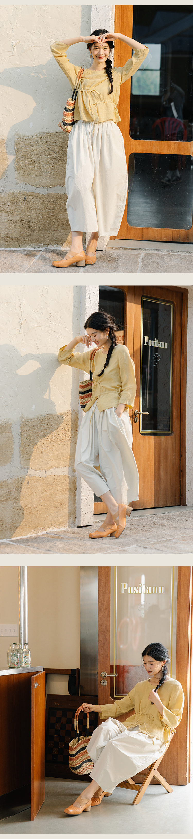 绽放384朵【甜茶系列·冰咖啡】廓形感宽松休闲棉麻花苞气球裤