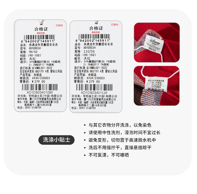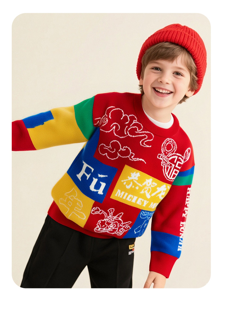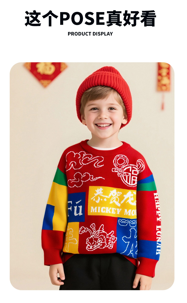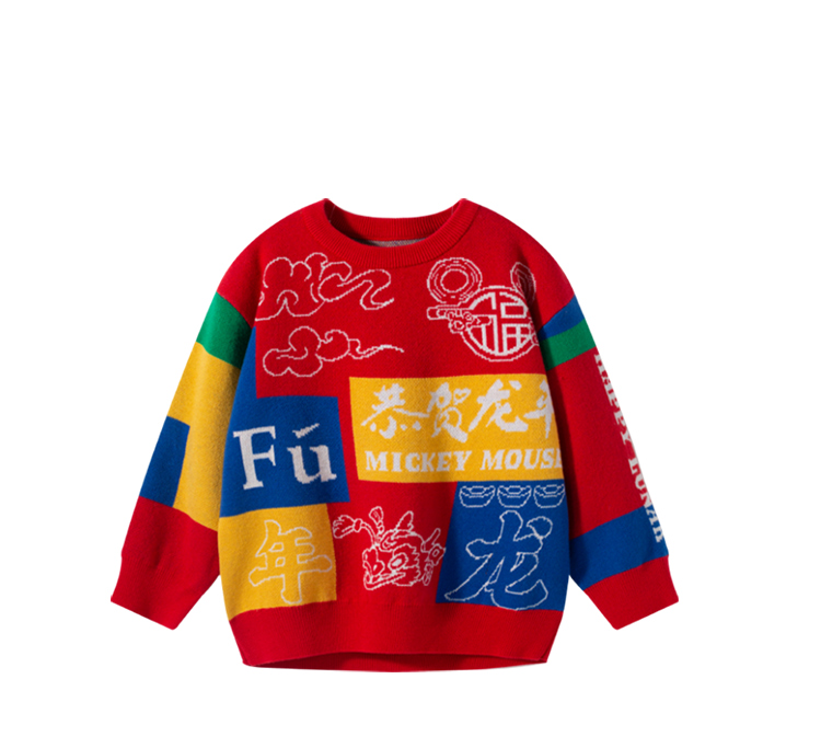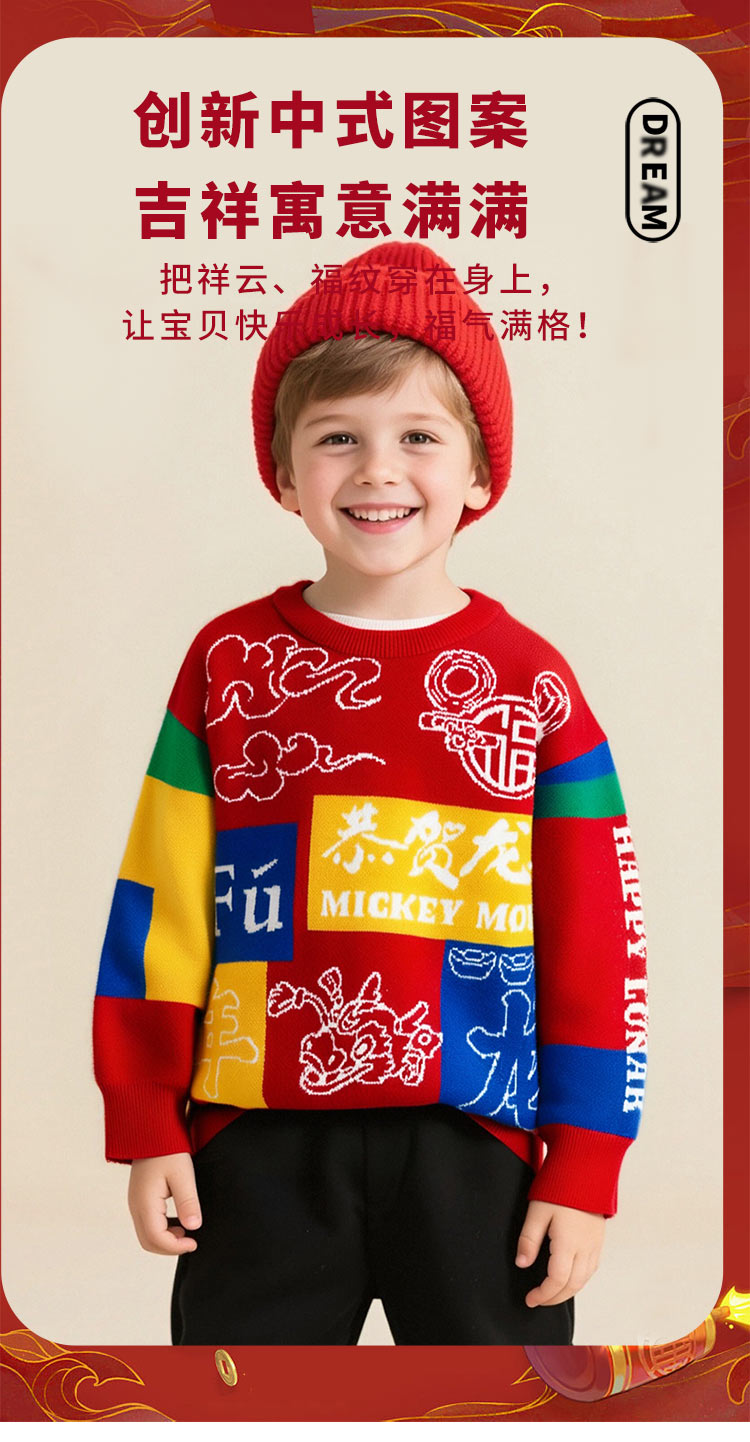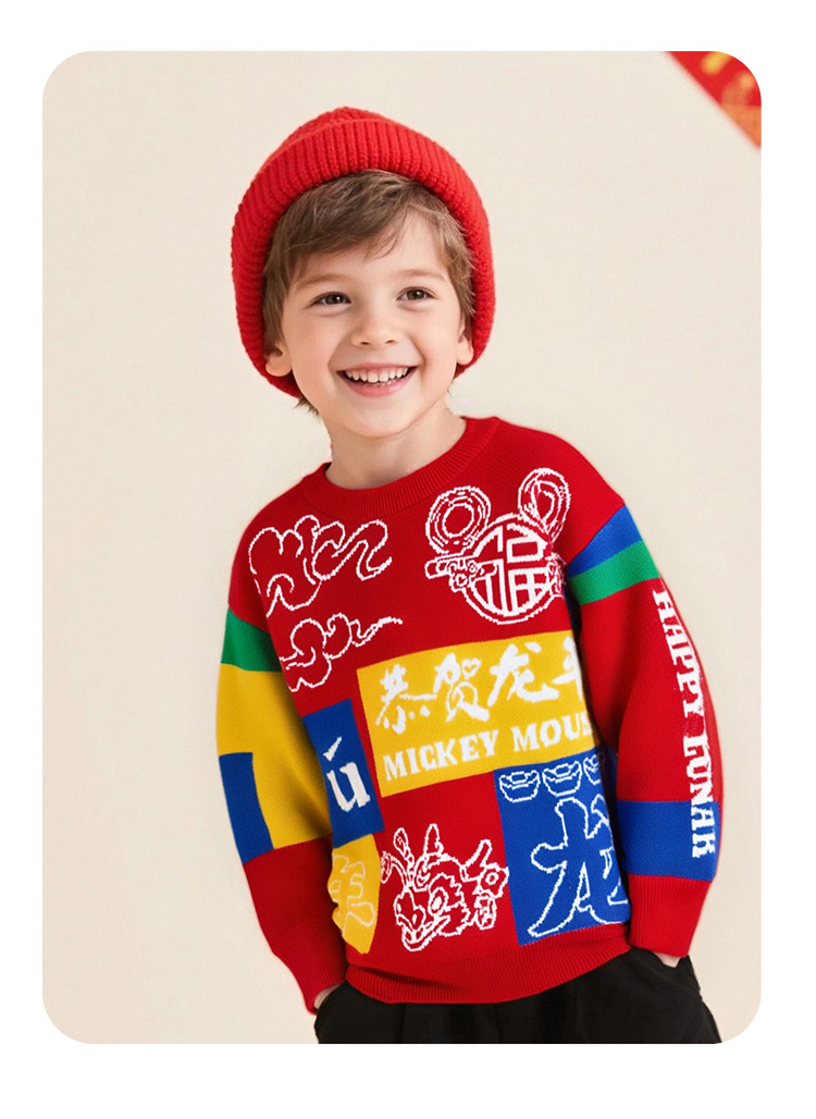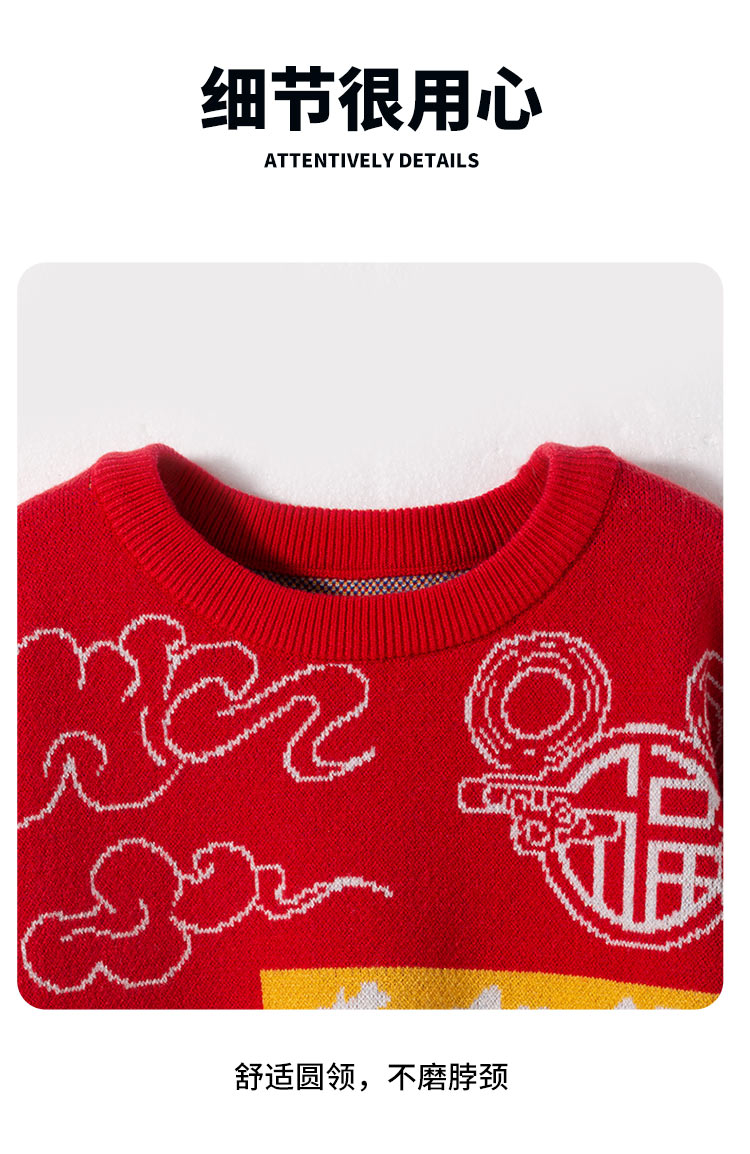 迪士尼儿童毛衣秋冬新款柔软舒适毛衣国风喜庆针织衫洋气拜年服亲肤线衫XD1DS034