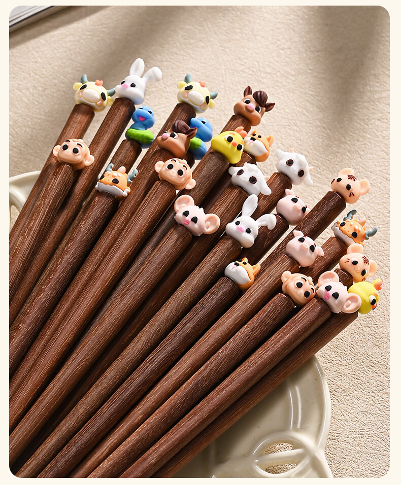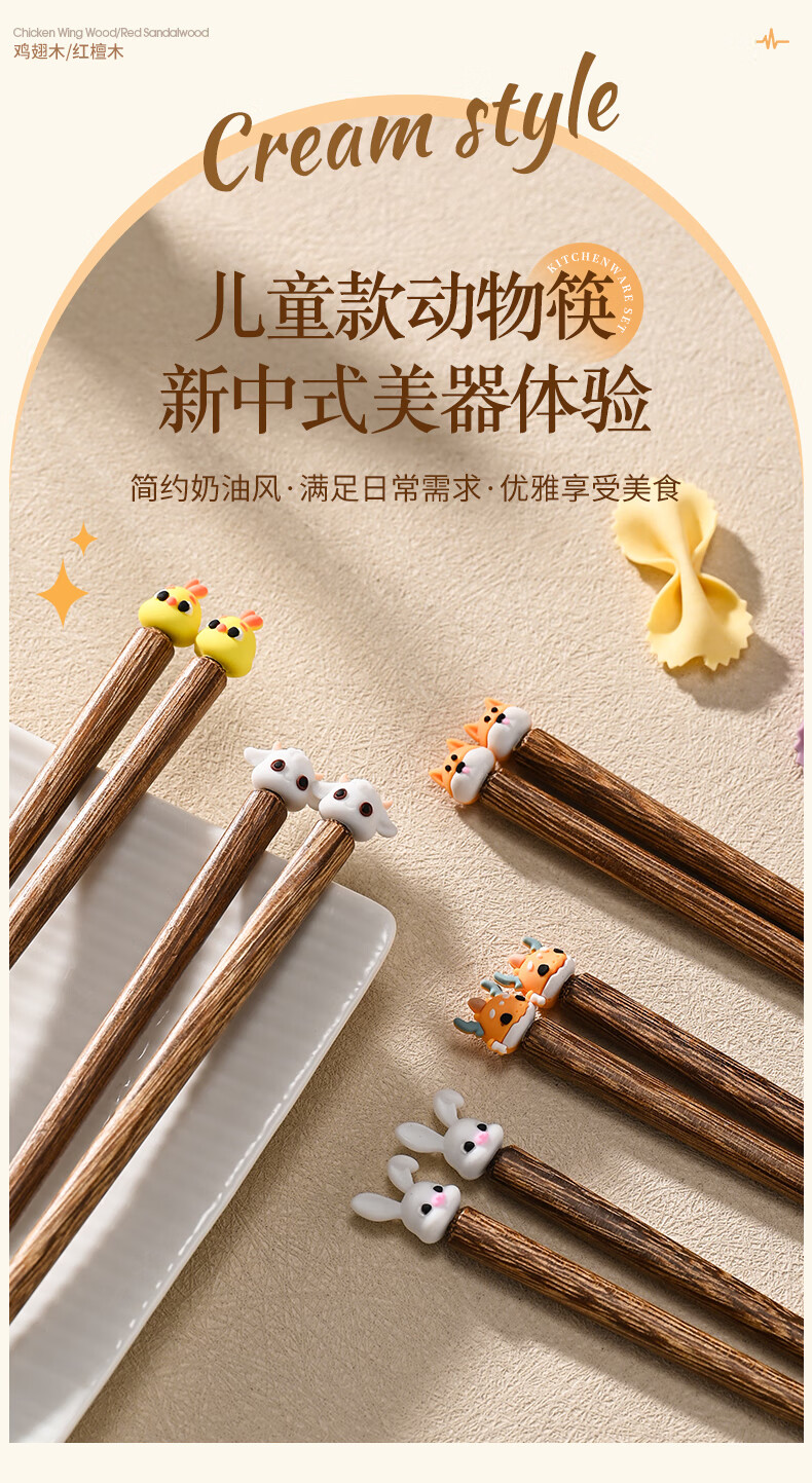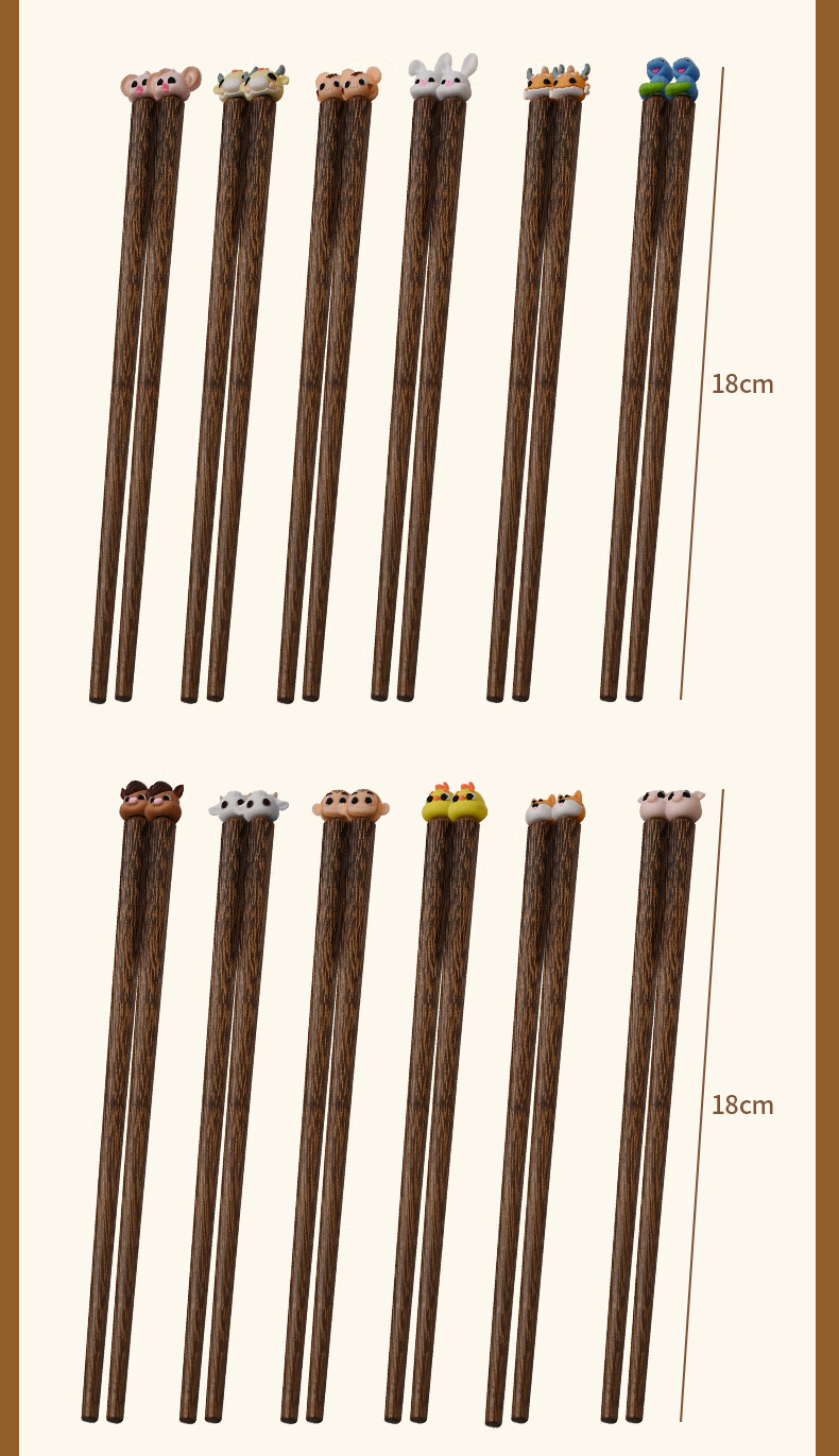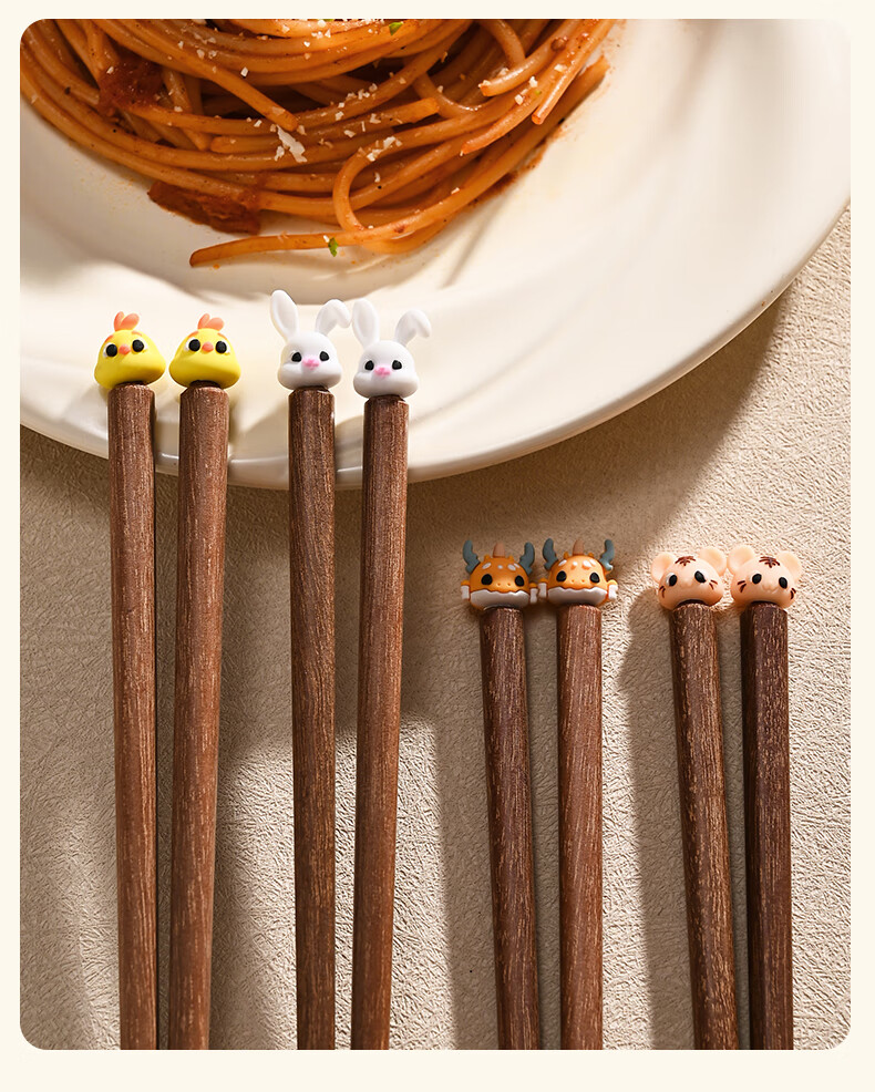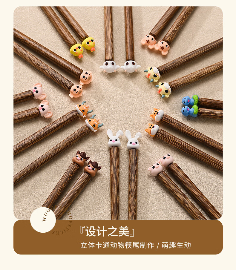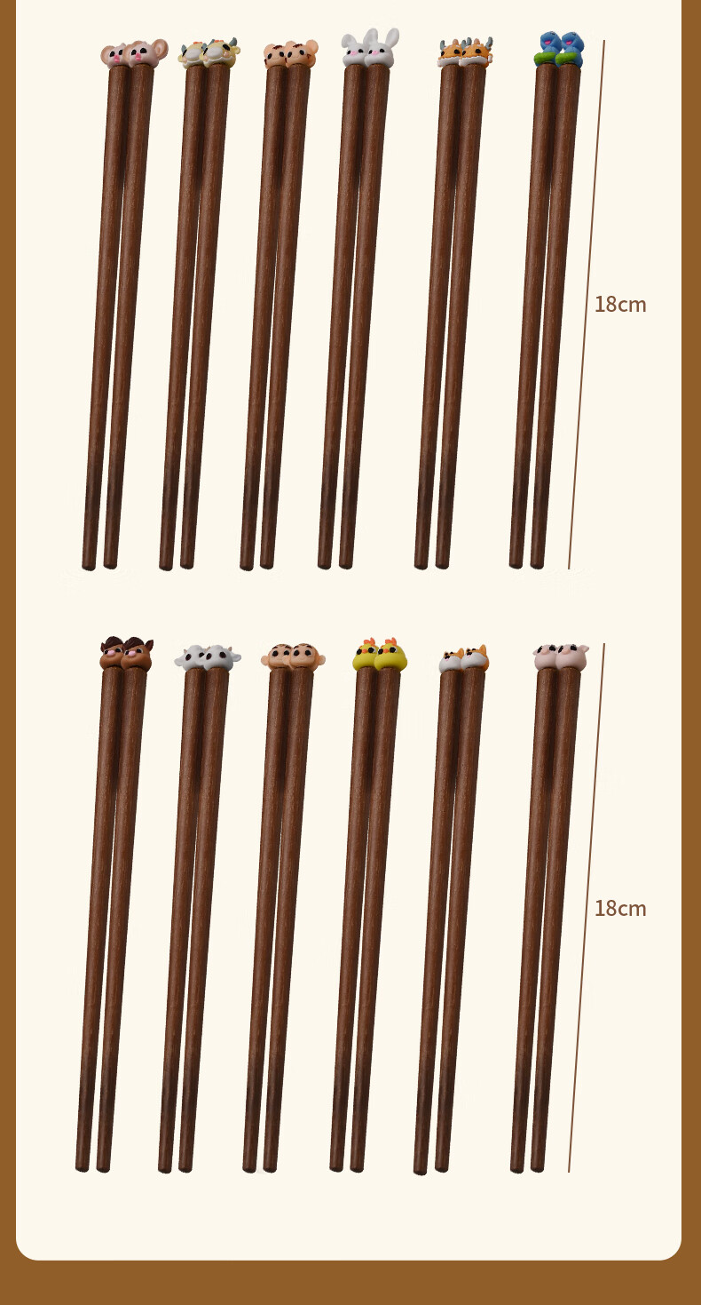 【十二生肖儿童动物筷】中式可爱木质筷子家用高档一人分餐木筷家庭吃饭专用儿童专人筷子
