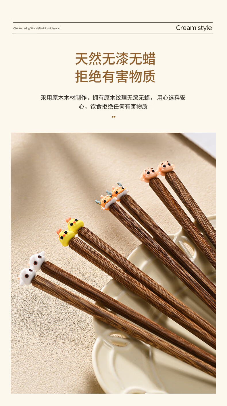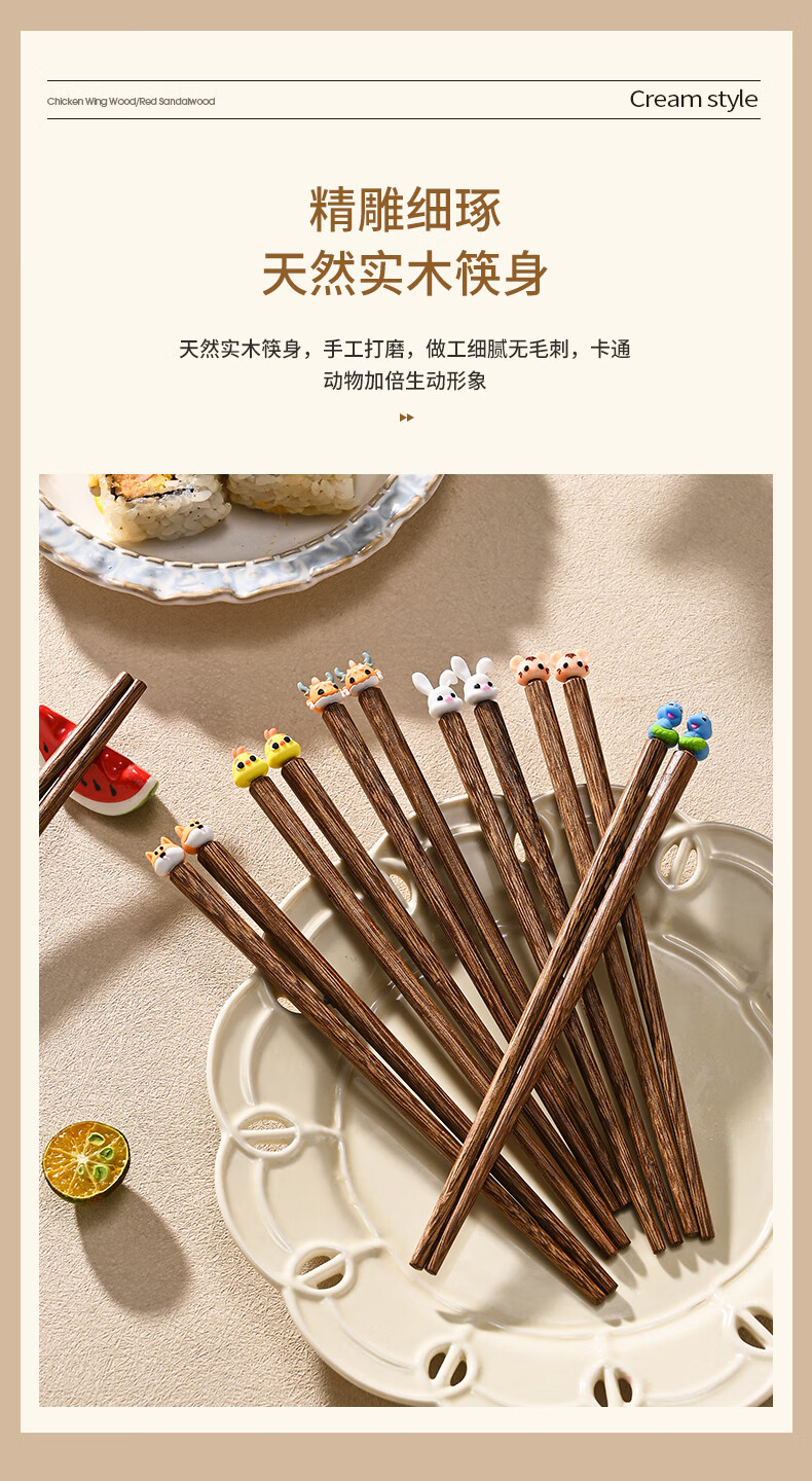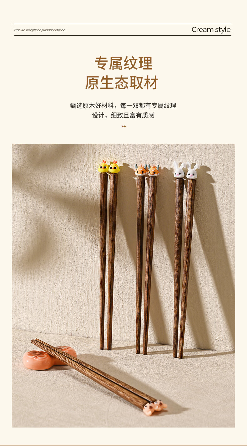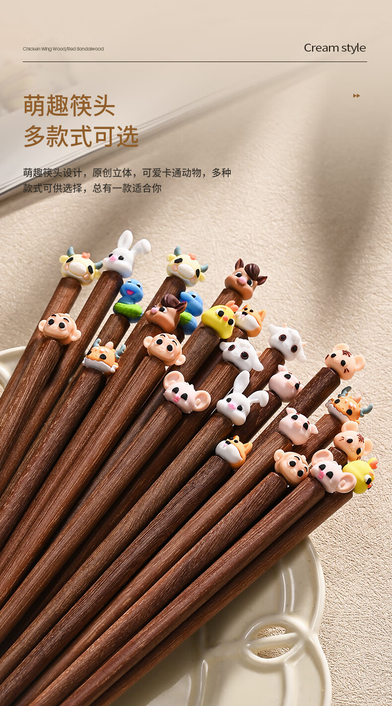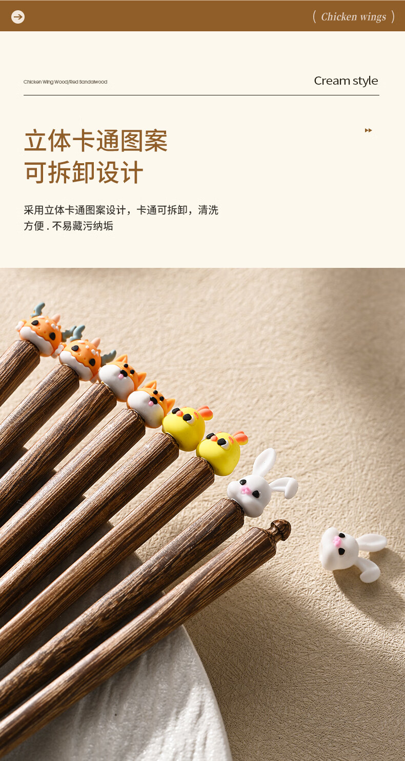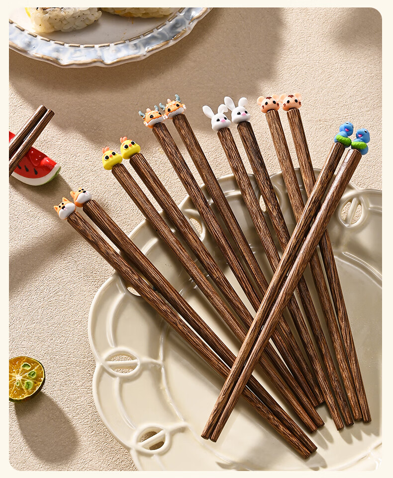 【十二生肖儿童动物筷】中式可爱木质筷子家用高档一人分餐木筷家庭吃饭专用儿童专人筷子
