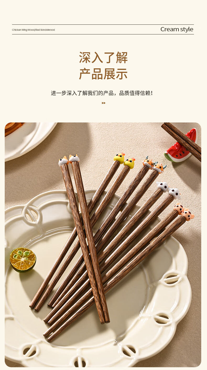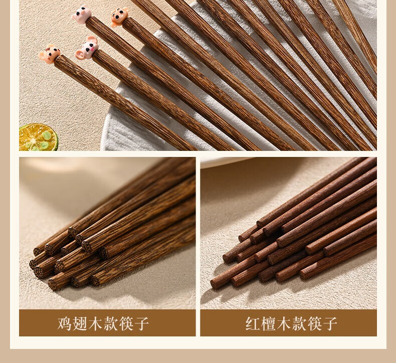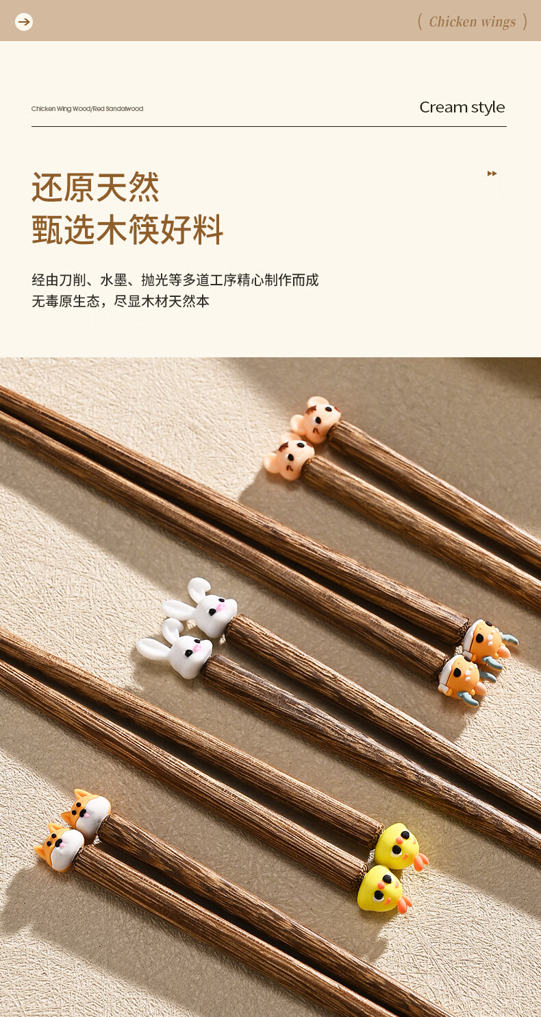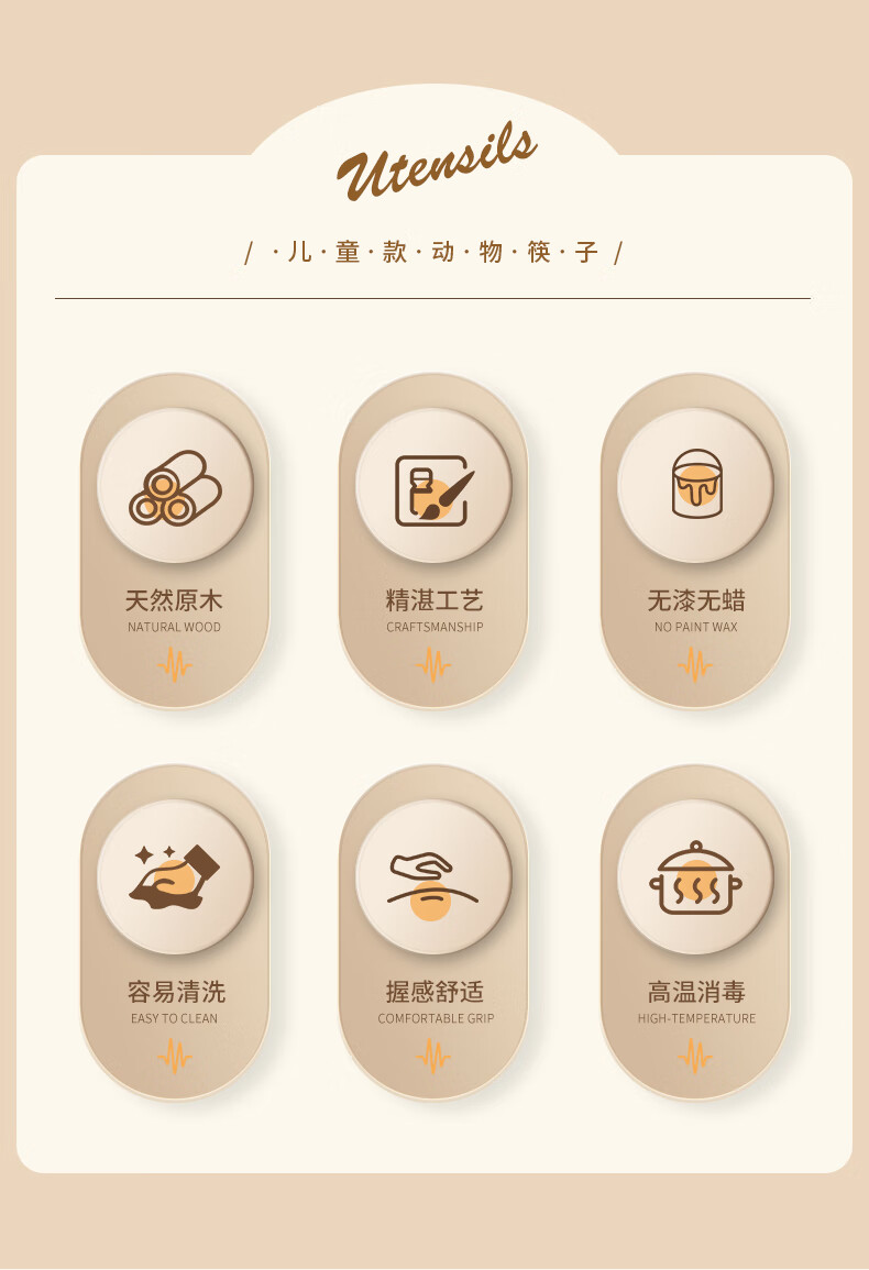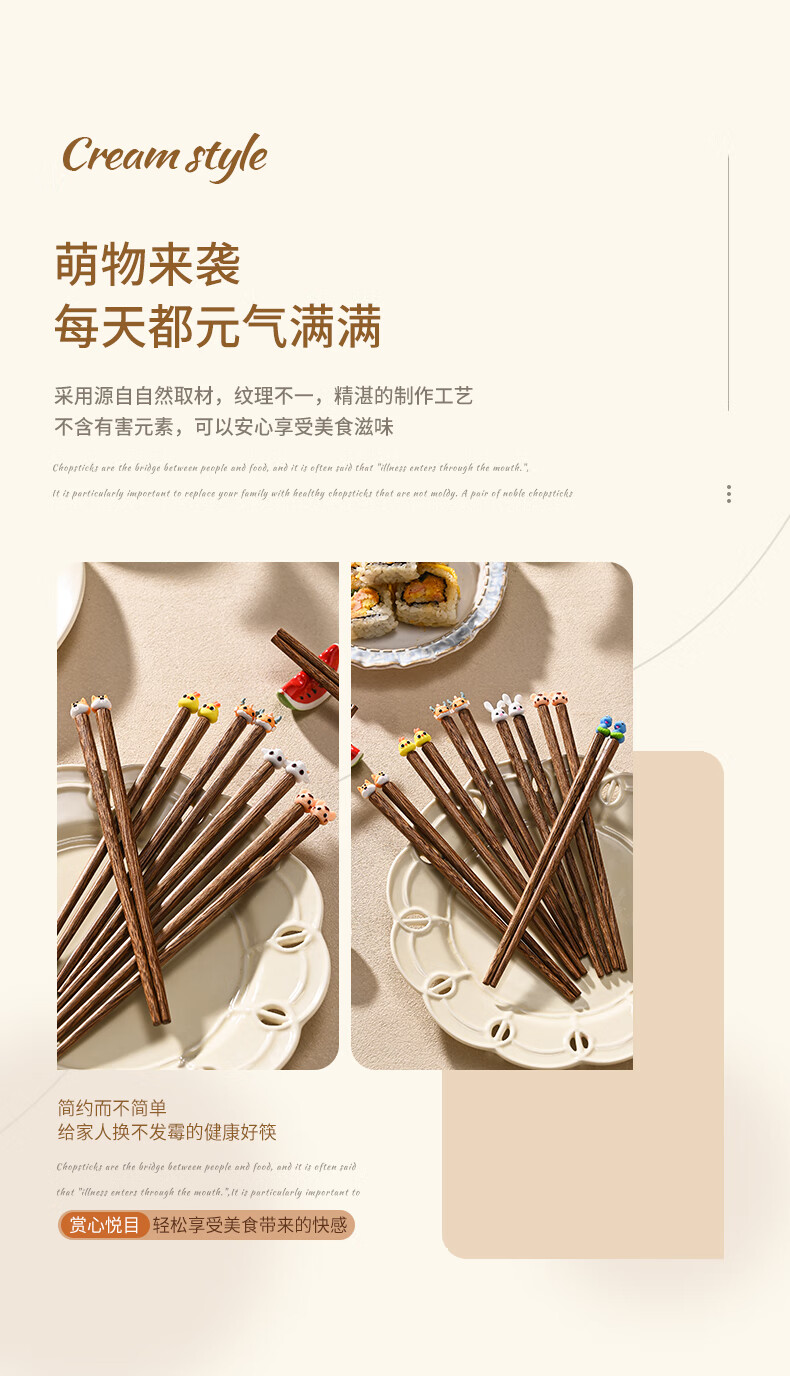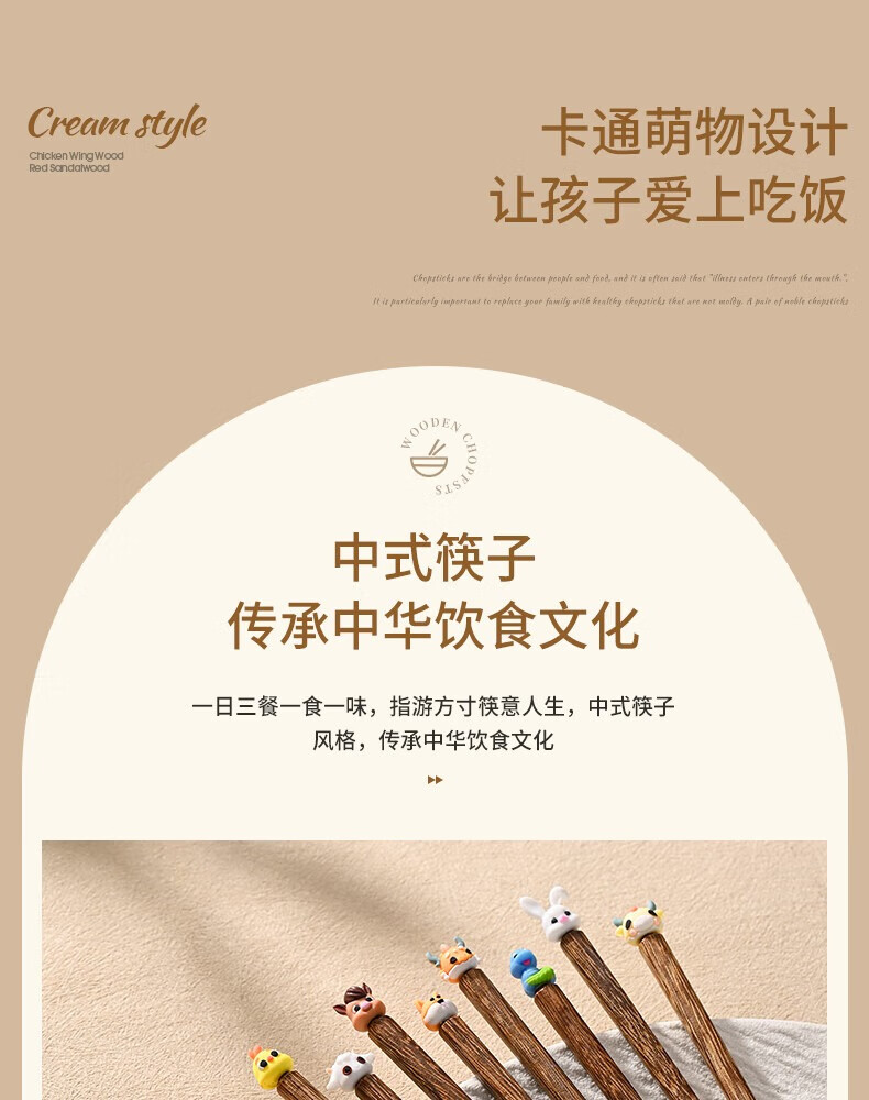 【十二生肖儿童动物筷】中式可爱木质筷子家用高档一人分餐木筷家庭吃饭专用儿童专人筷子