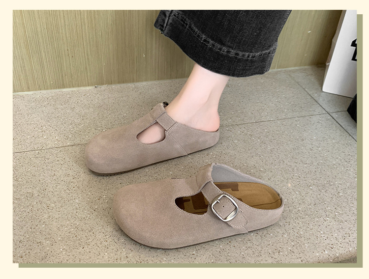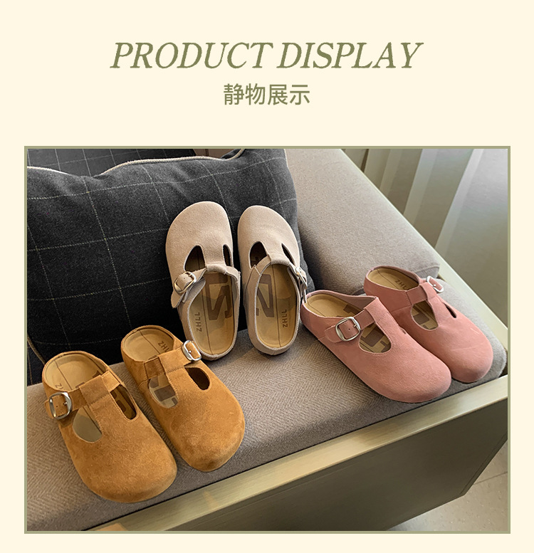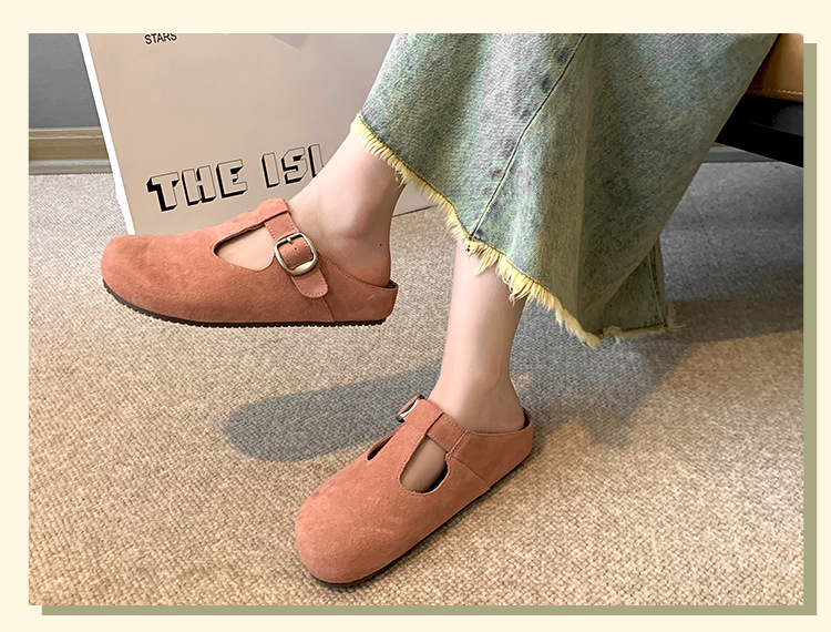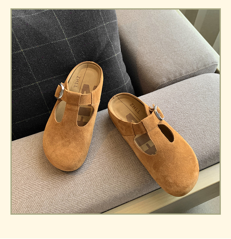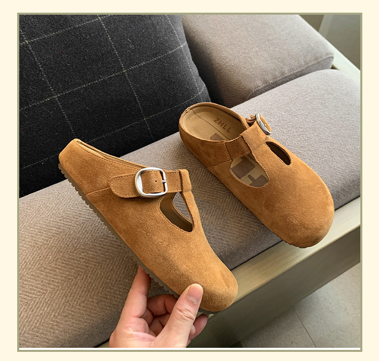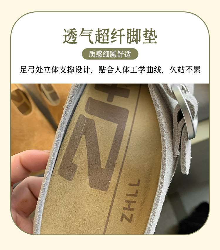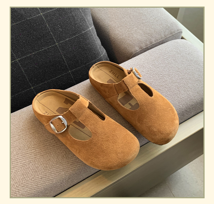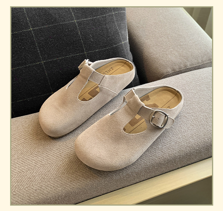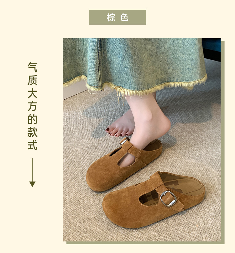 2025新款勃肯拖鞋!复古T字扣包头半拖加肥加宽大码女鞋!