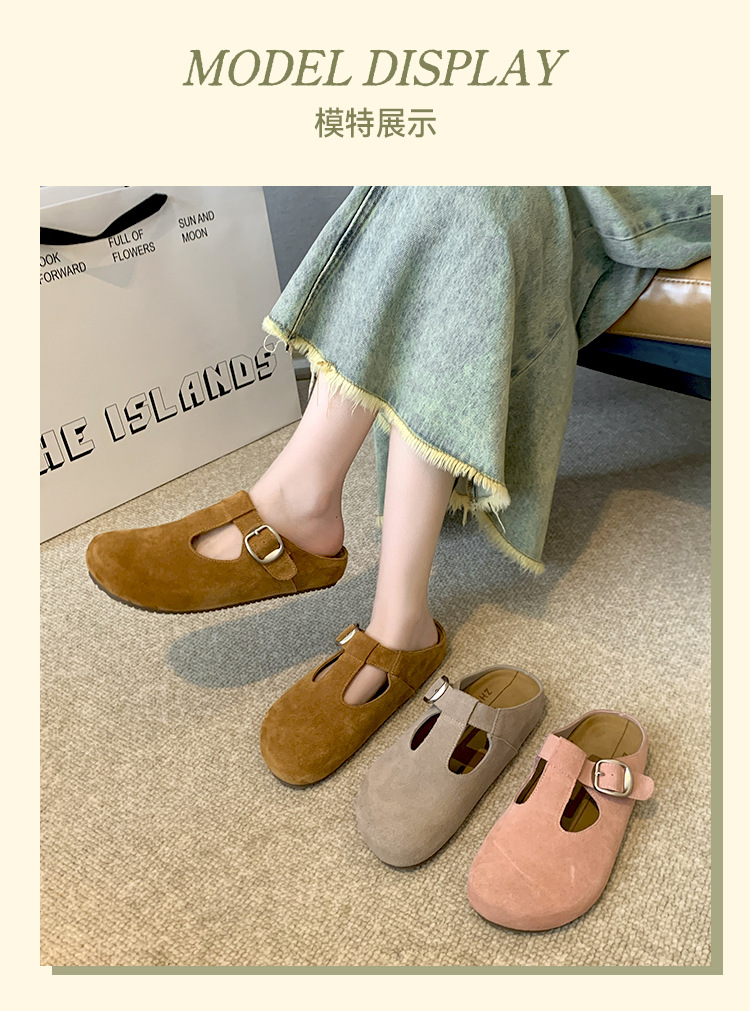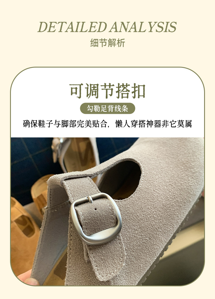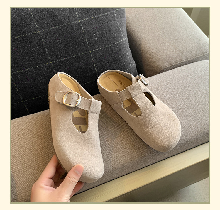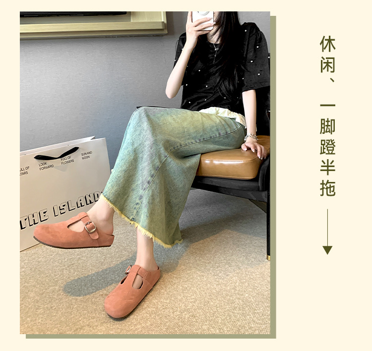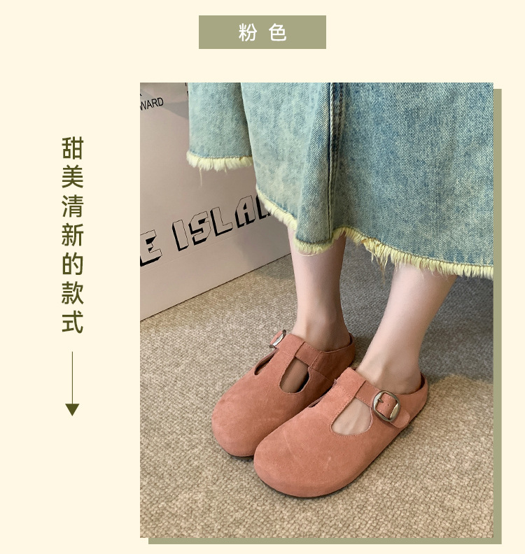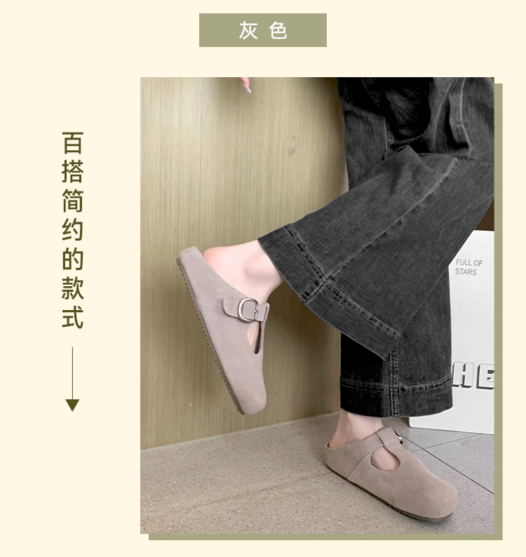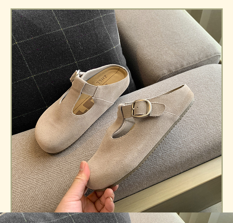 2025新款勃肯拖鞋!复古T字扣包头半拖加肥加宽大码女鞋!
