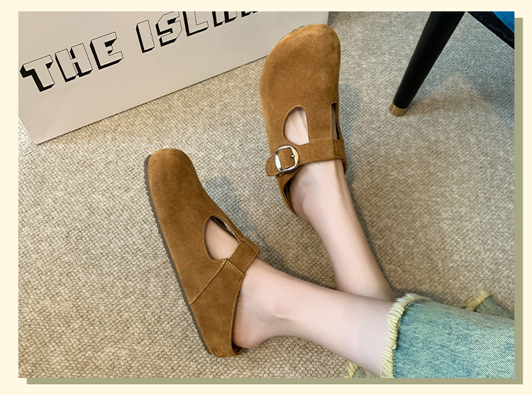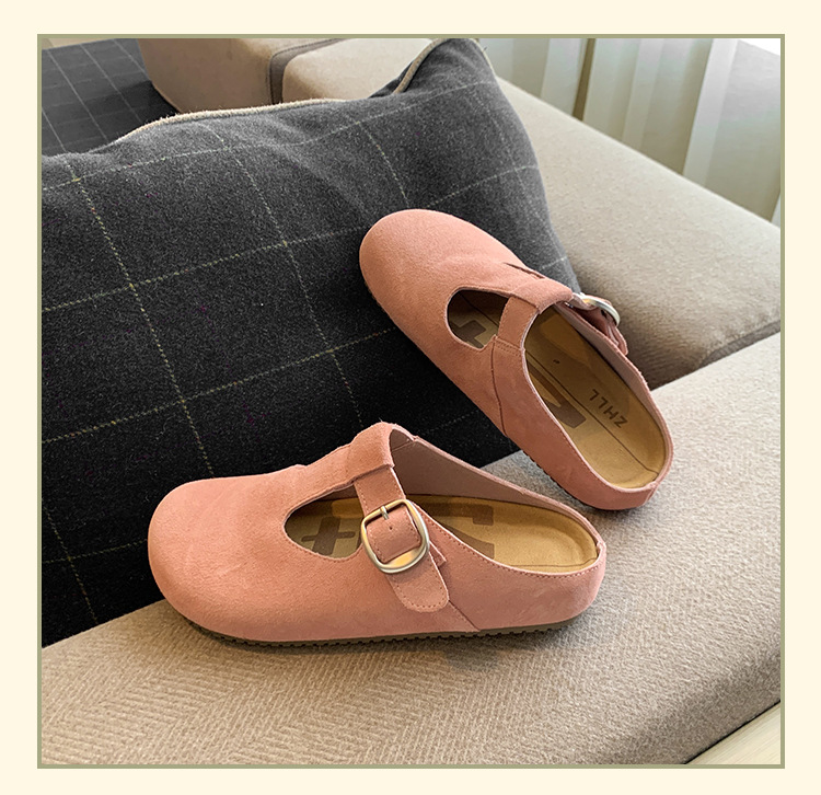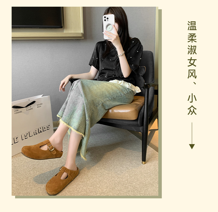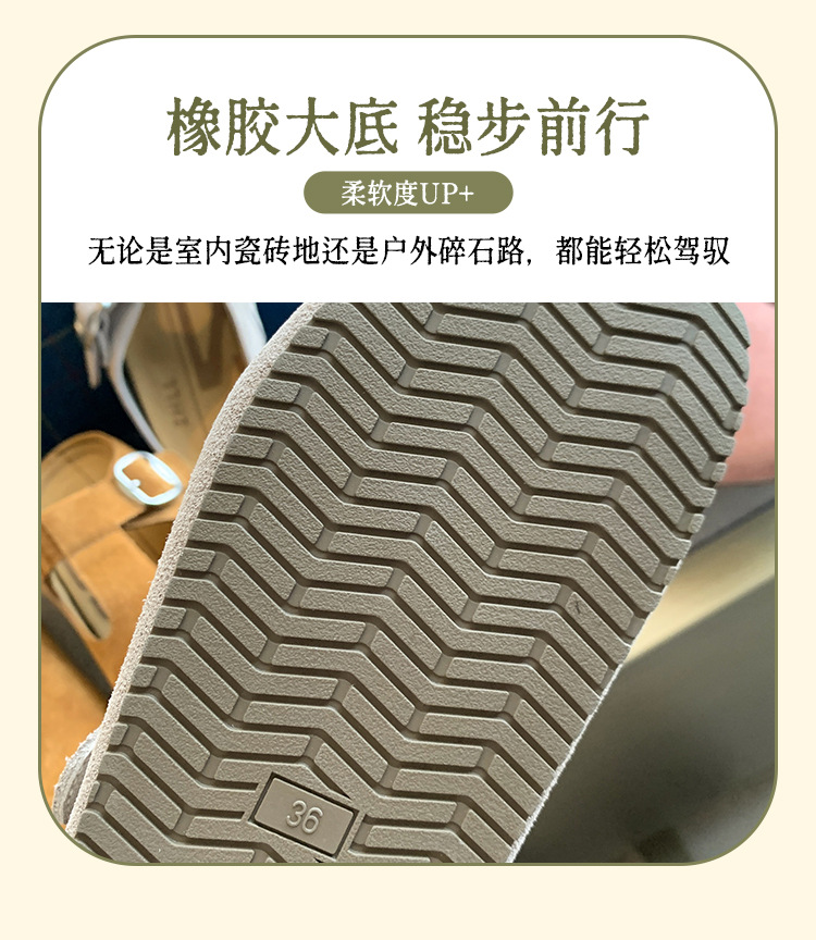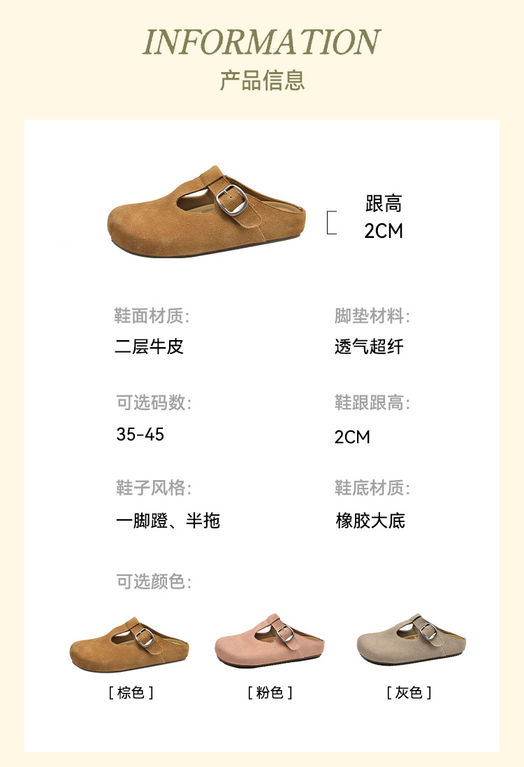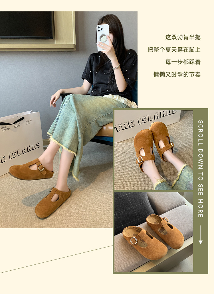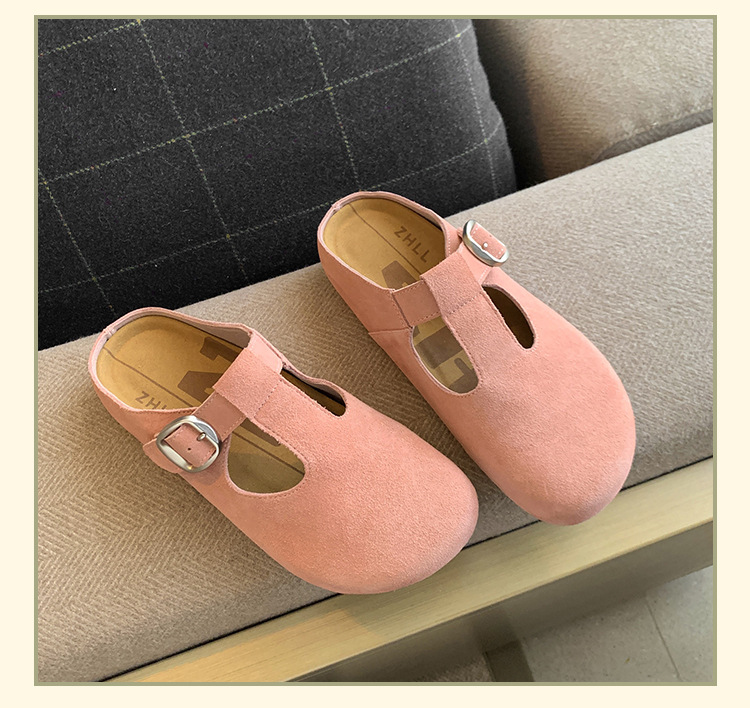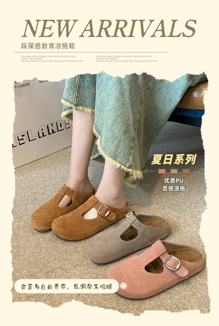2025新款勃肯拖鞋!复古T字扣包头半拖加肥加宽大码女鞋!