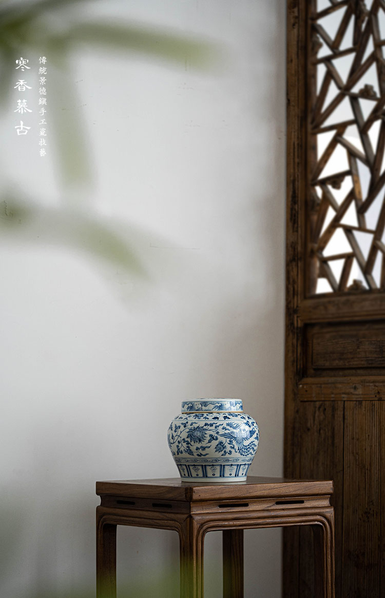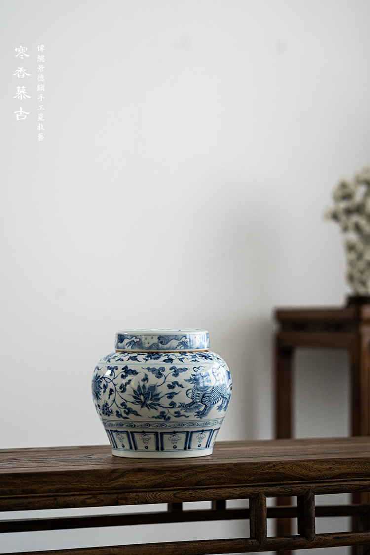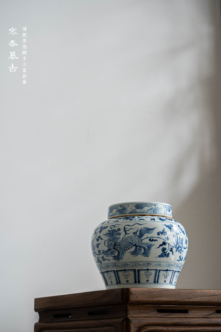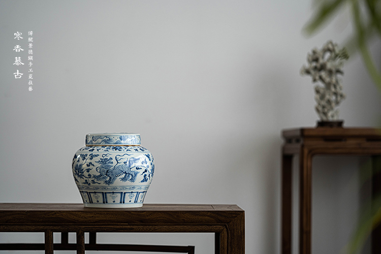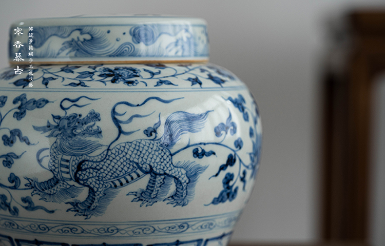 寒香慕古元青花麒麟追凤茶叶罐(缺货)