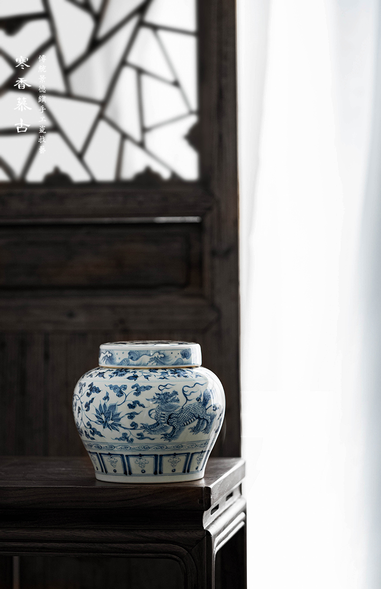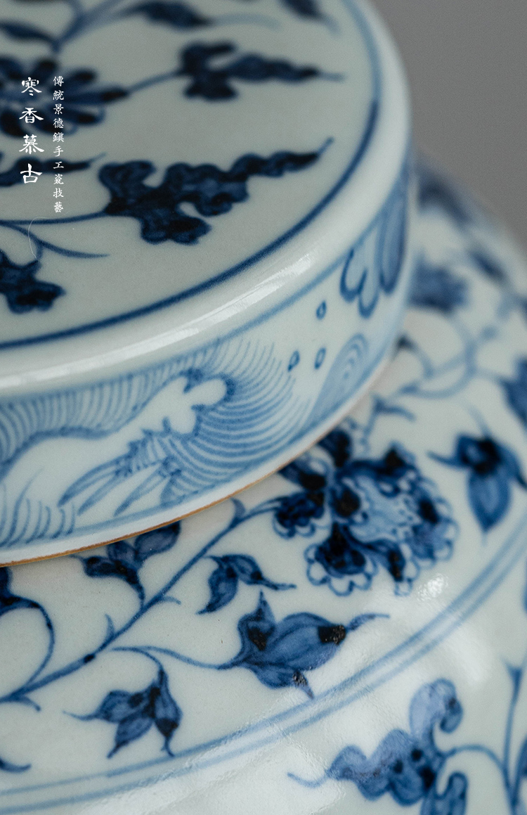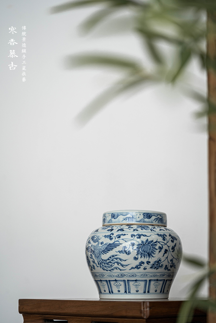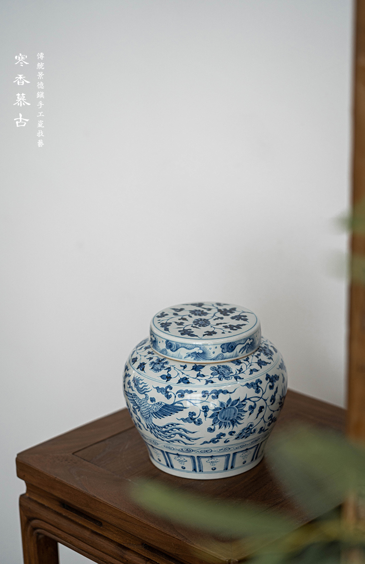 寒香慕古元青花麒麟追凤茶叶罐(缺货)