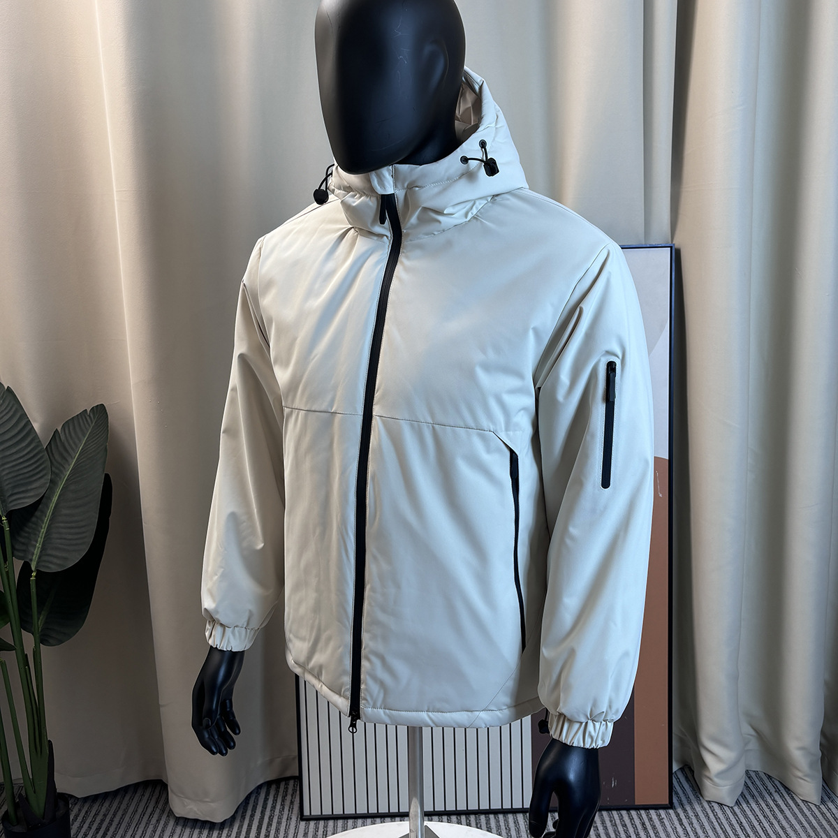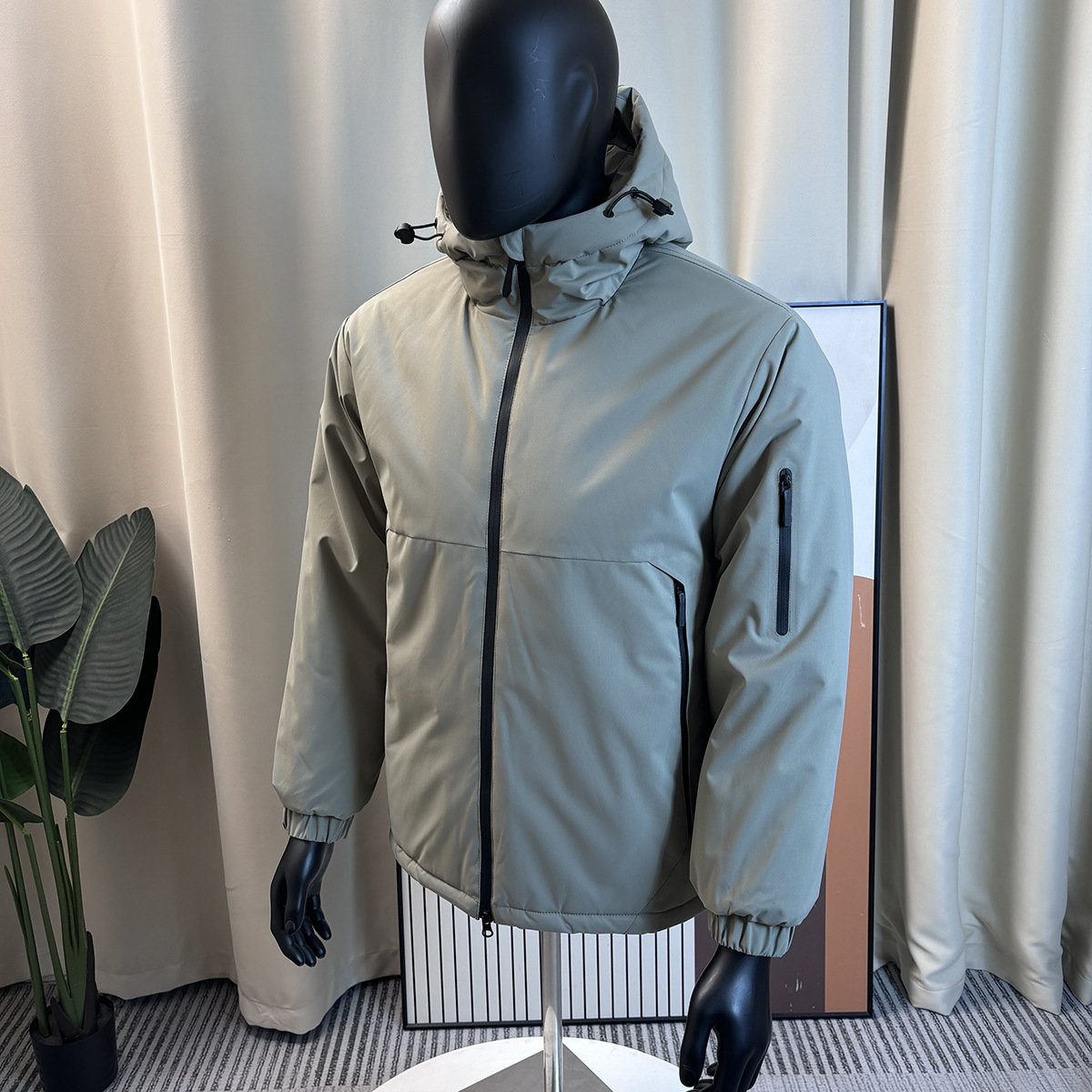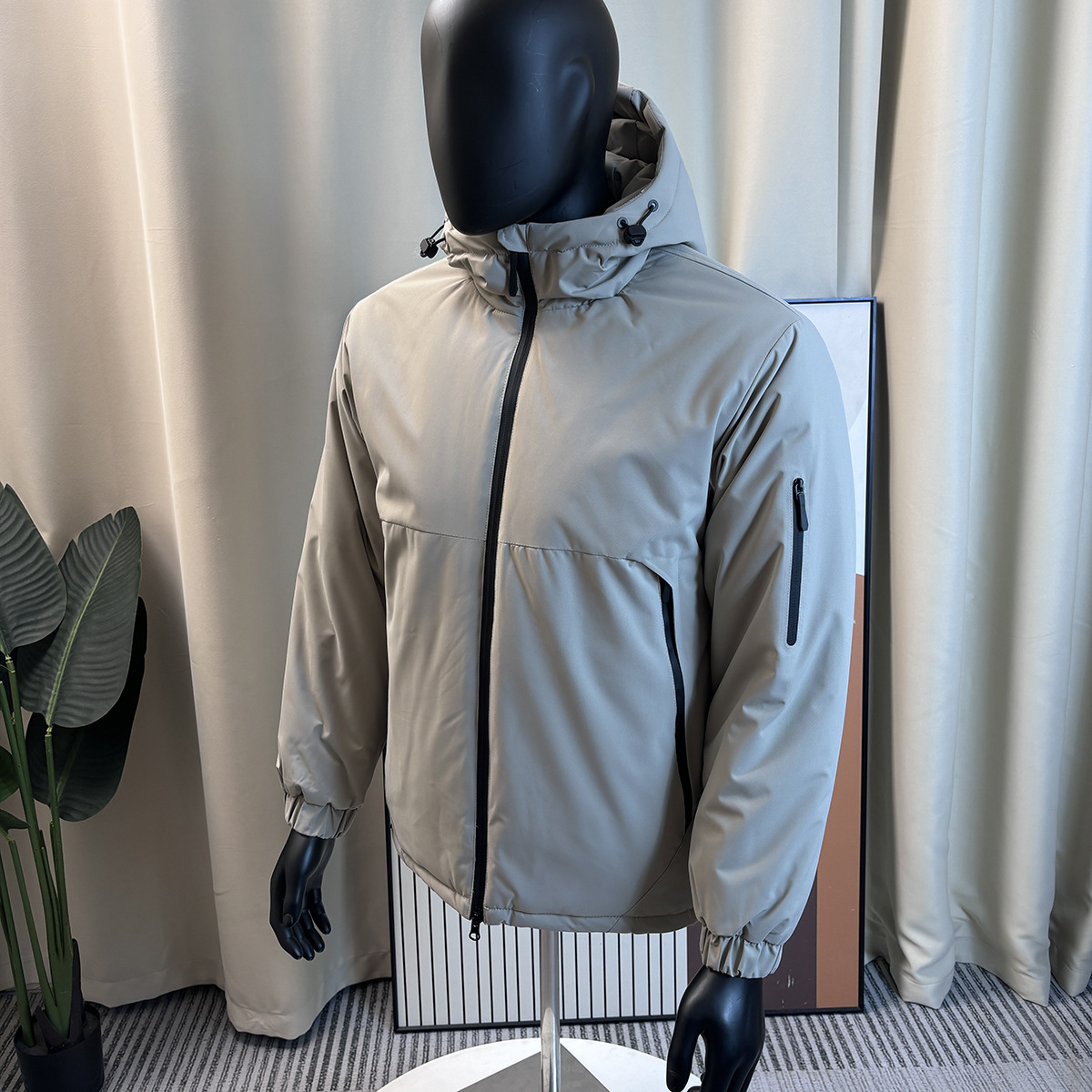 手插口袋,括号剪裁设计 ,无痕压胶边,外衣的防水层,采用仿丝棉,多层纤维结构 矩形压线工艺,填充均匀 机洗不坨绒,蓬松轻便和羽绒服一样,内里小太阳石墨烯自发热,蓄热黑科技,还配有温感变色,15秒可测出温度,有细节图