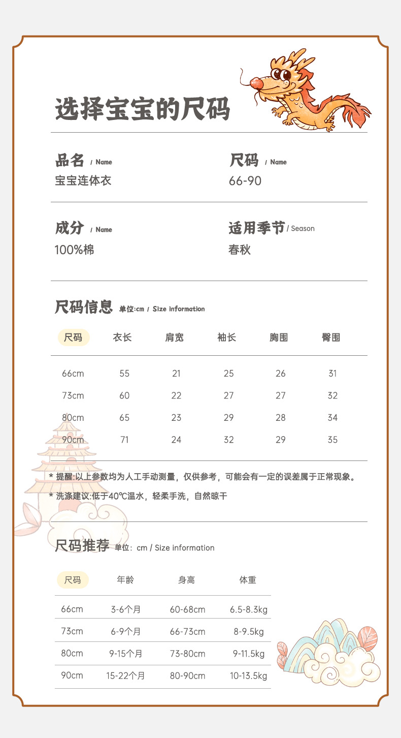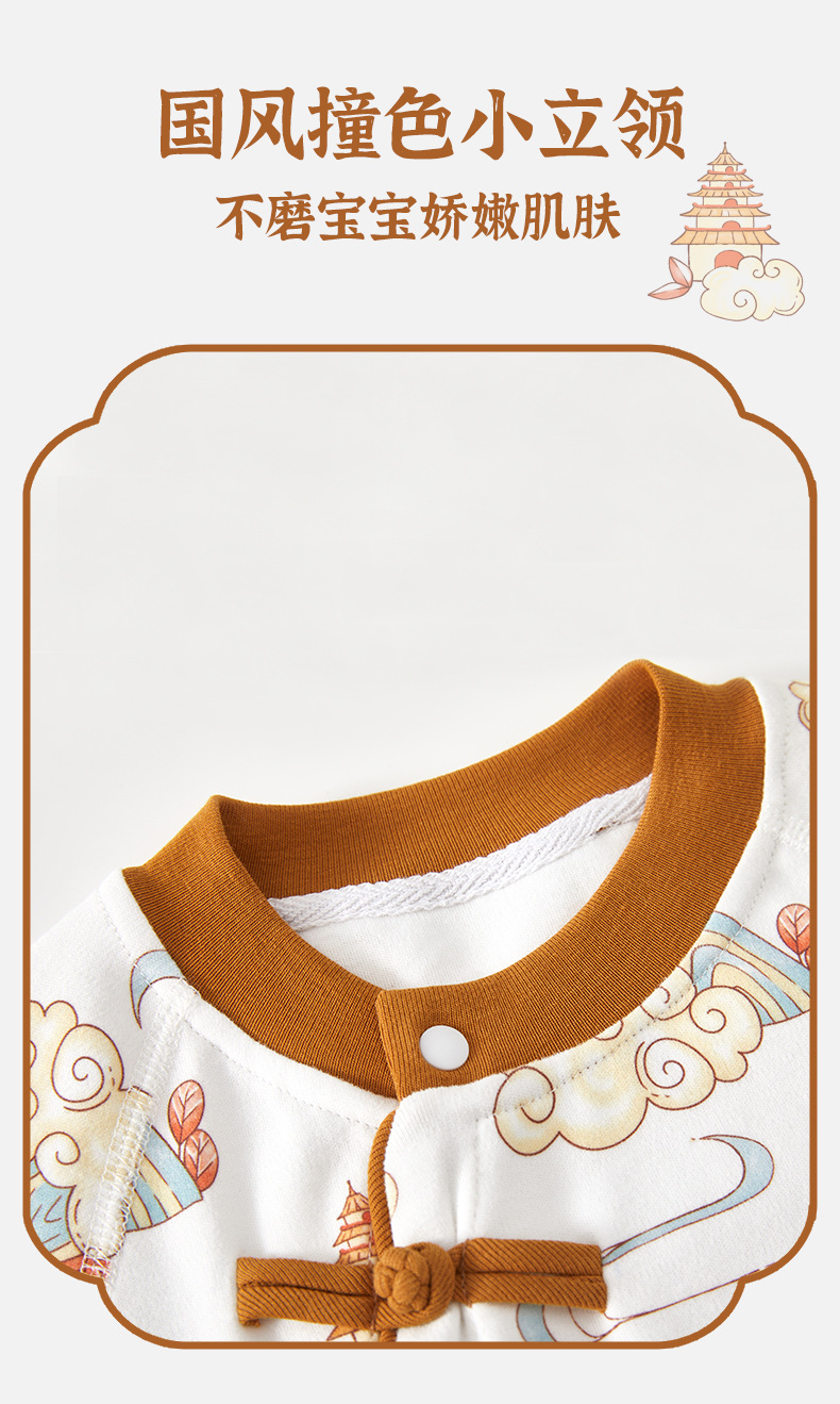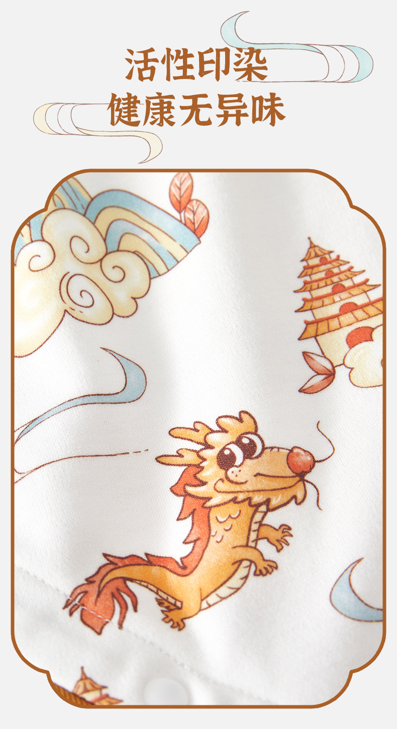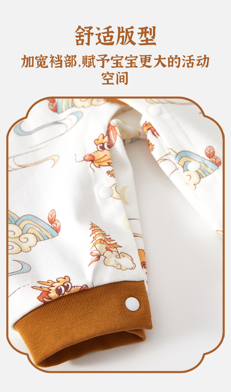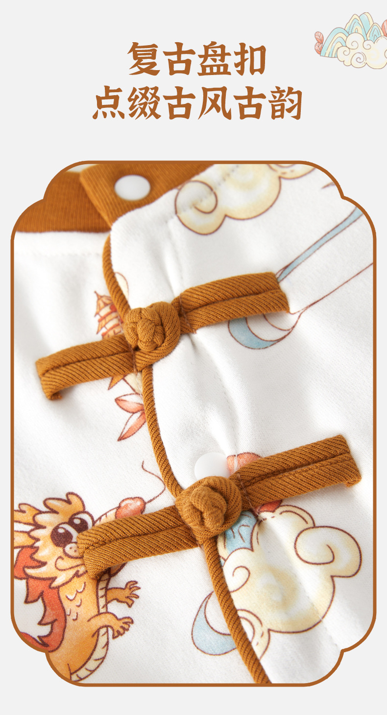 【国潮“飞龙乘云”连体衣】婴儿连体衣纯棉a类宝宝满月四季秋中国风龙款外穿百日宴婴儿衣服