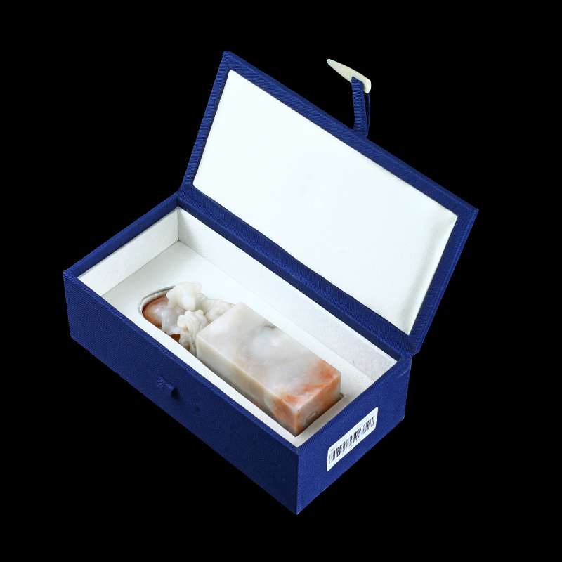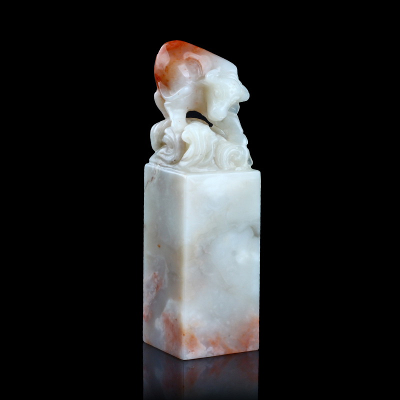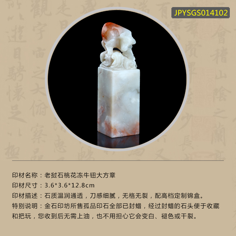 孤品014102:老挝石桃花冻牛钮大方章-3.6*3.6*12.8cm