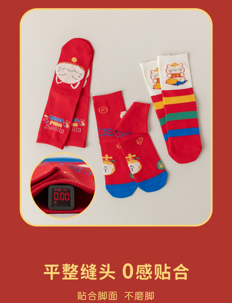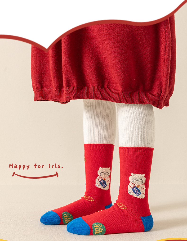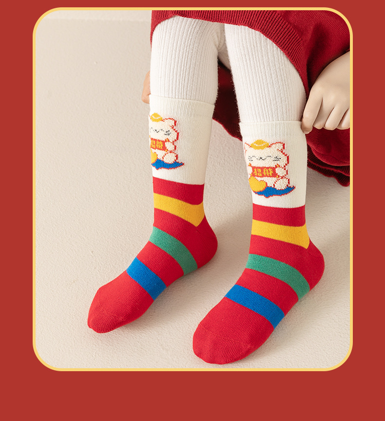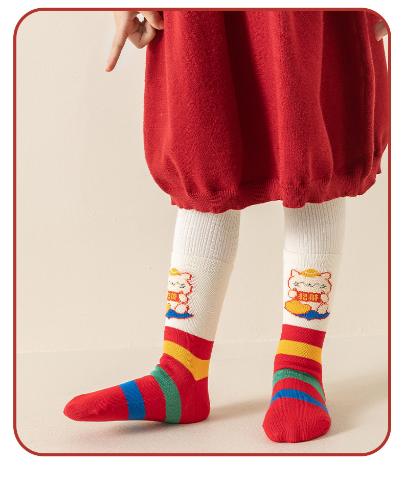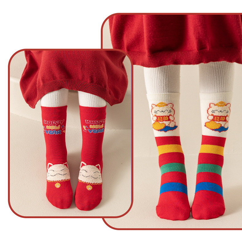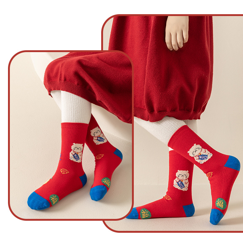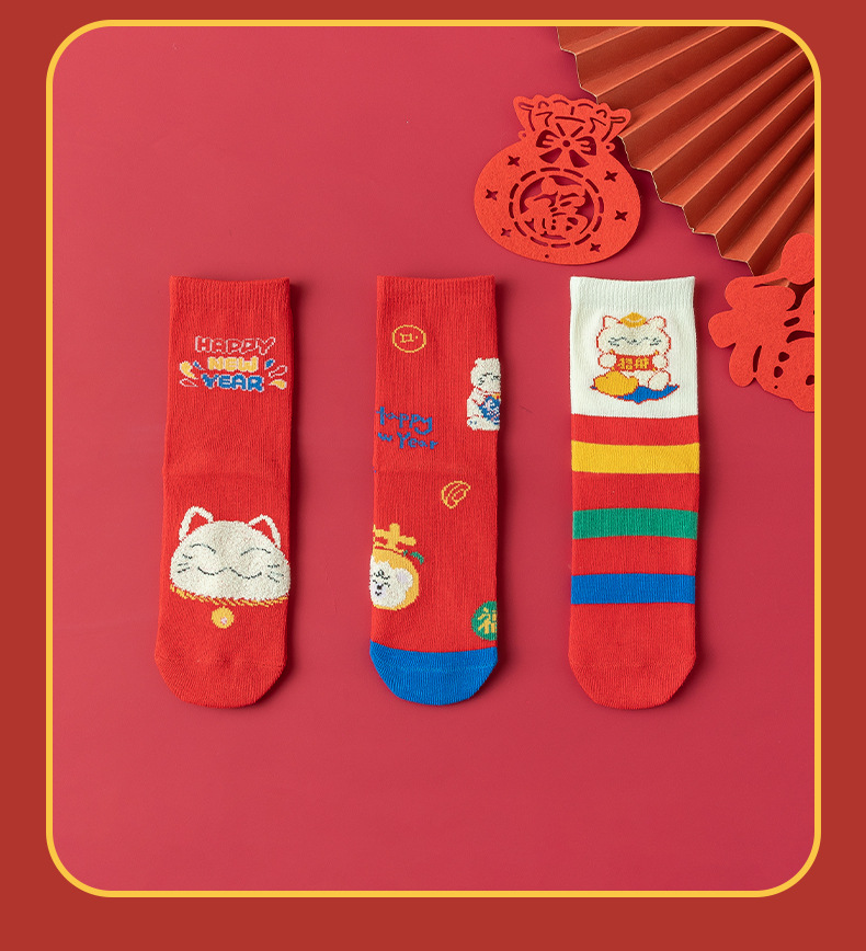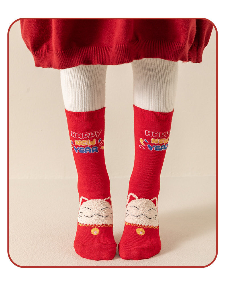 【3双装❗️马年招财猫咪儿童袜】新年气息满满,孩子们的心头好!春节可爱秋冬卡通本命年袜子年货礼盒