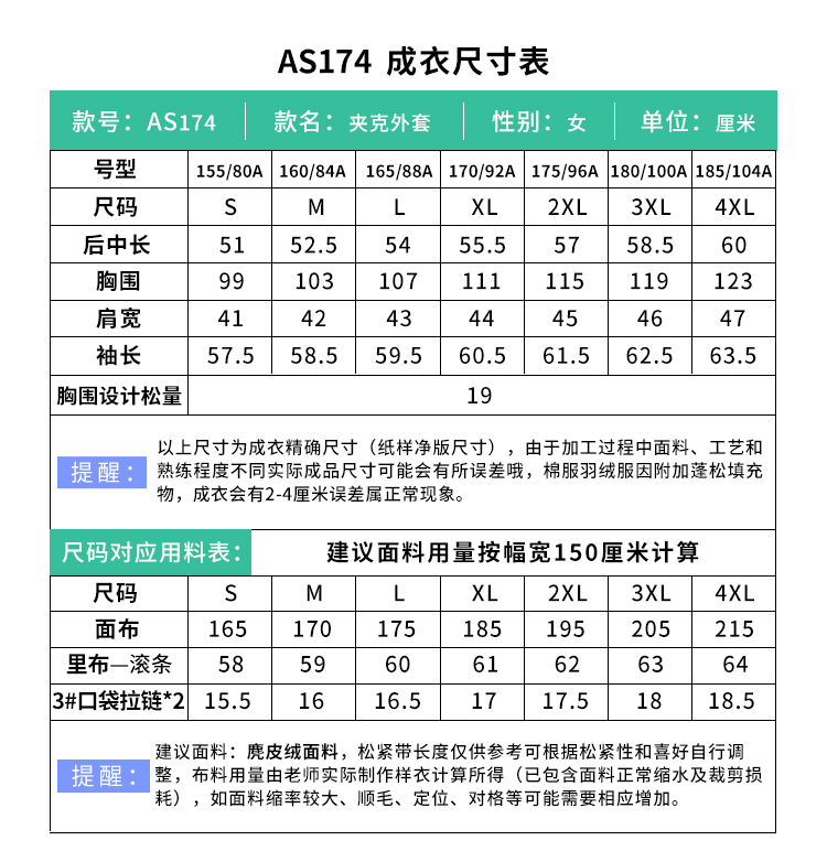 裁缝学苑AS174 短款麂皮绒机车夹克纸样外套女装上衣服装打板