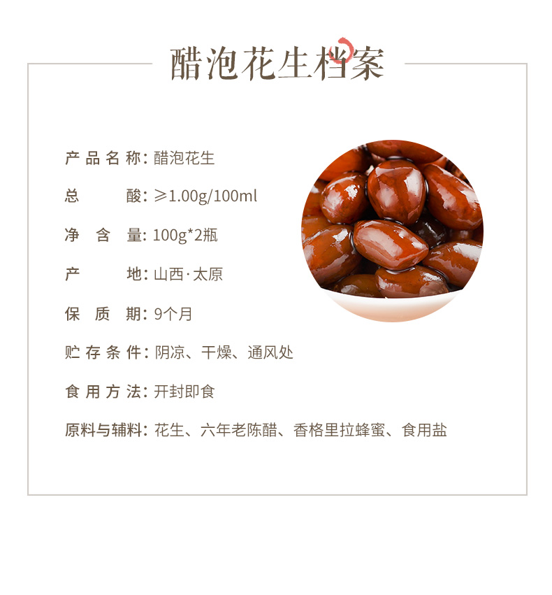 【美和居-始于1368】醋泡花生即食零食6年老陈醋蜂蜜泡制100gx2瓶