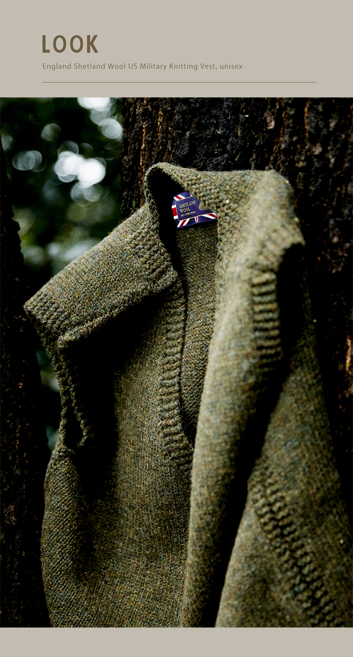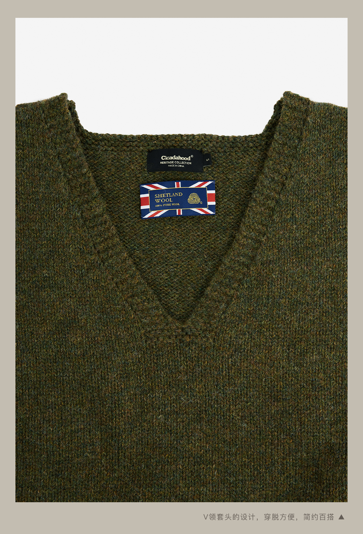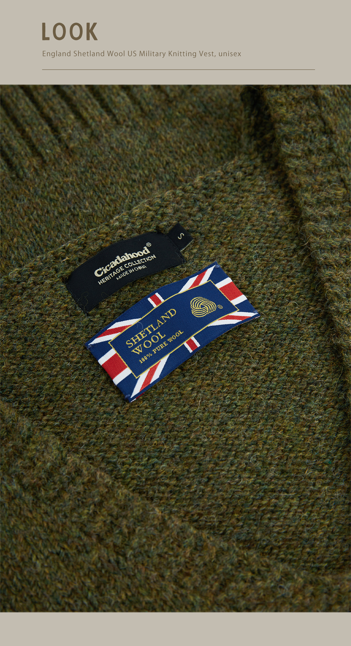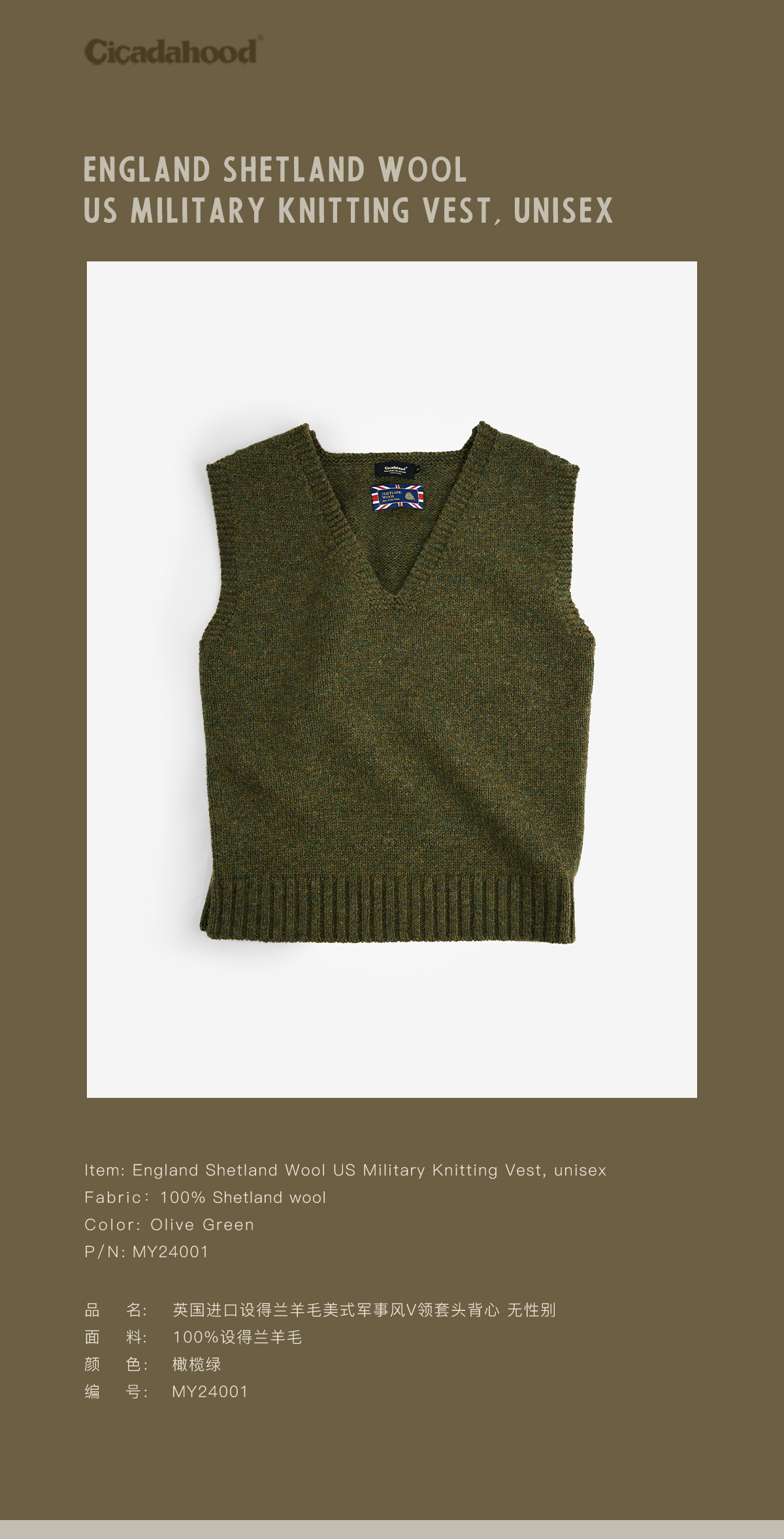 Cicadahood英国进口设得兰羊毛美式军事风V领套头背心 无性别