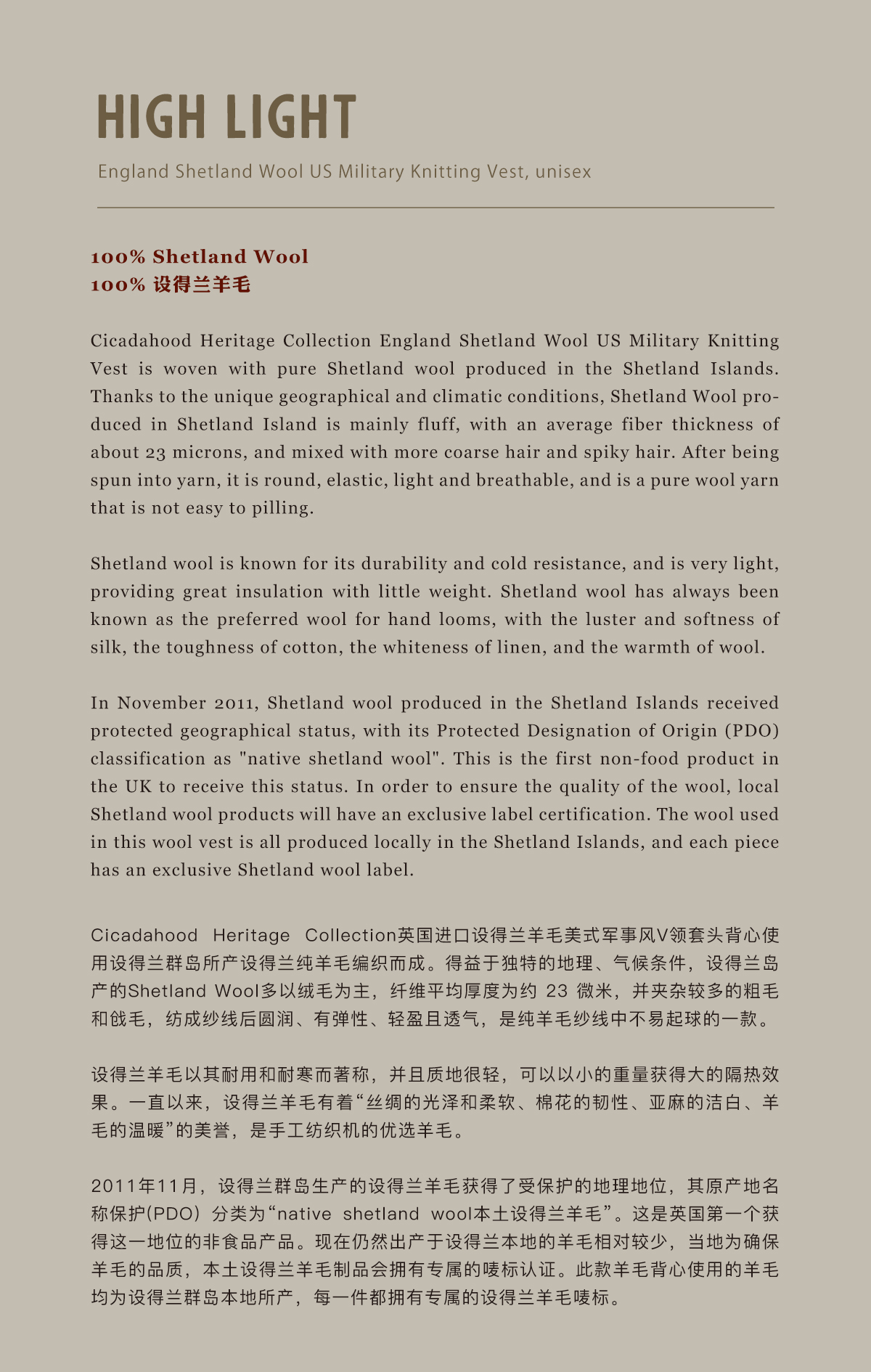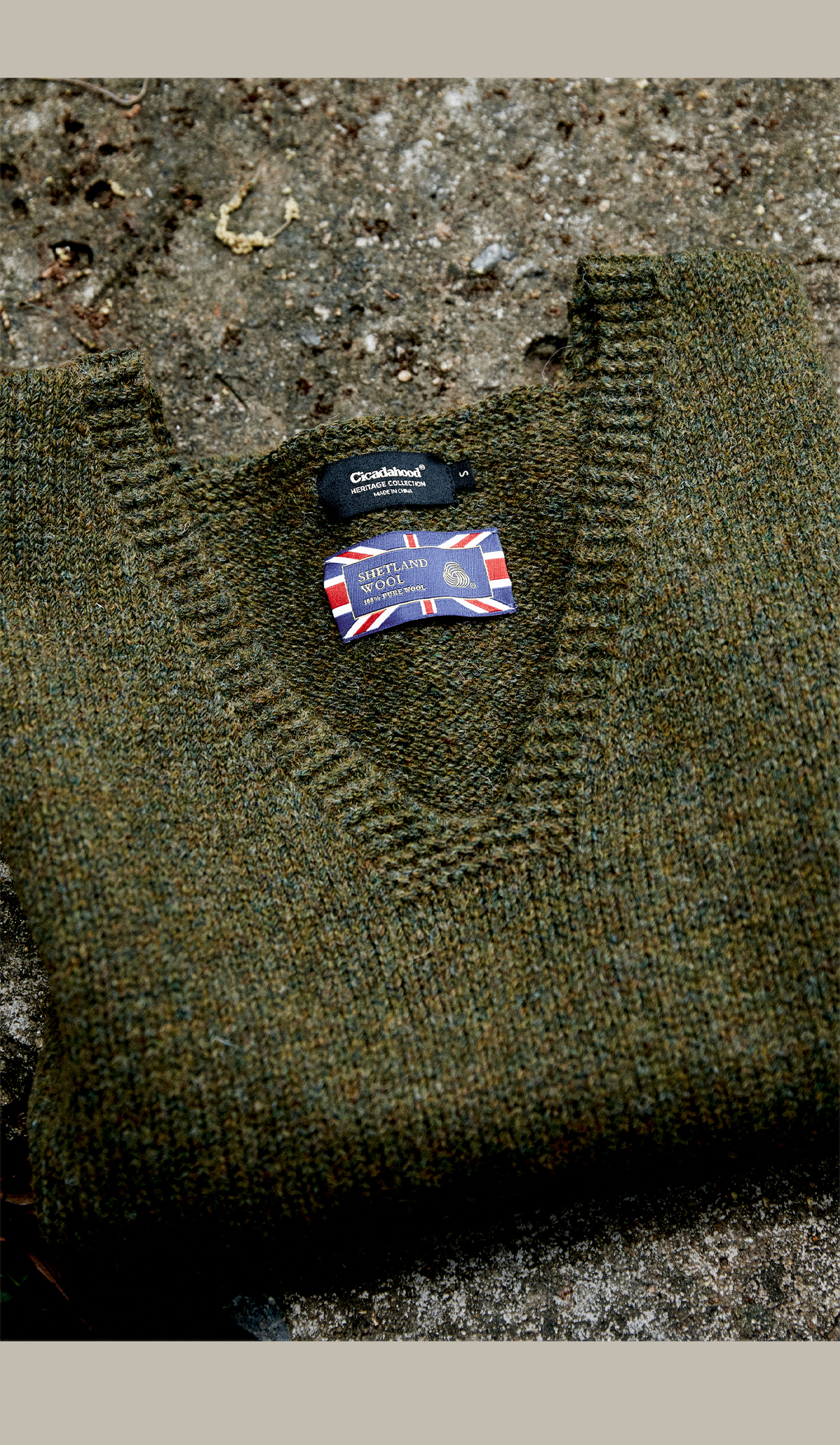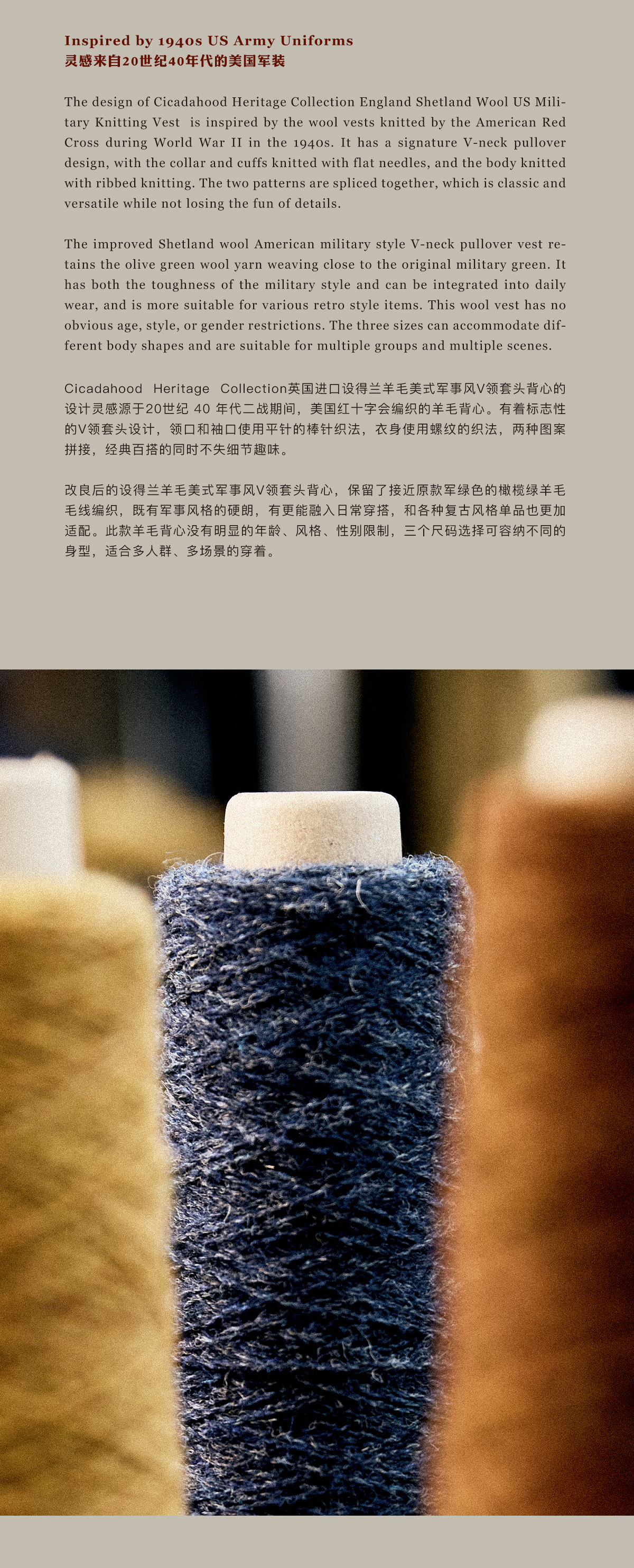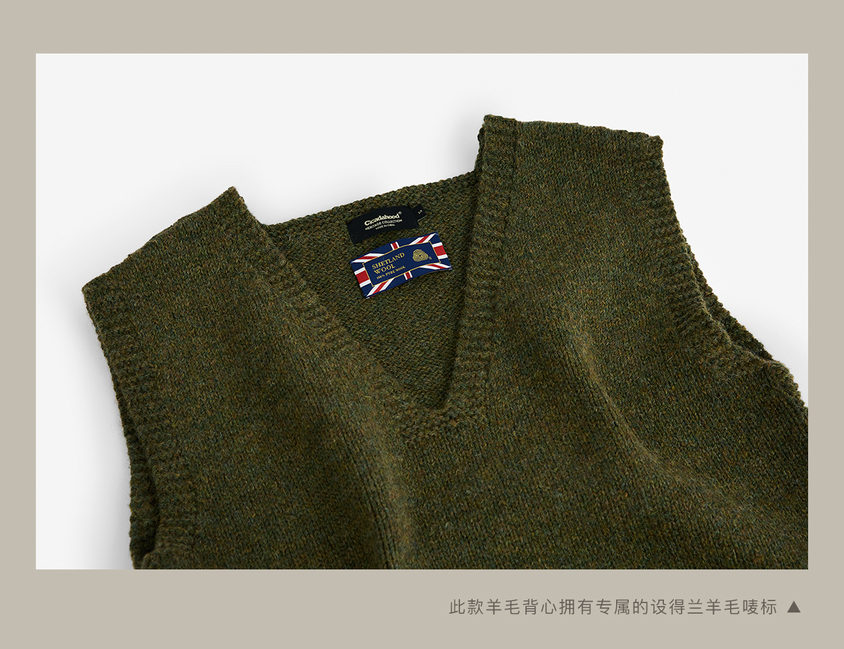 Cicadahood英国进口设得兰羊毛美式军事风V领套头背心 无性别