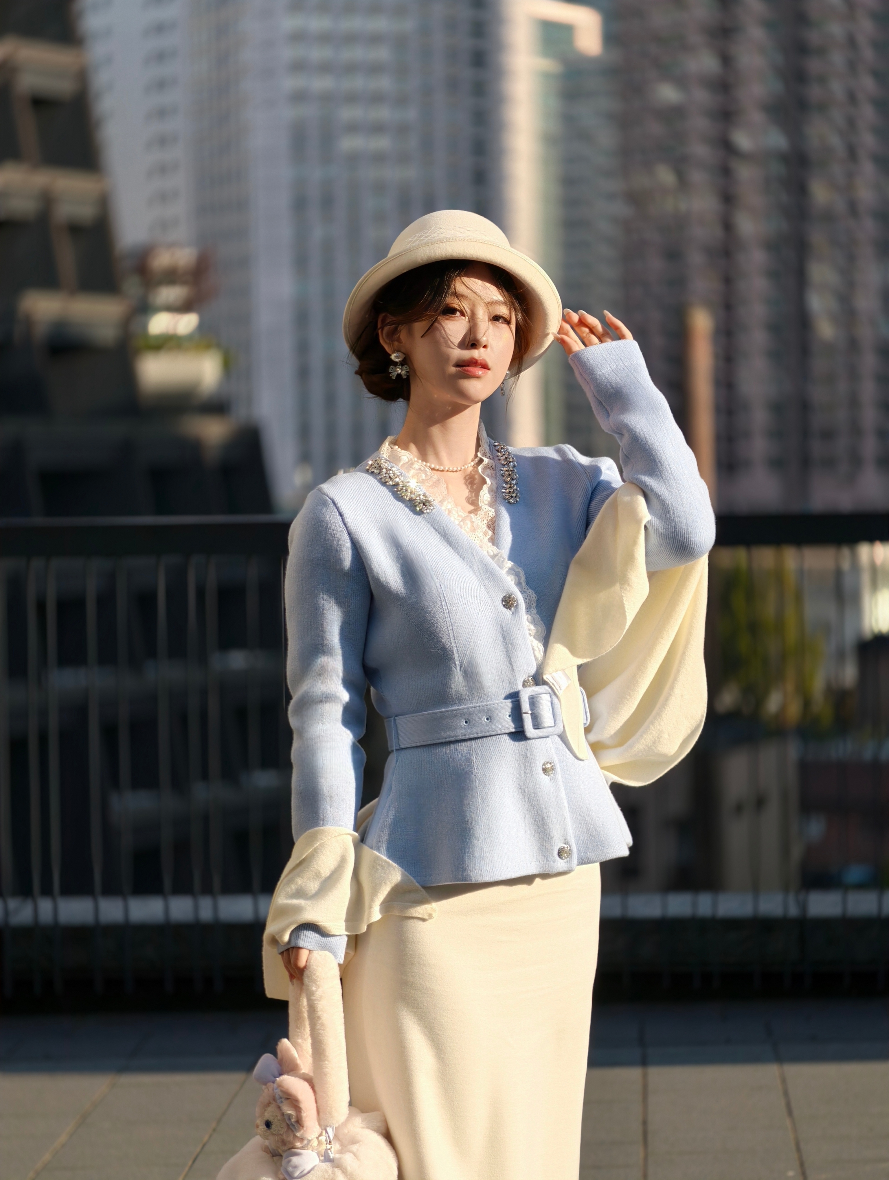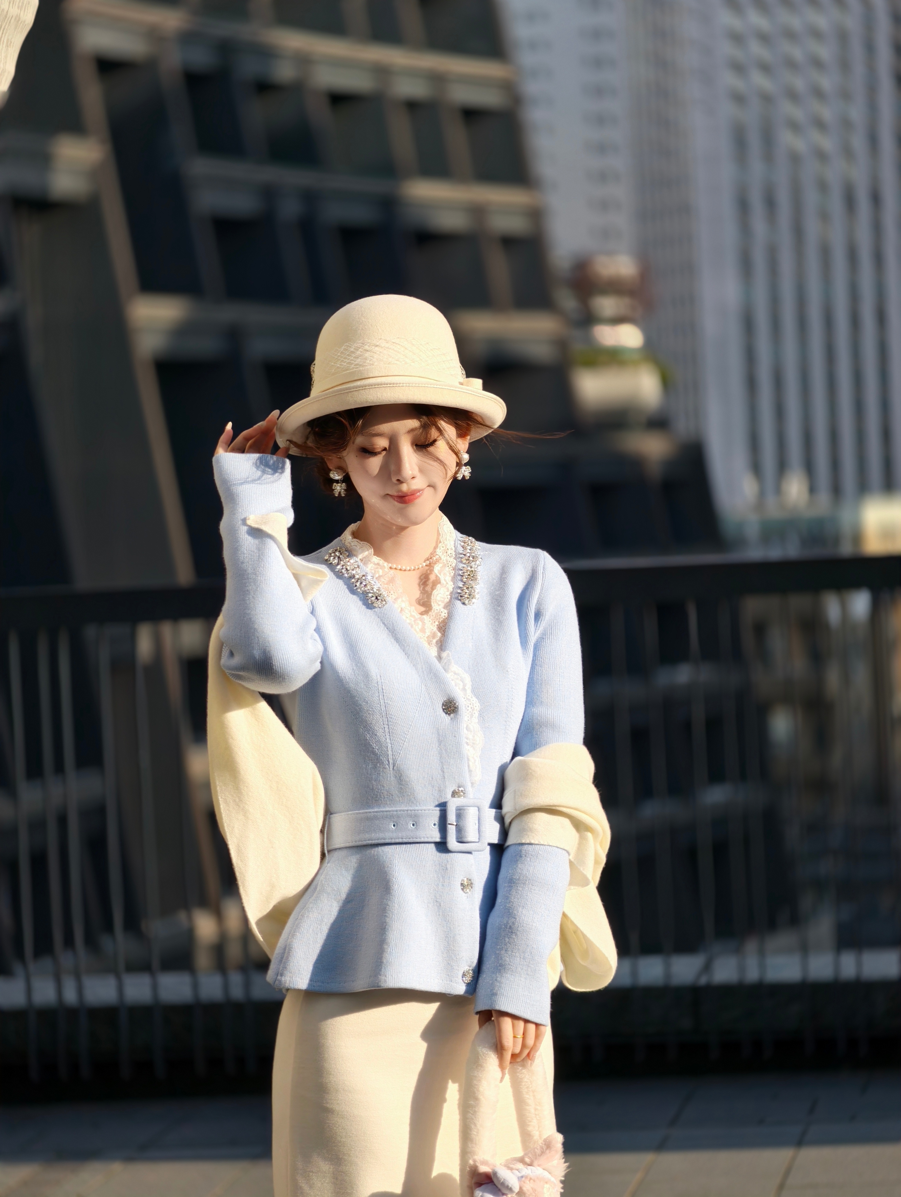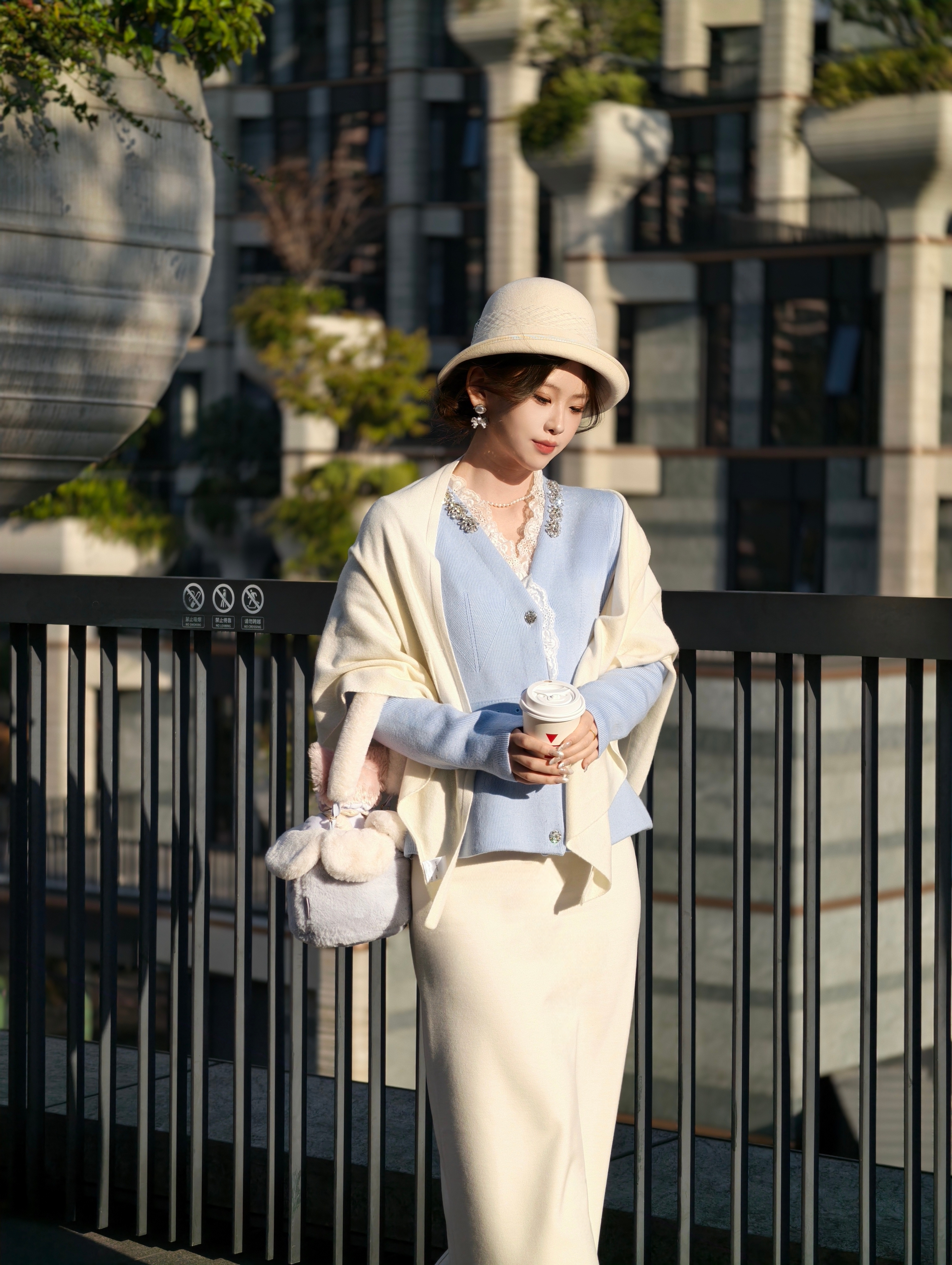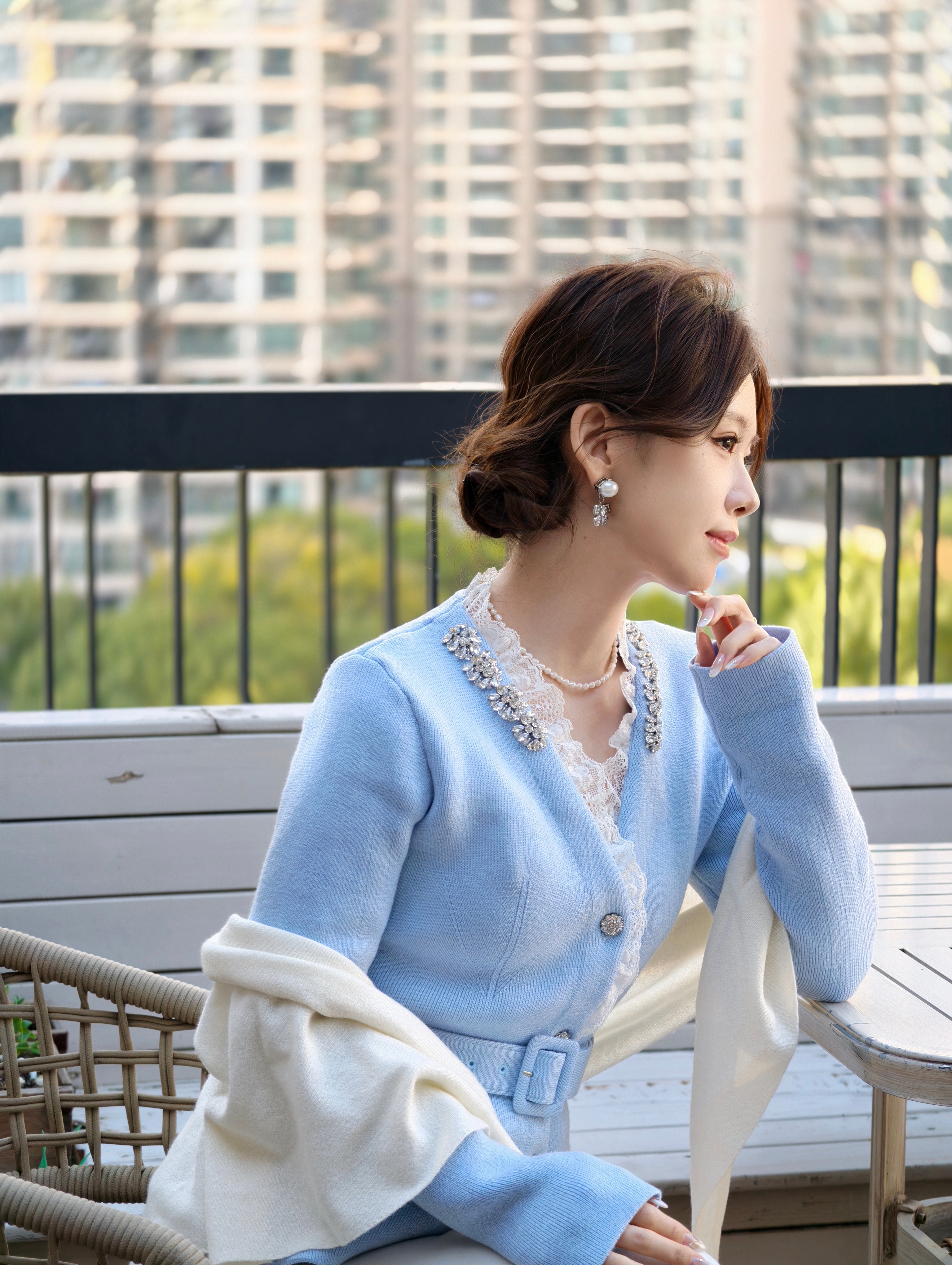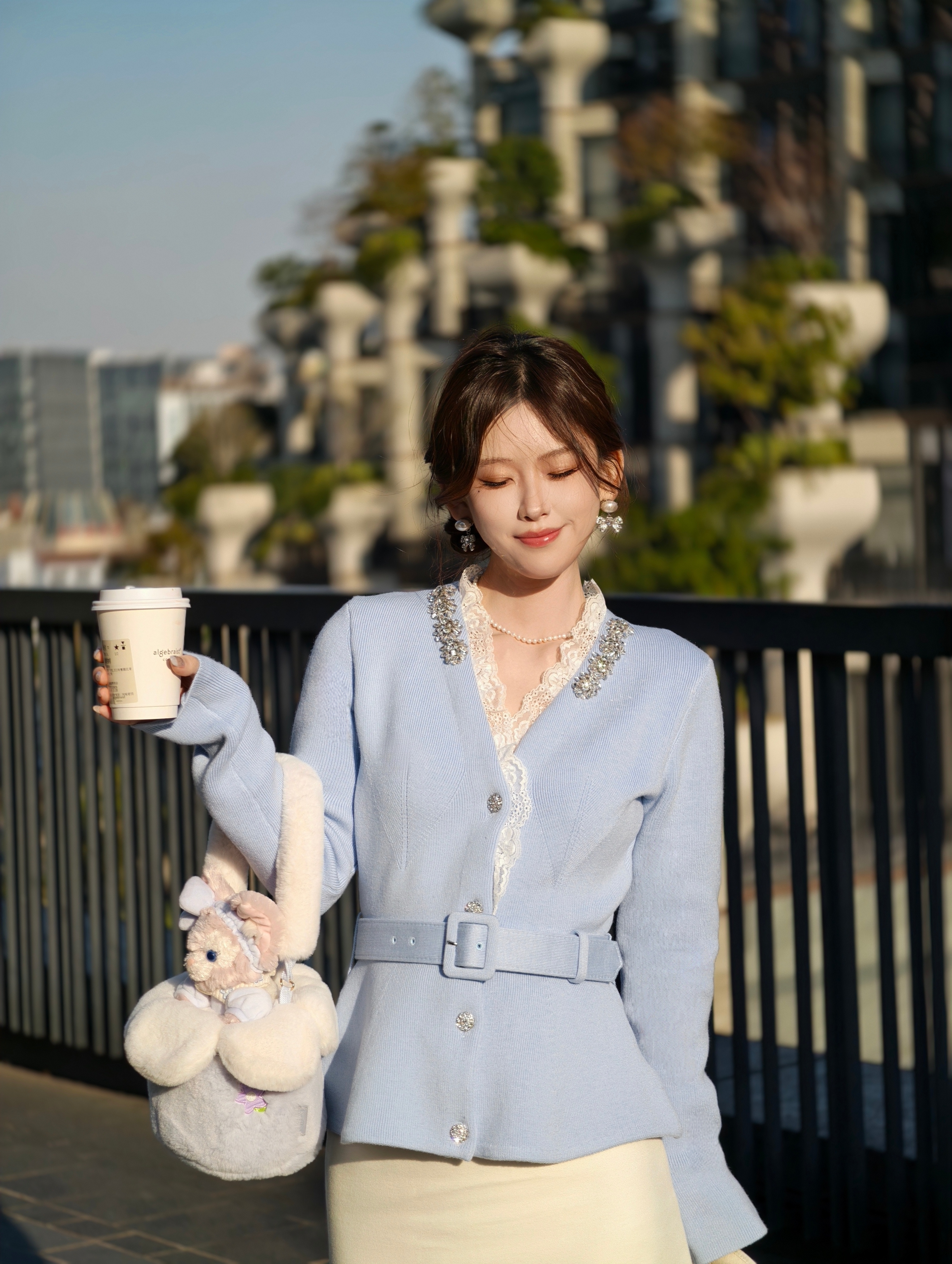 ✨ 拼接蕾丝:选用进口软蕾丝,云朵的柔软触感,亲肤柔软,贴身完全不扎!白色蕾丝的存在,也让蓝色毛衣更加日常,而且V领也不用担心过于暴露哦~~