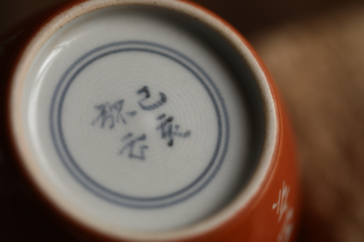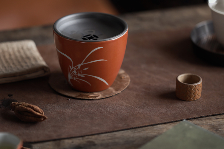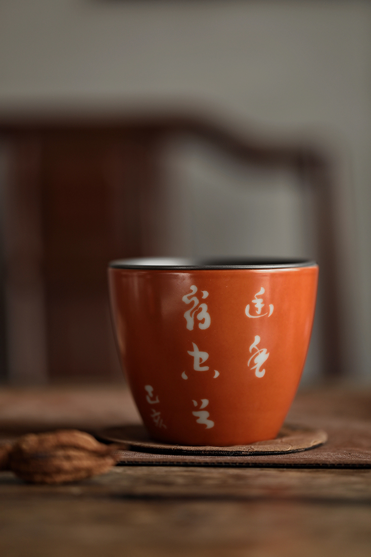 工艺:仿古泥胎、珊瑚红剔花、锡盖