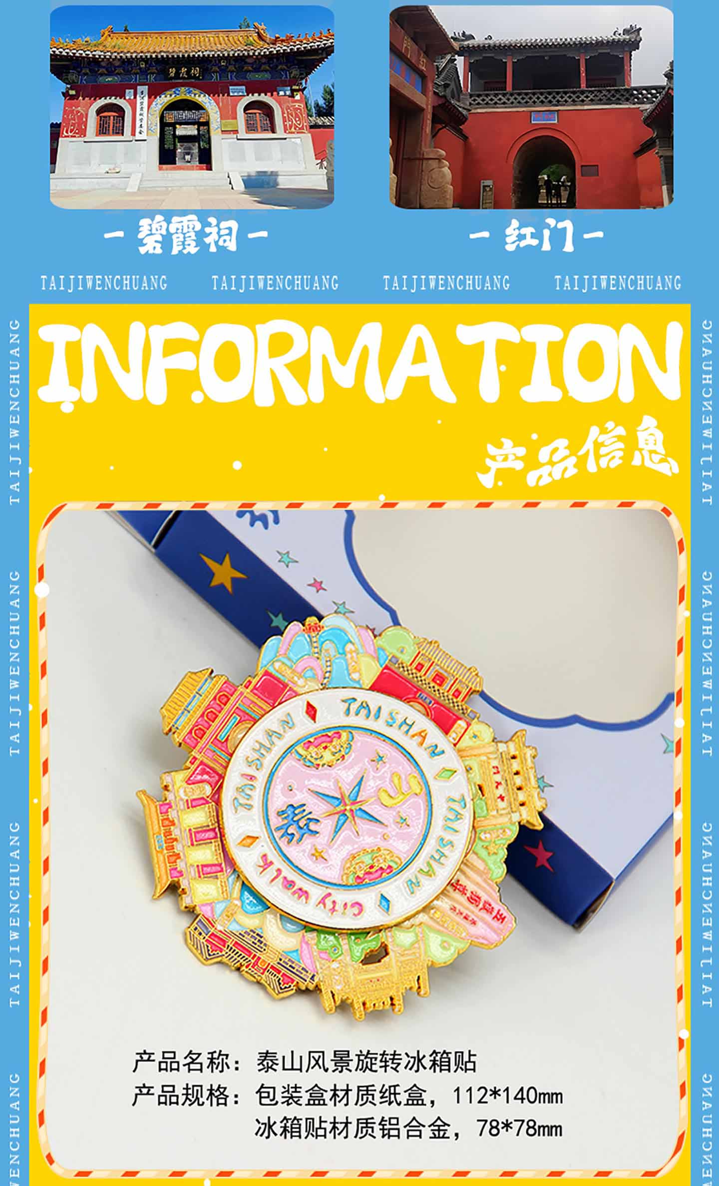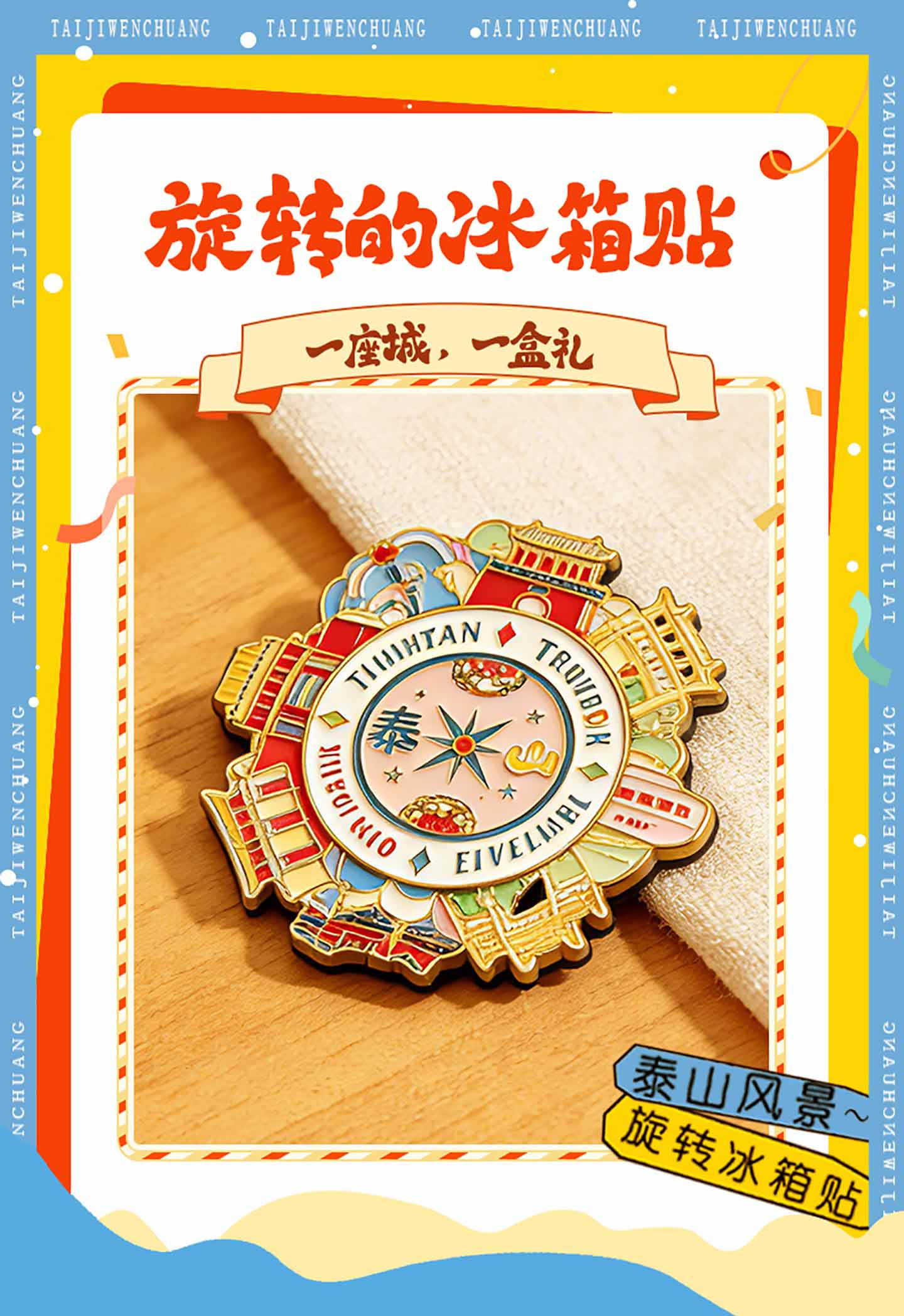 泰山文创冰箱贴Tai集文创泰山风景旋转冰箱贴金属磁吸八方吉祥送朋友礼物景区纪念品