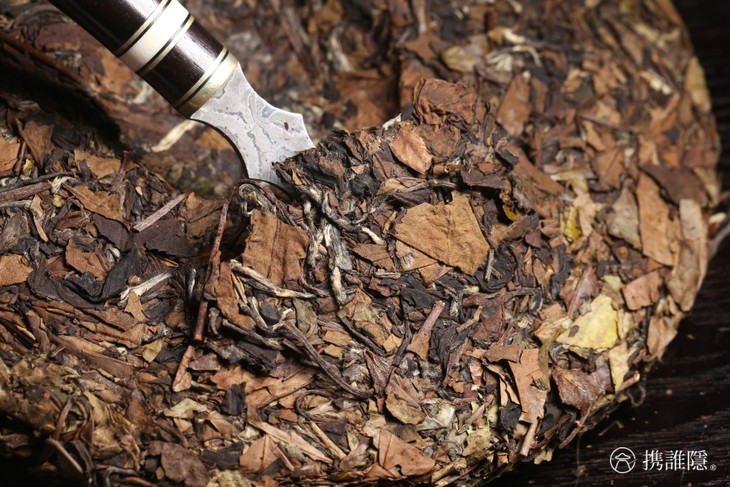 撬下的茶块完整,内外一口料,足见良心品质。