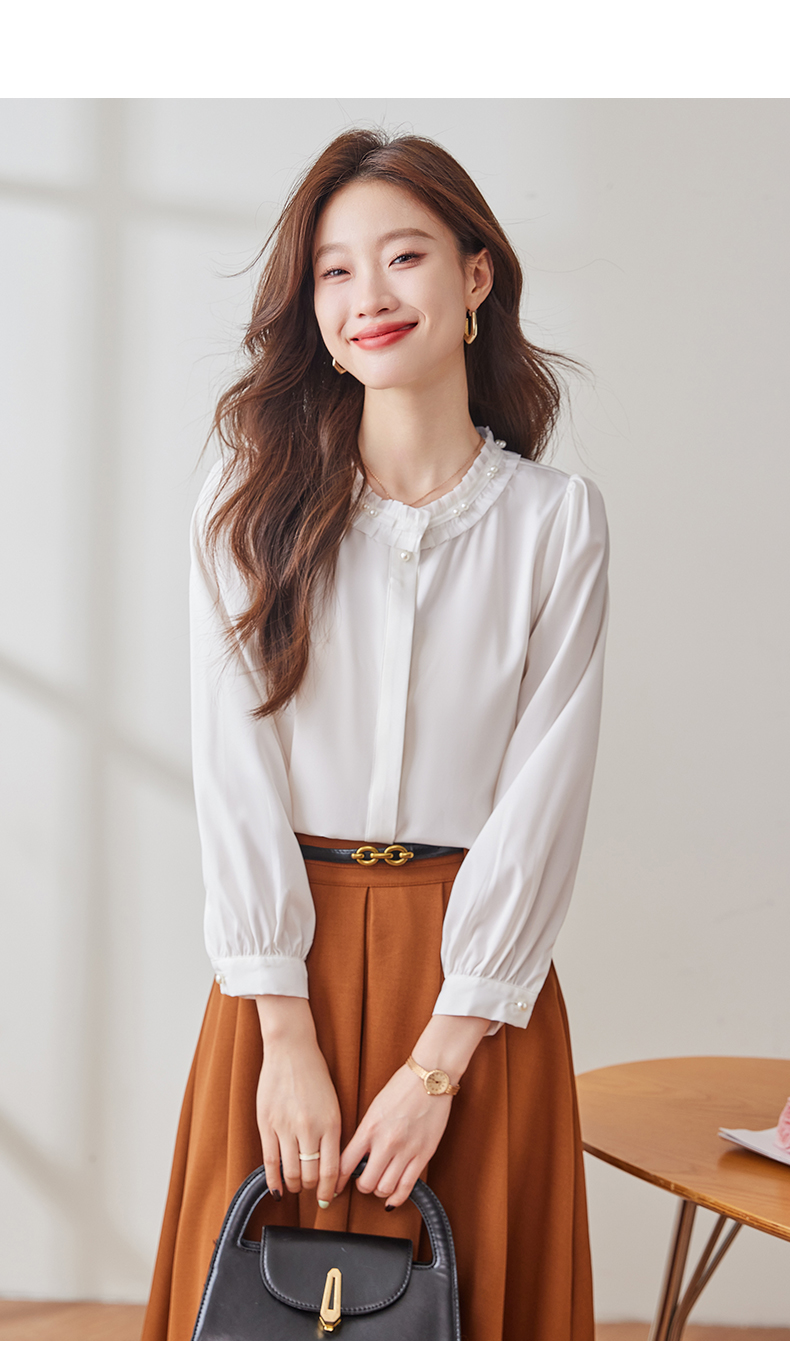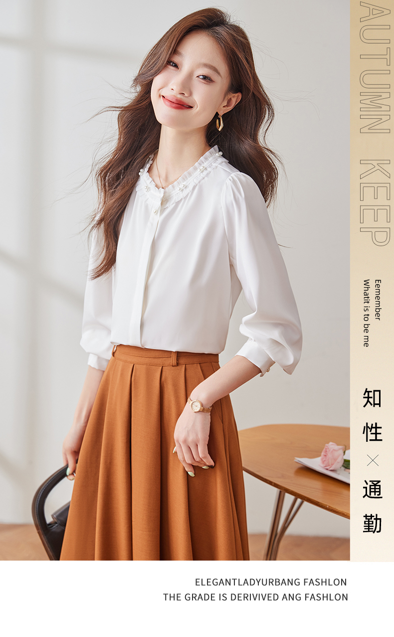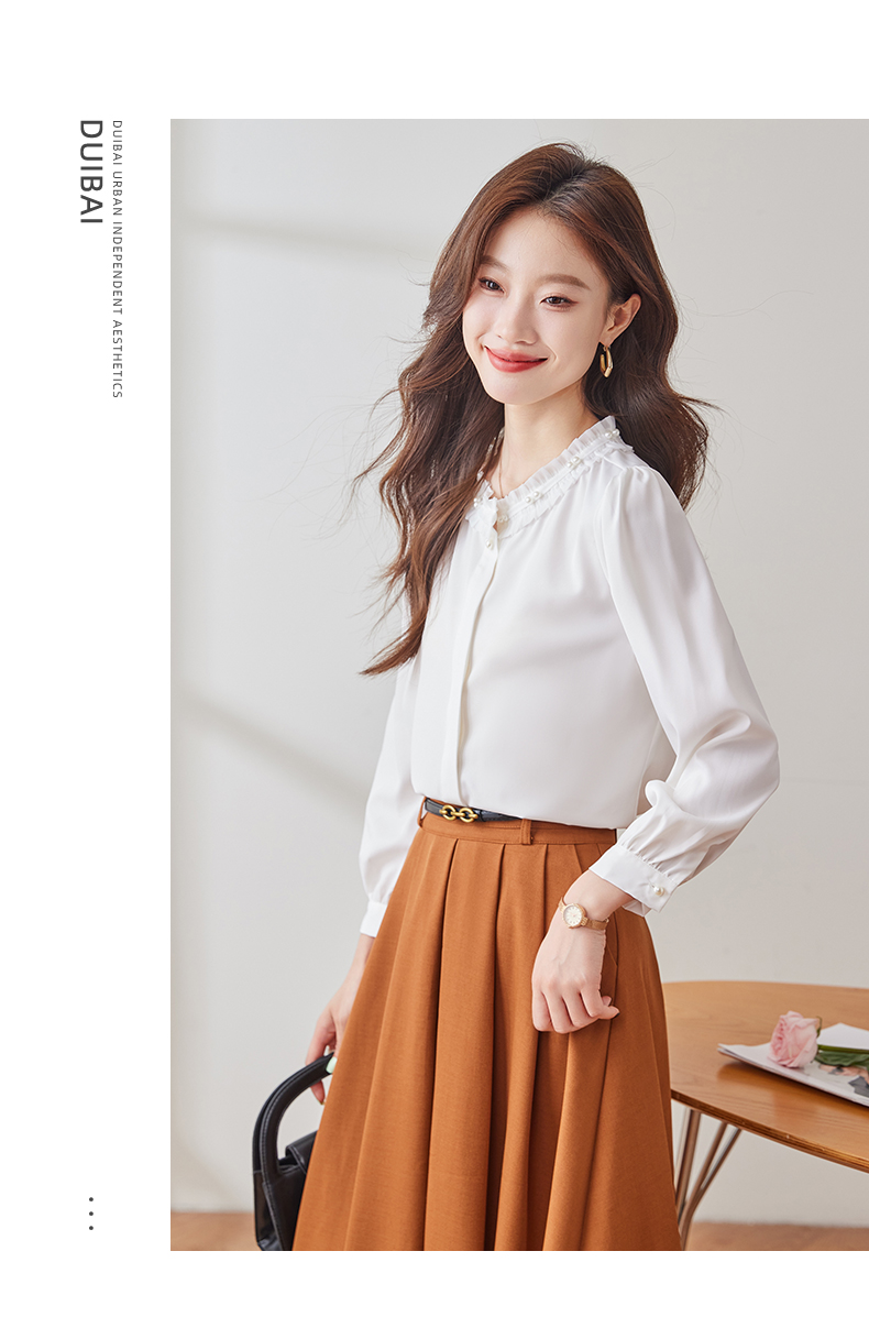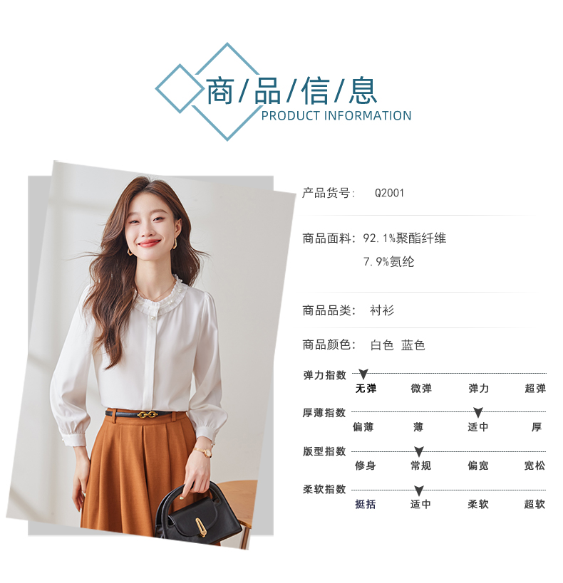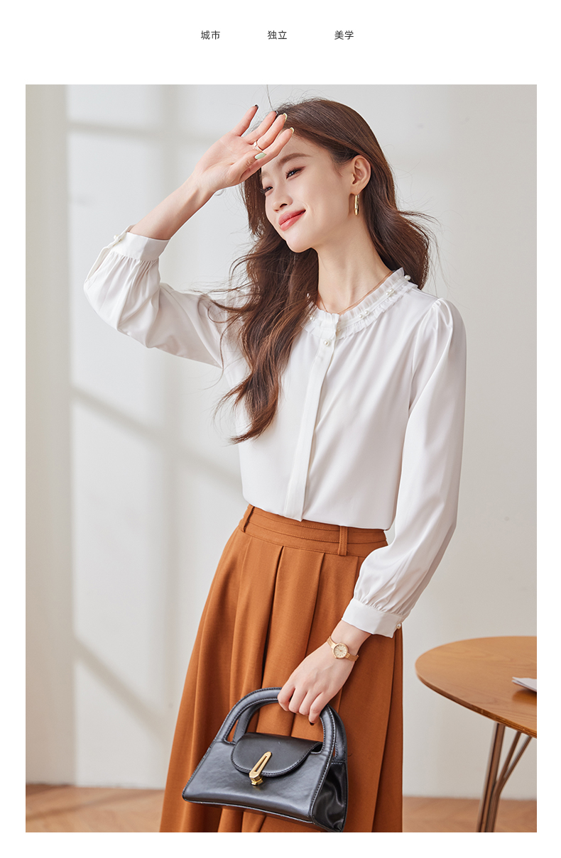Q2001新款长袖衬衫气质白色时尚百搭女士春季小众设计感通勤衬衫