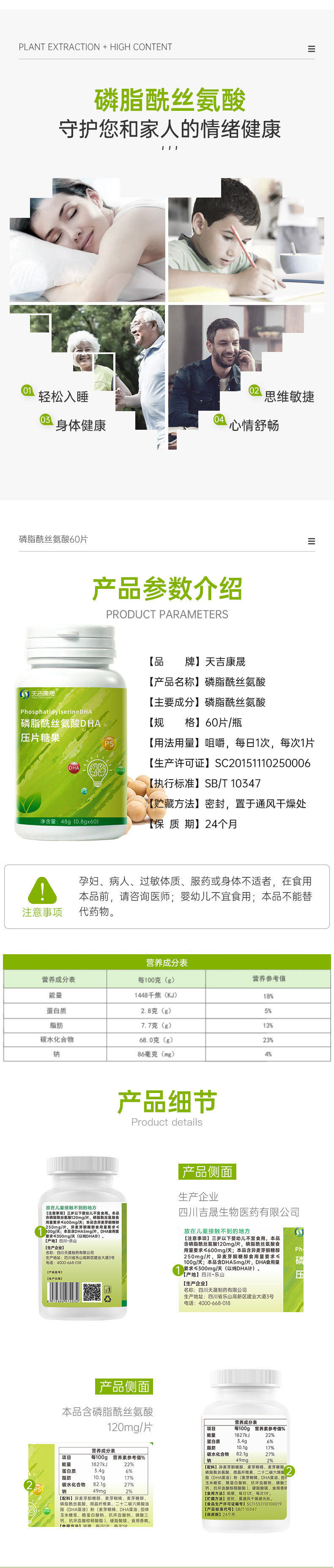 天吉康晟 DHA-磷脂酰丝氨酸 48g(0.8g×60片)