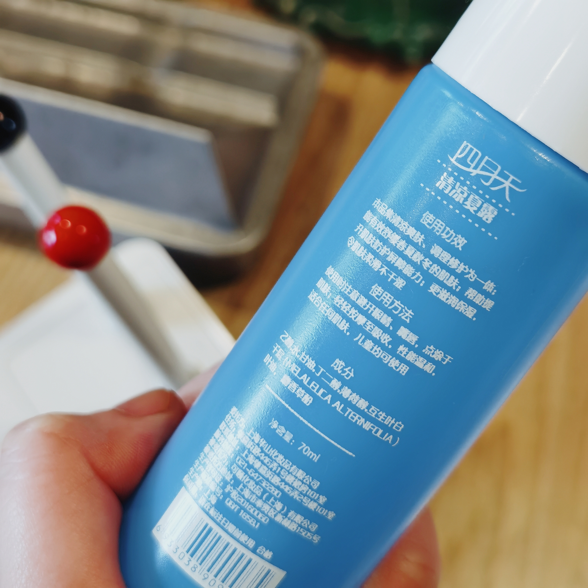 四月天夏日三件套其实是我取的名,因为爽肤冰露、晒后修护冰露和清凉夏露非常适合在夏天用,其中爽肤冰露和晒后修护冰露是适合晒后镇静舒缓肌肤、为肌肤密集补水,可以厚敷缓解,也可以给特油皮当面霜用;清凉夏露就像无比滴,针对蚊虫叮咬,清凉杫痒。