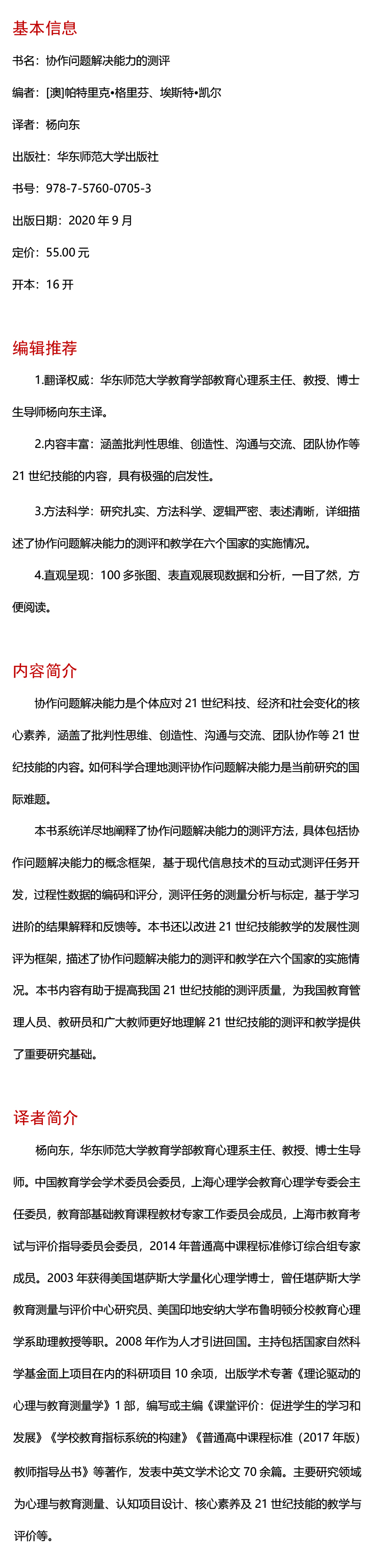 协作问题解决能力的测评 大夏书系 21世纪技能的测评和教学 教育研究 正版 华东师范大学出版社