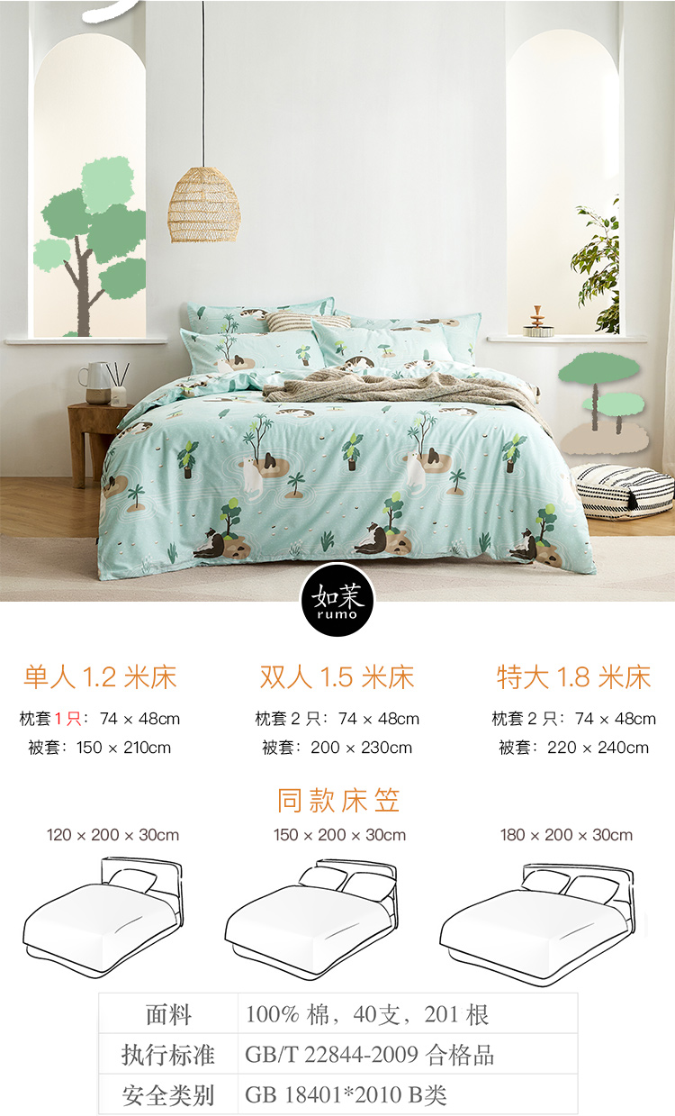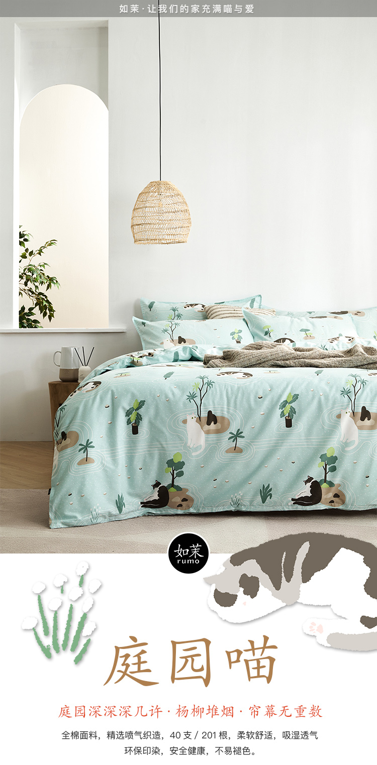 【幸运土猫】庭园喵如茉全棉纯棉猫三四件套件柔软被套原创设计