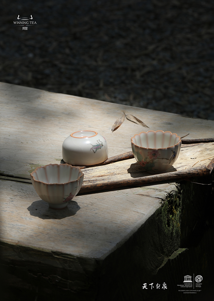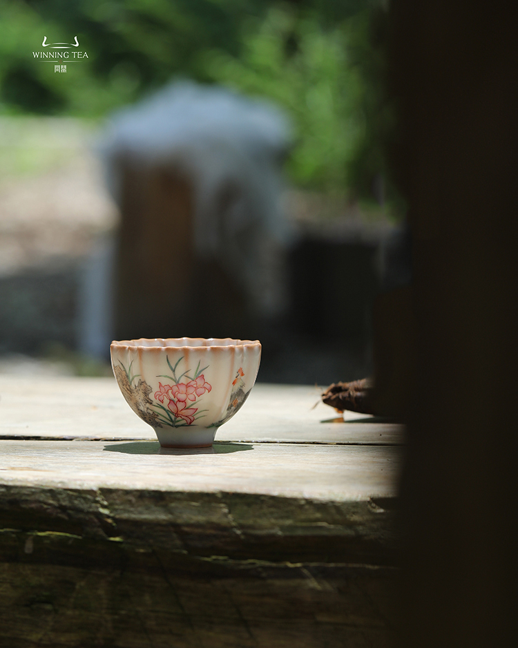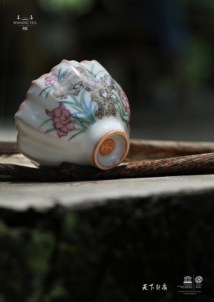 龙泉问鼎彩绘哥窑青葵杯(金鸡独立)