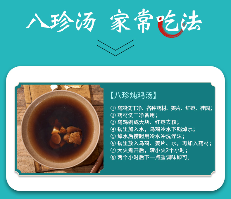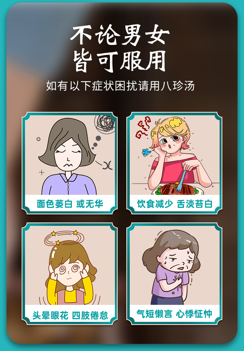八珍汤 120g/剂(人参片/白术茯苓/当归/川芎/熟地黄/白芍/炙甘草) 出自《瑞竹堂经验方》