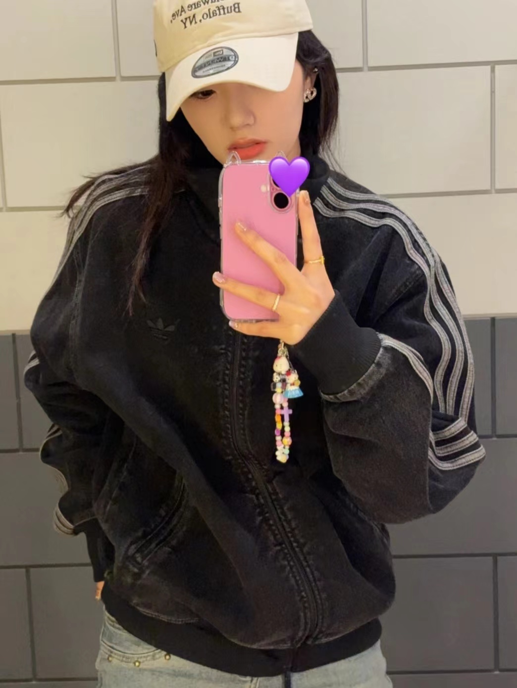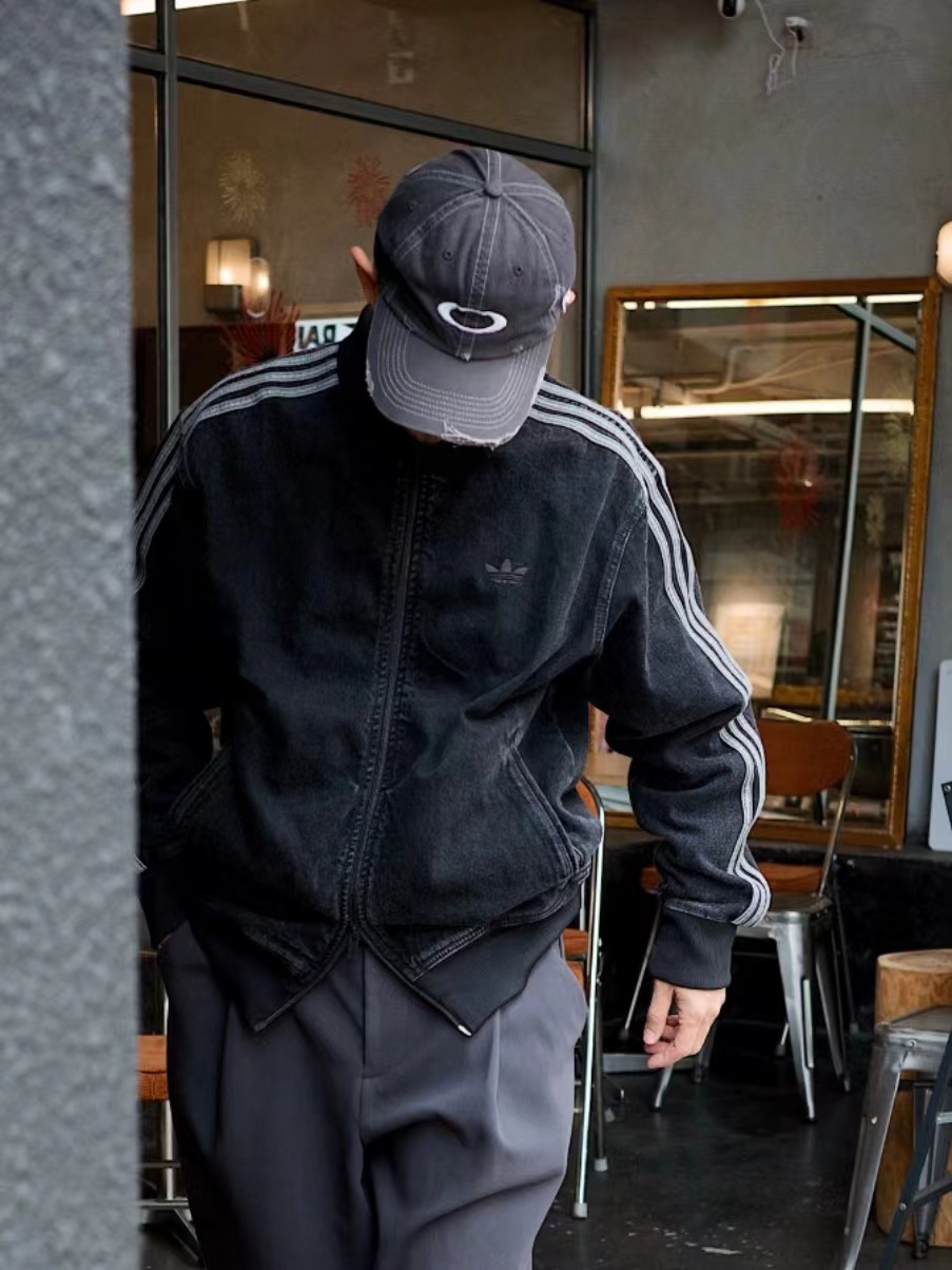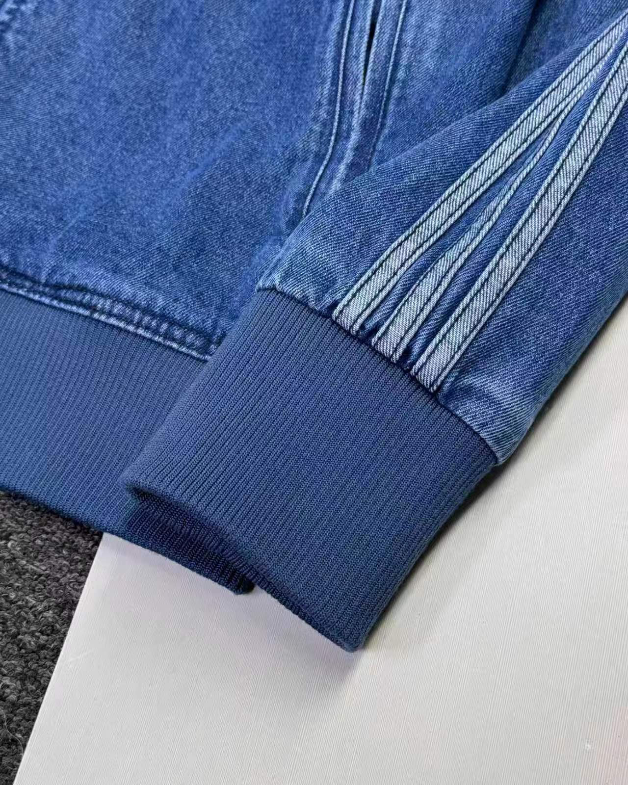 复古拉链三道杠水洗牛仔夹克外套!立领拉链设计利落有型,侧边三条纹+胸前小logo,品牌辨识度拉满。版型宽松不挑身材,牛仔与运动风的碰撞,休闲感与潮酷感双重在线。单穿是街头焦点,叠穿作外套层次满分。配牛仔裤走复古休闲风,搭运动裤玩潮酷混搭,上班、出街都能轻松驾驭。复古质感与潮流设计的融合,堪称衣橱百搭硬核单品,潮人闭眼入!胸前的刺绣都是有原版数据的德国阿曼刺绣纤维刺绣工艺非常讲究