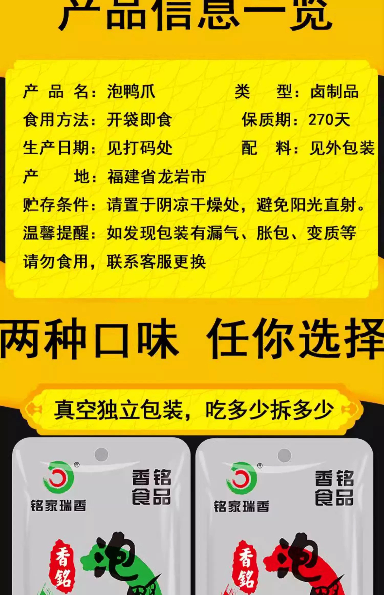 香铭泡鸭爪铭家瑞香龙岩泡鸭爪福建特产下洋土楼清香鸭掌卤味零食