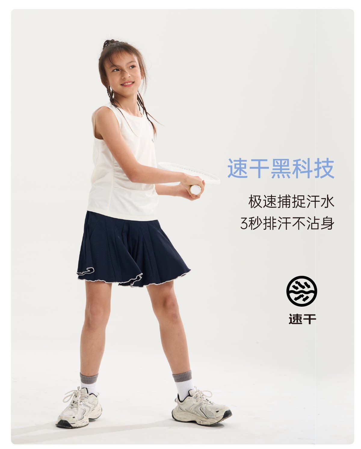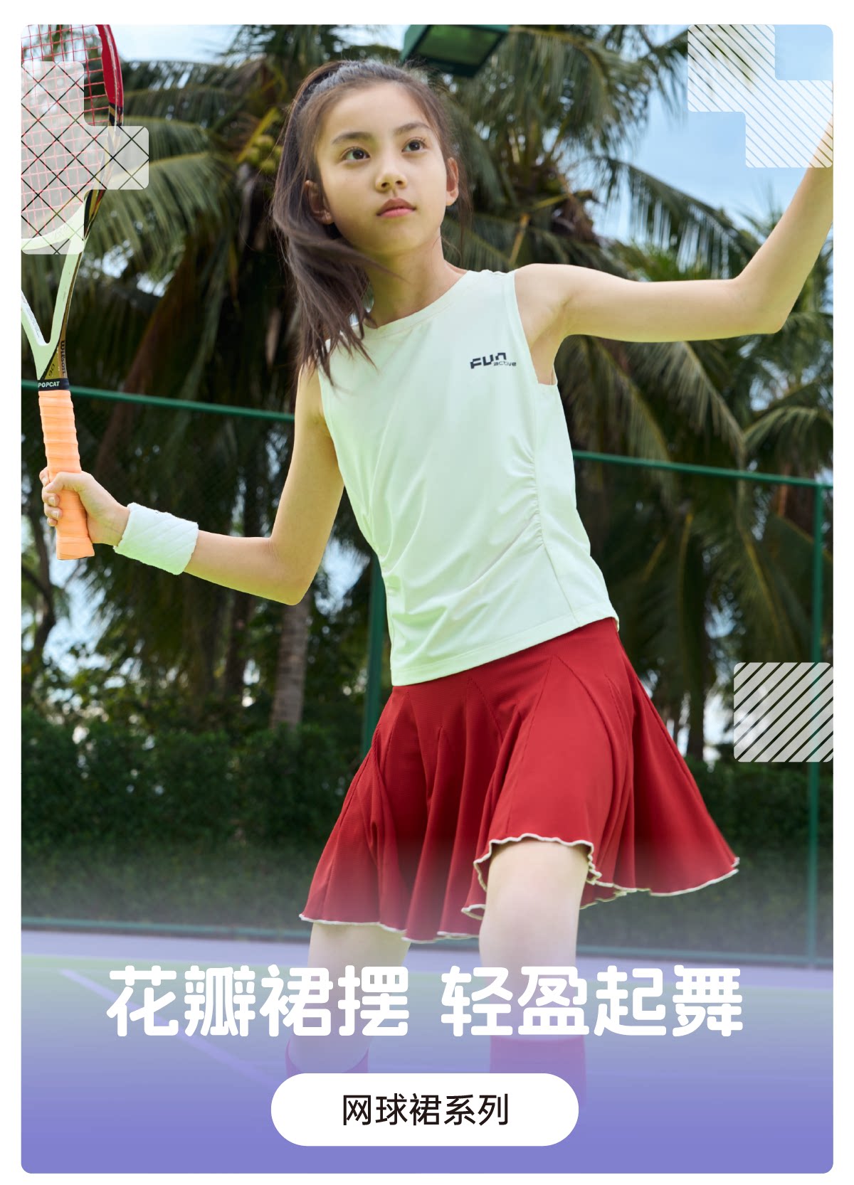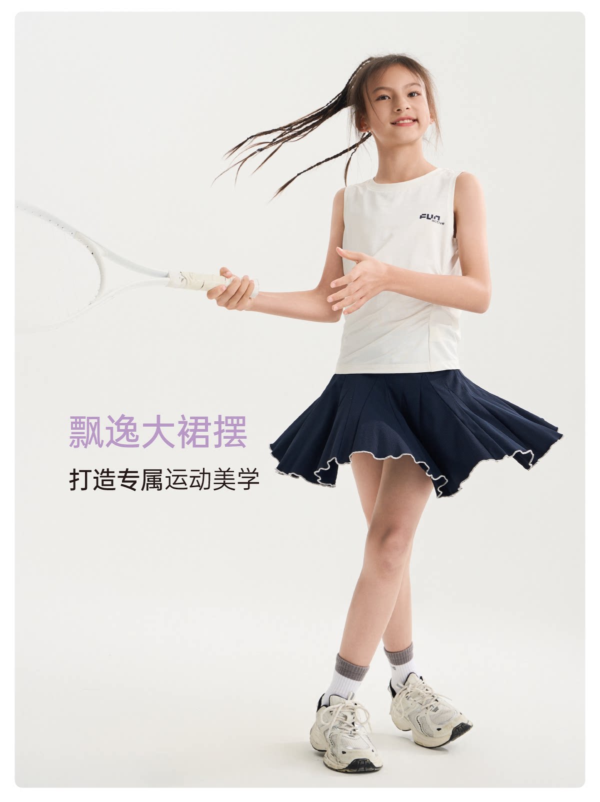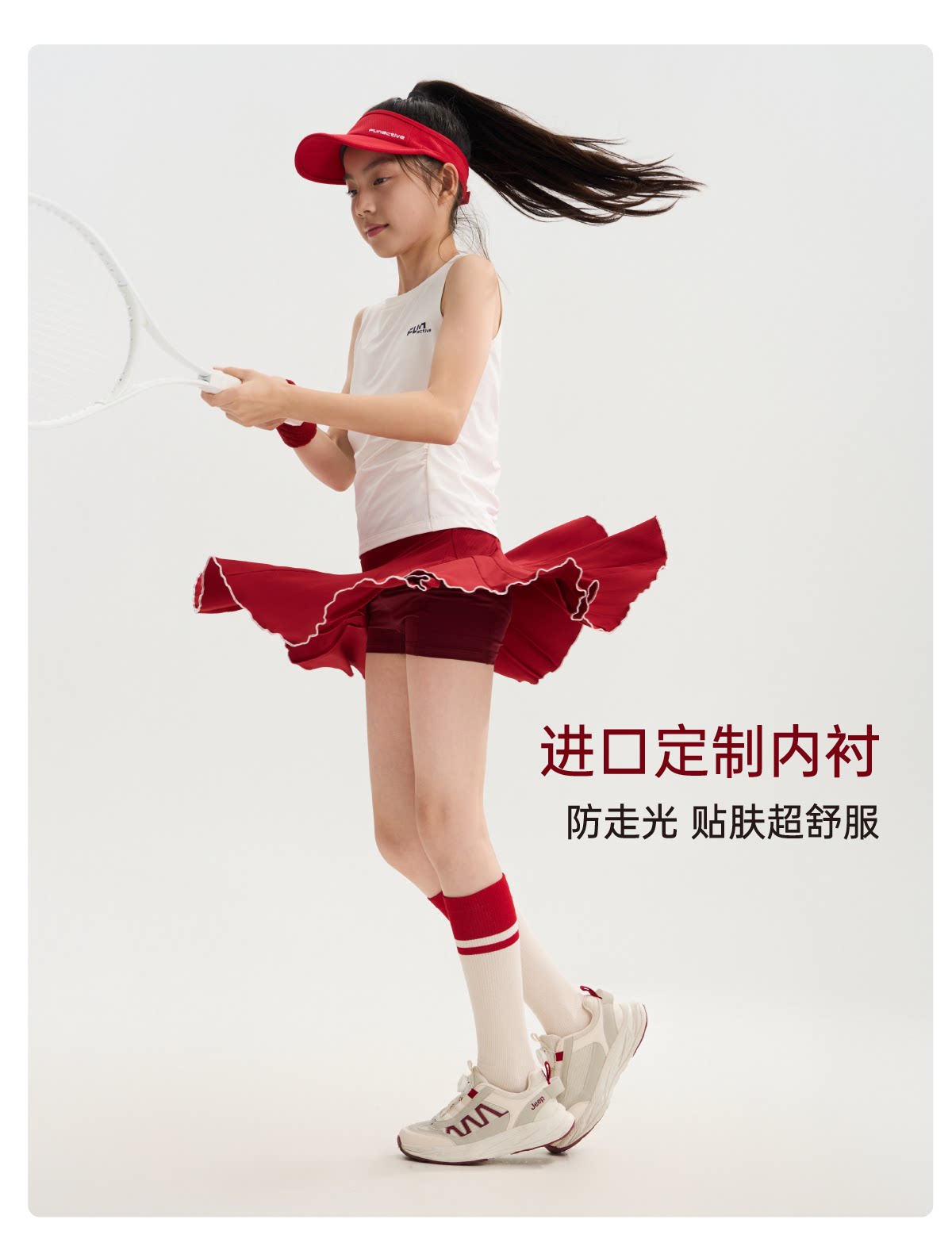 funactive女童网球裙儿童运动速干百褶裙防走光短裙F1GQ20218