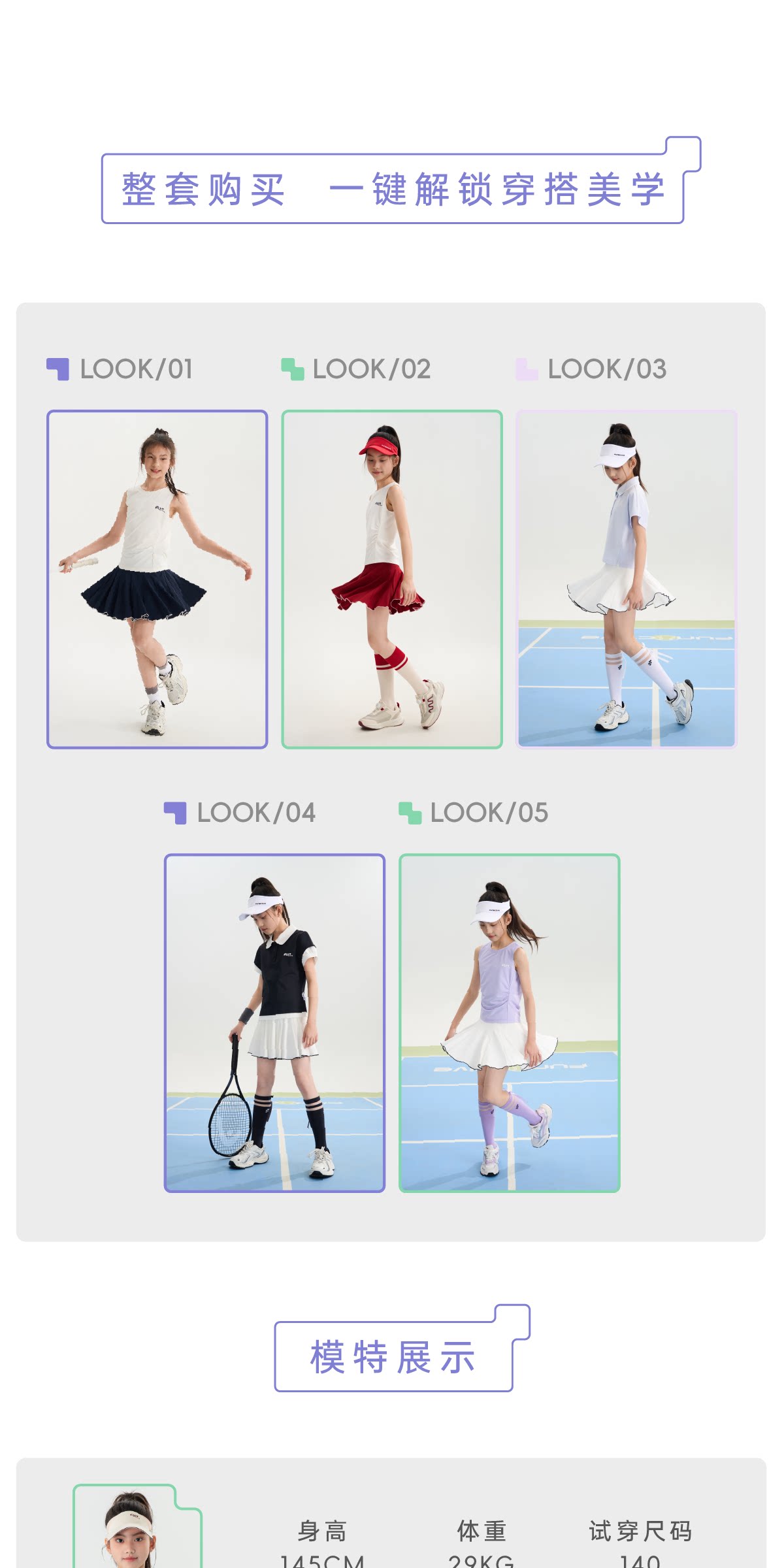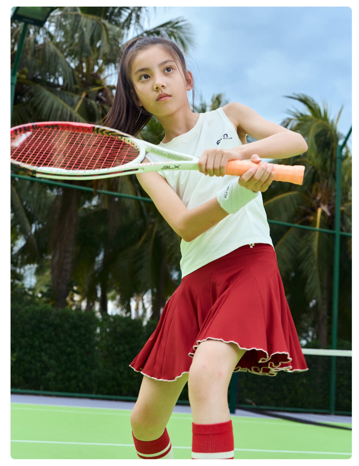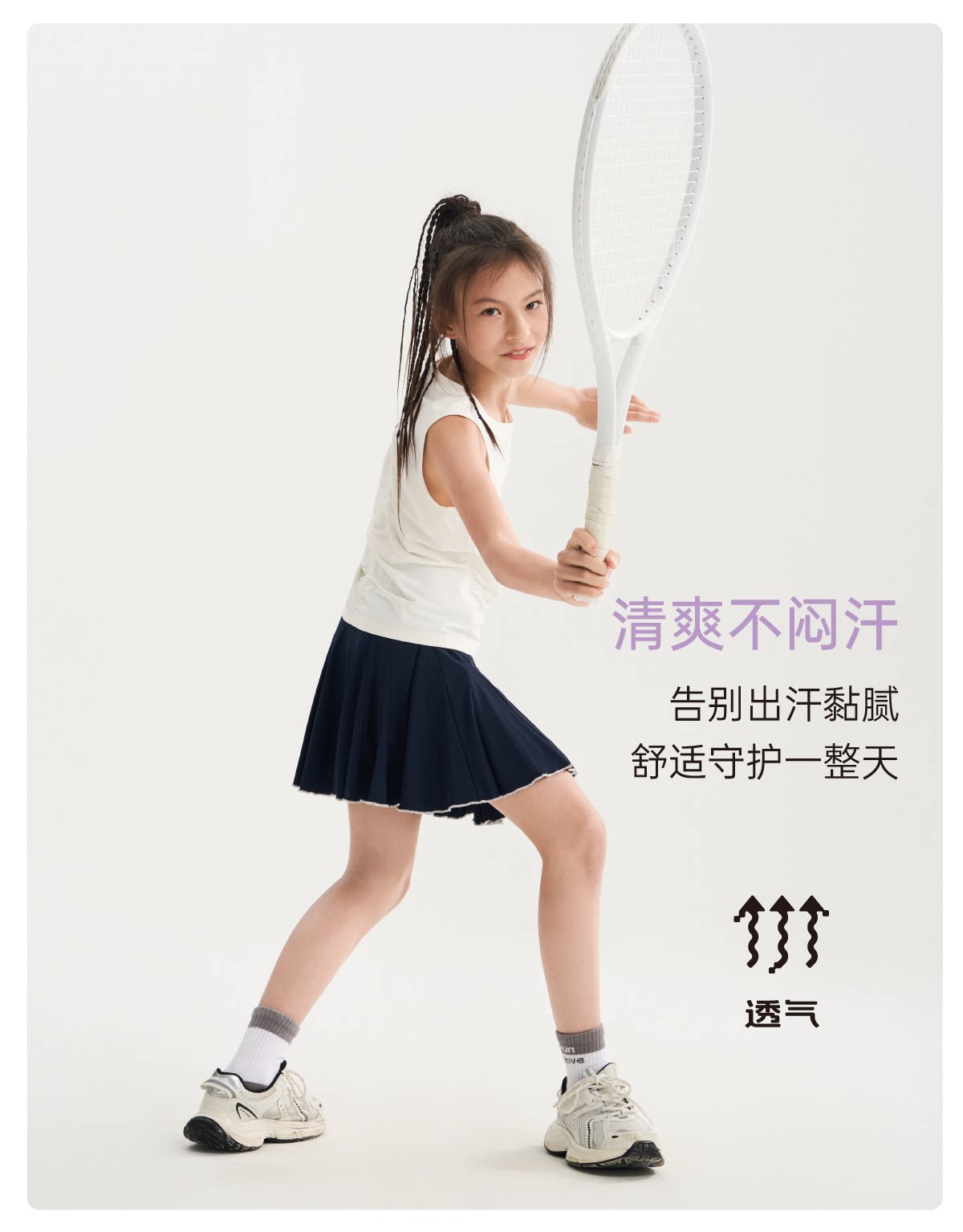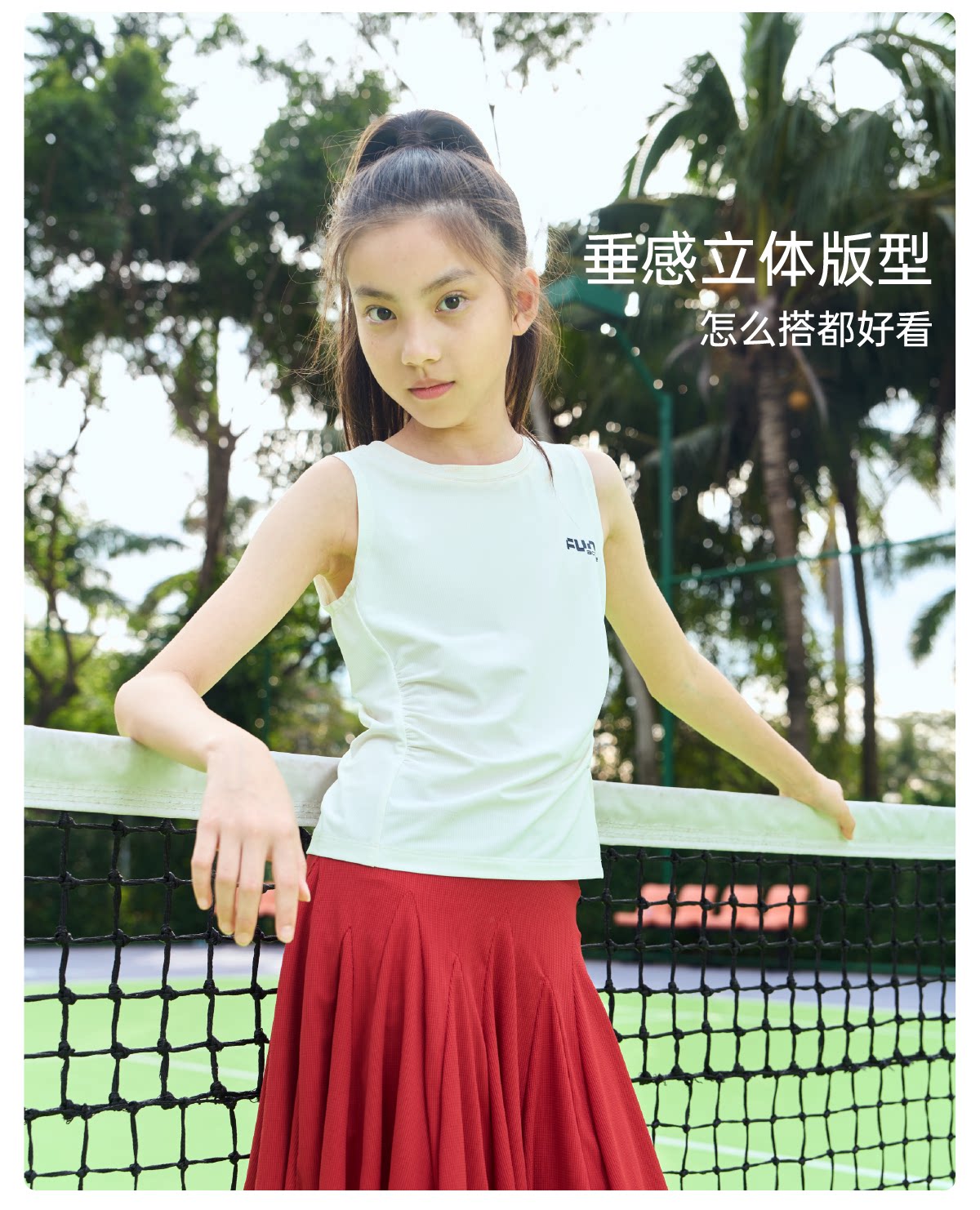 funactive女童网球裙儿童运动速干百褶裙防走光短裙F1GQ20218