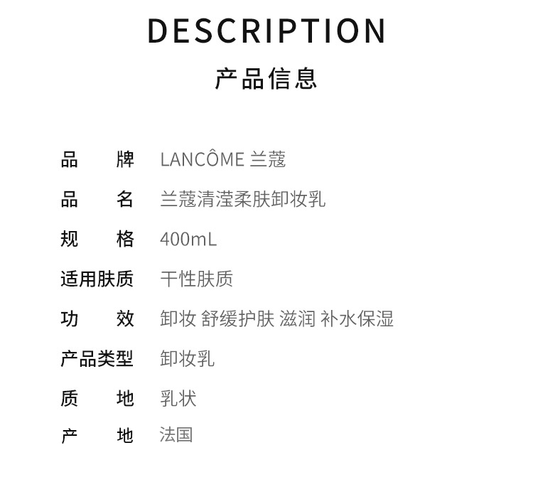 【海外直邮】LANCÔME兰蔻清滢柔肤卸妆乳(温和卸妆乳)