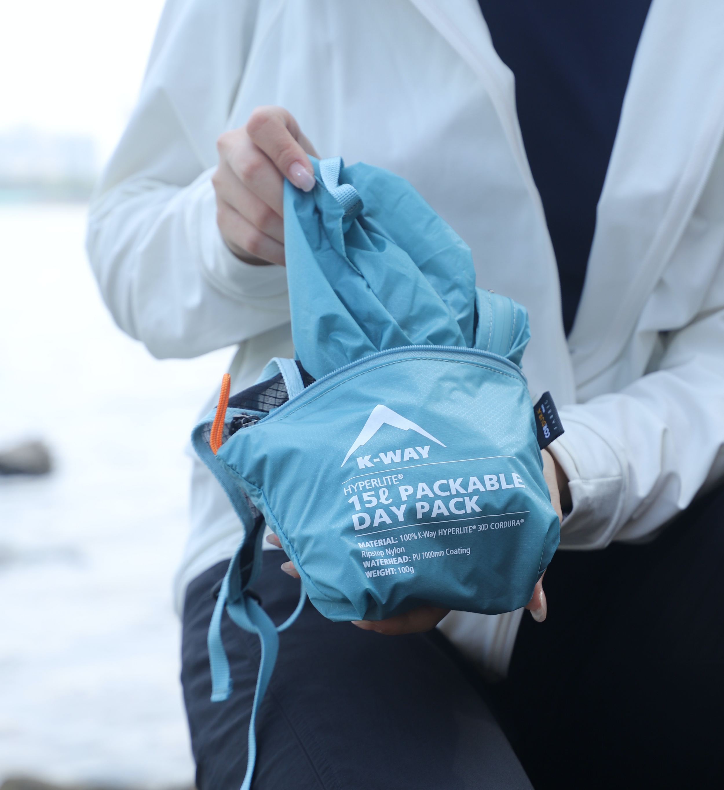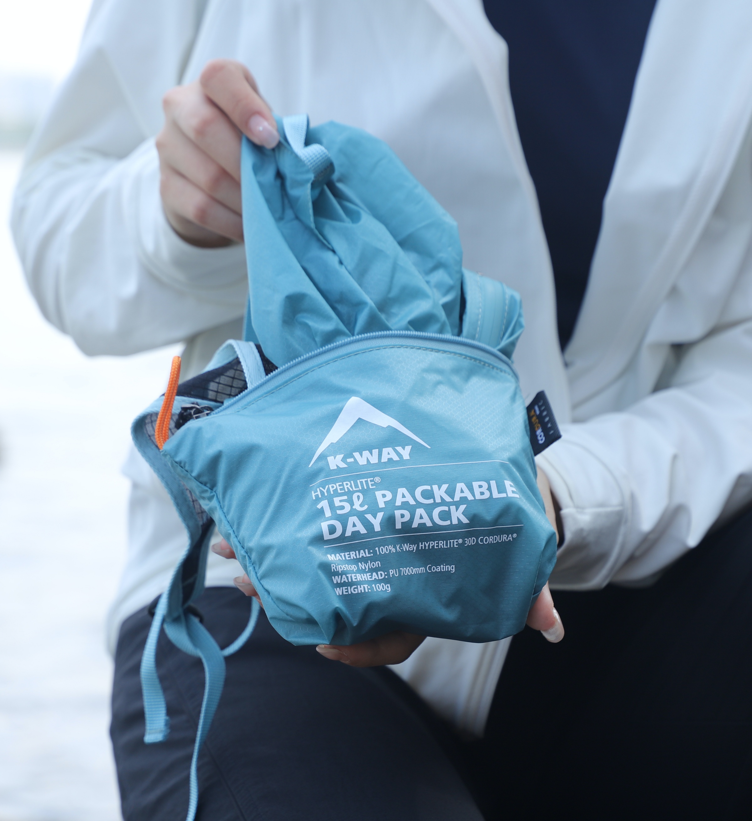「K-Way 15L可折叠防水双肩包」采用的30D Cordura防撕裂尼龙制成,装上重物也不怕破🥳